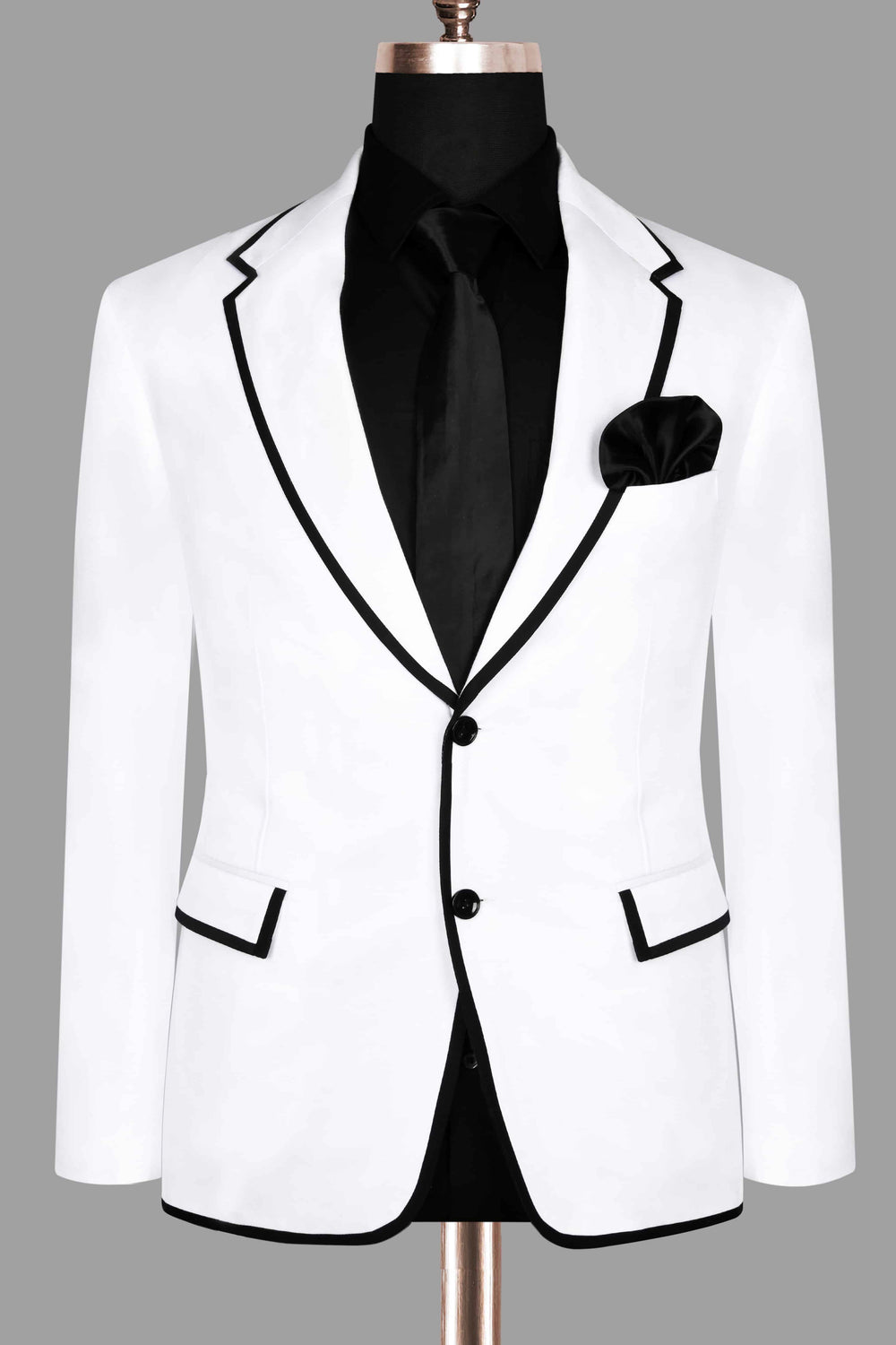 To create these chic white blazer outfits, always pick a white T-shirt or shirt and a black trouser or jeans. If the half white and black blazer is in silk, rayon or other party material, then pick a formal trouser for that ideal white blazer combination for wedding. Wear this men's white blazer outfit with white shoes or black-white two tone shoes.