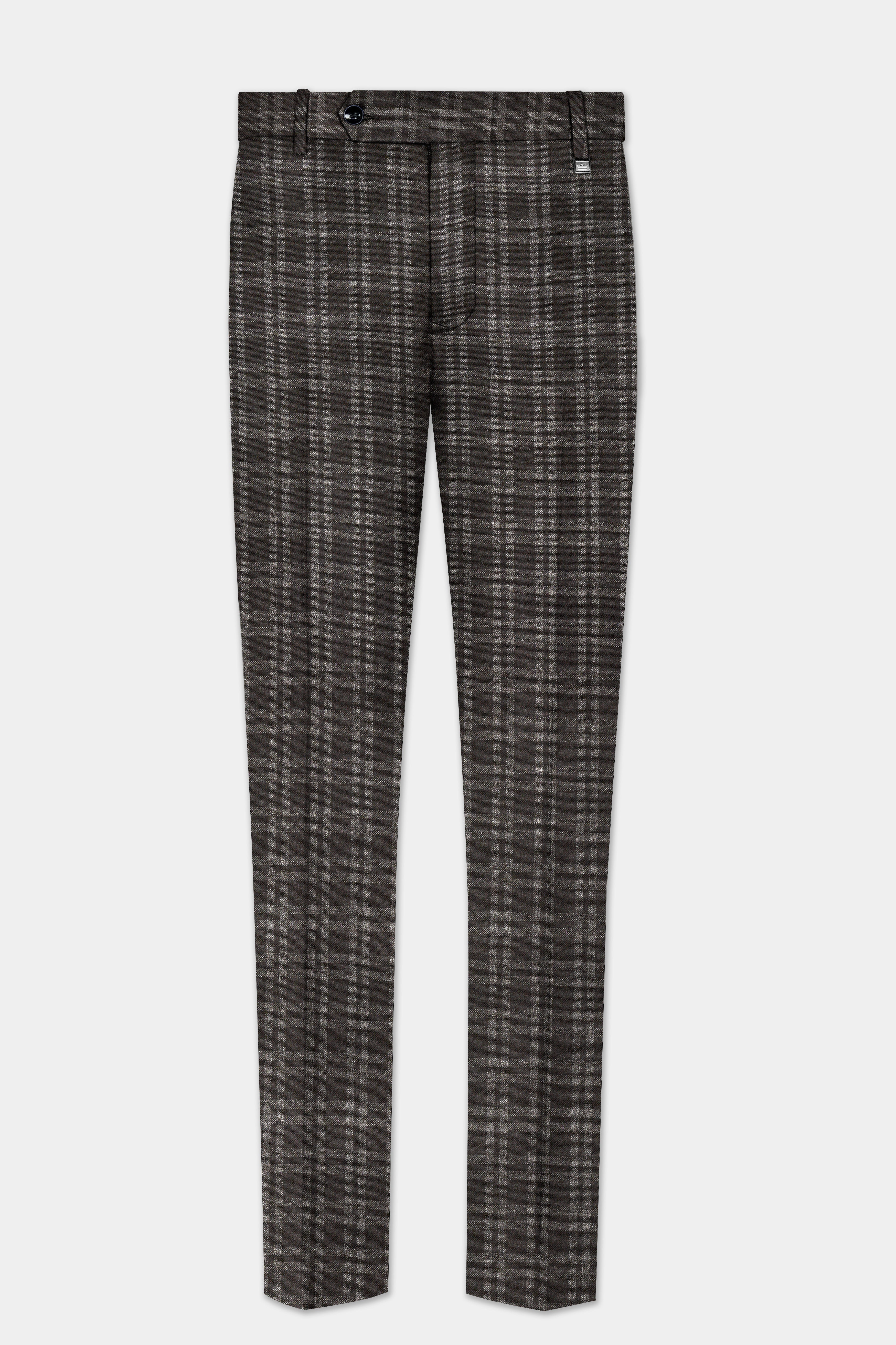 Fuscous Green and Bistre Brown Plaid Wool Rich Stretchable PantFuscous Green and Bistre Brown Plaid Wool Rich Stretchable Pant