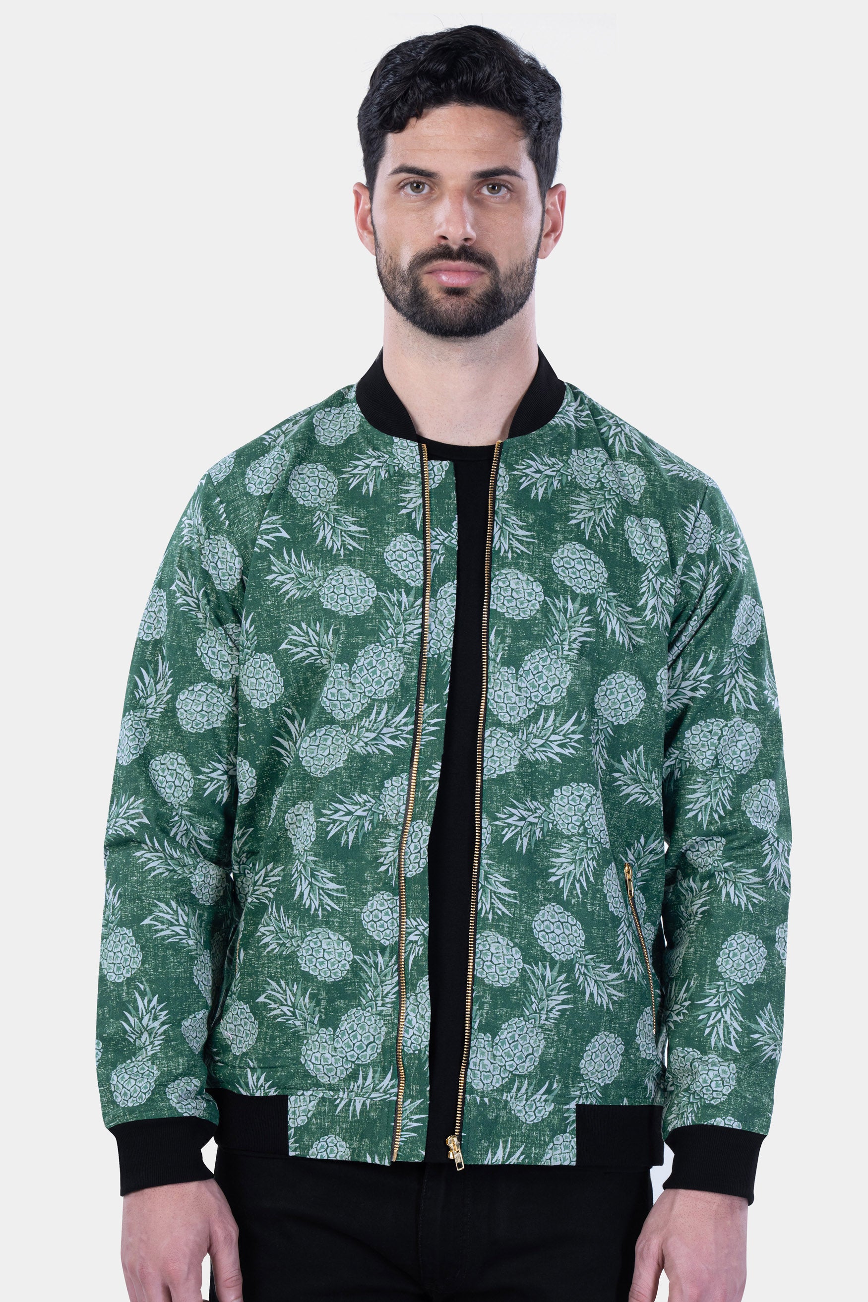Plantation Green Pineapple Printed Premium Cotton Bomber JacketPlantation Green Pineapple Printed Premium Cotton Bomber Jacket