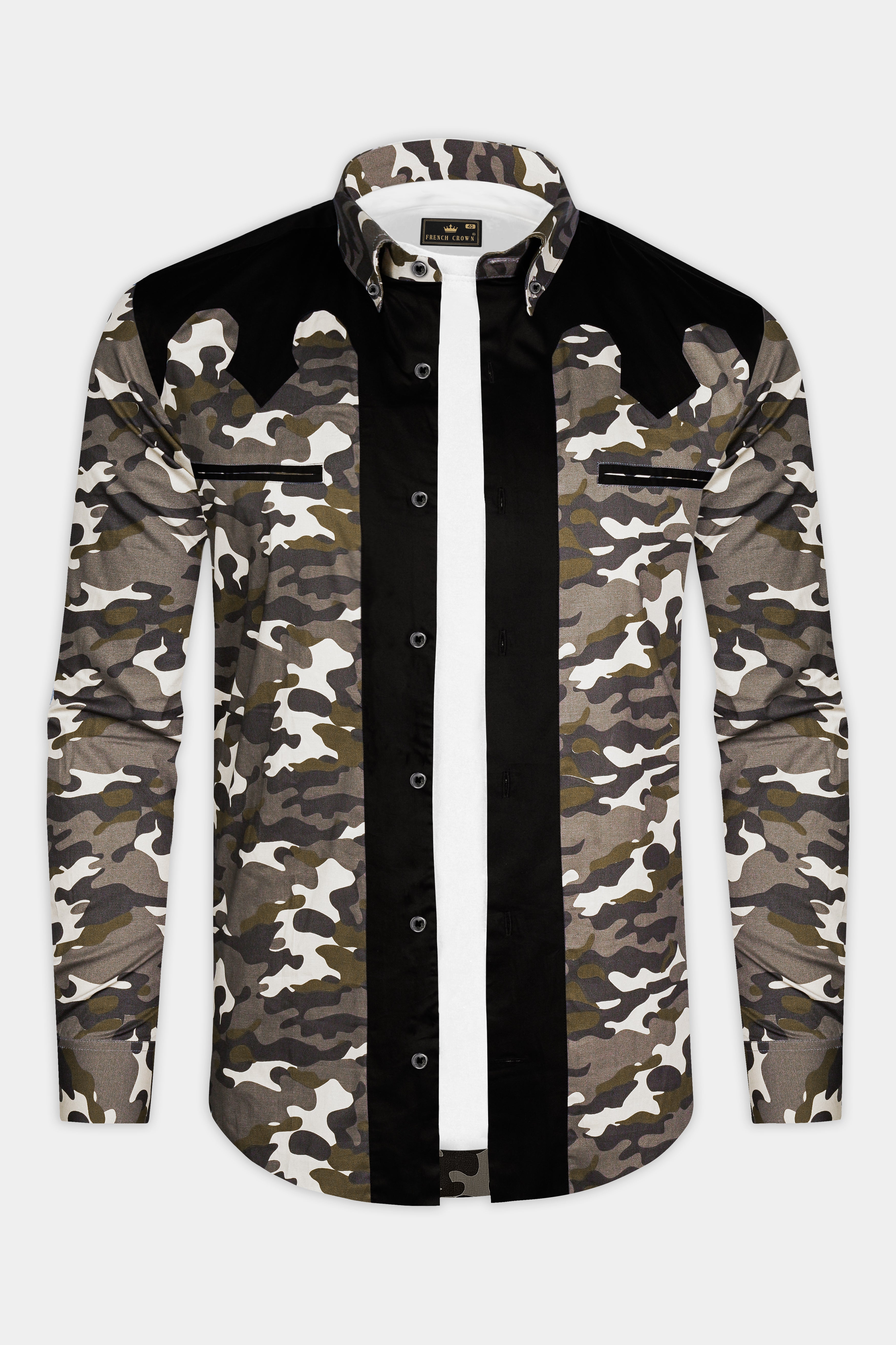 Wenge Brown And Jade Black Camouflage Printed Royal Oxford Designer Overshirt/ShacketWenge Brown And Jade Black Camouflage Printed Royal Oxford Designer Overshirt/Shacket