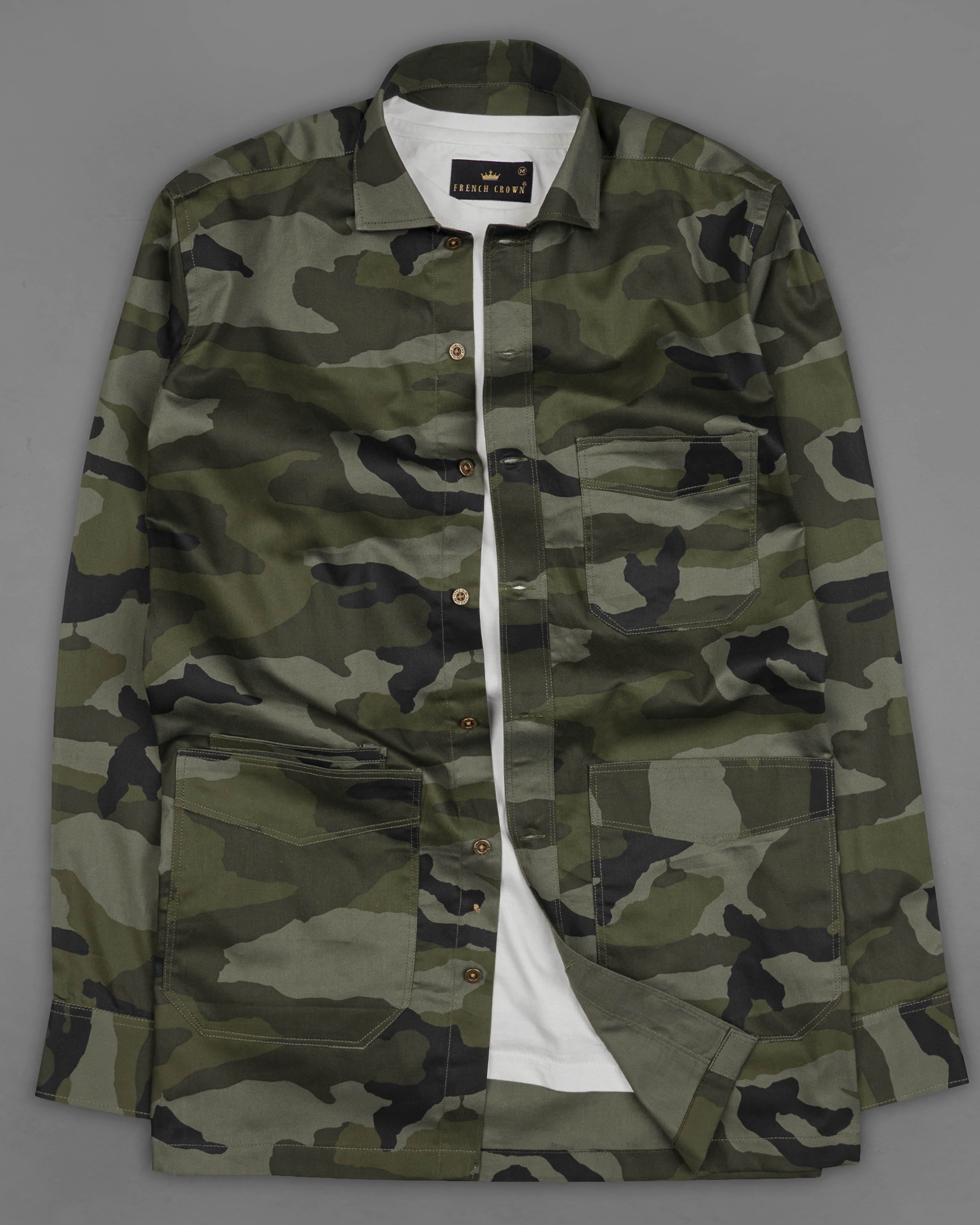 Iridium Green with Mirage Black Camouflage Printed Royal Oxford Designer Overshirt/Shacket