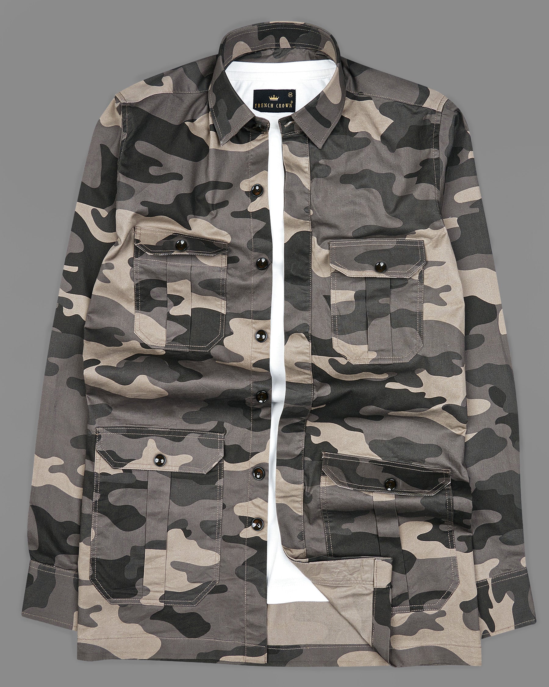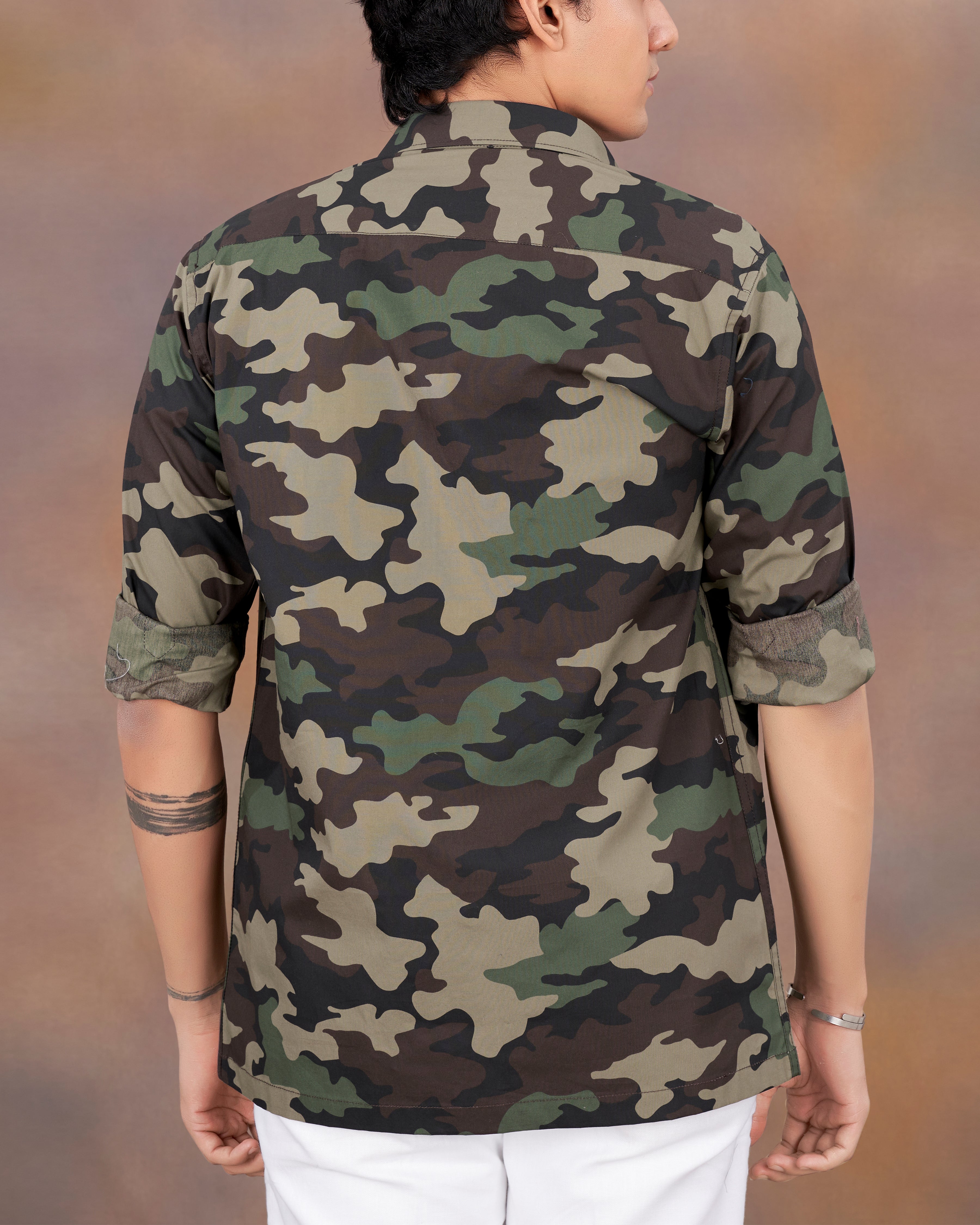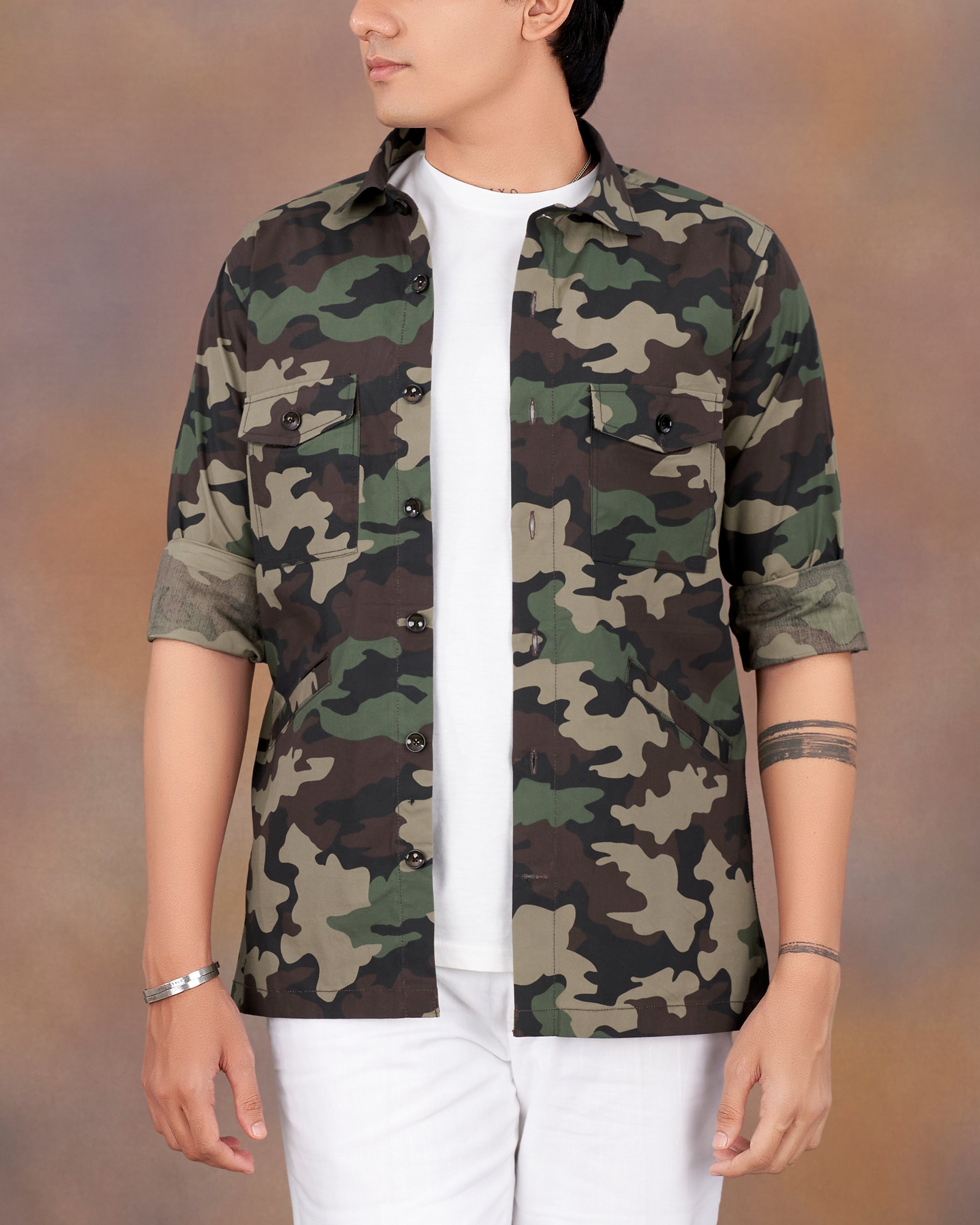 Bronco Brown with Ironside Green Camouflage Printed Royal Oxford Designer Overshirt/ShacketBronco Brown with Ironside Green Camouflage Printed Royal Oxford Designer Overshirt/Shacket