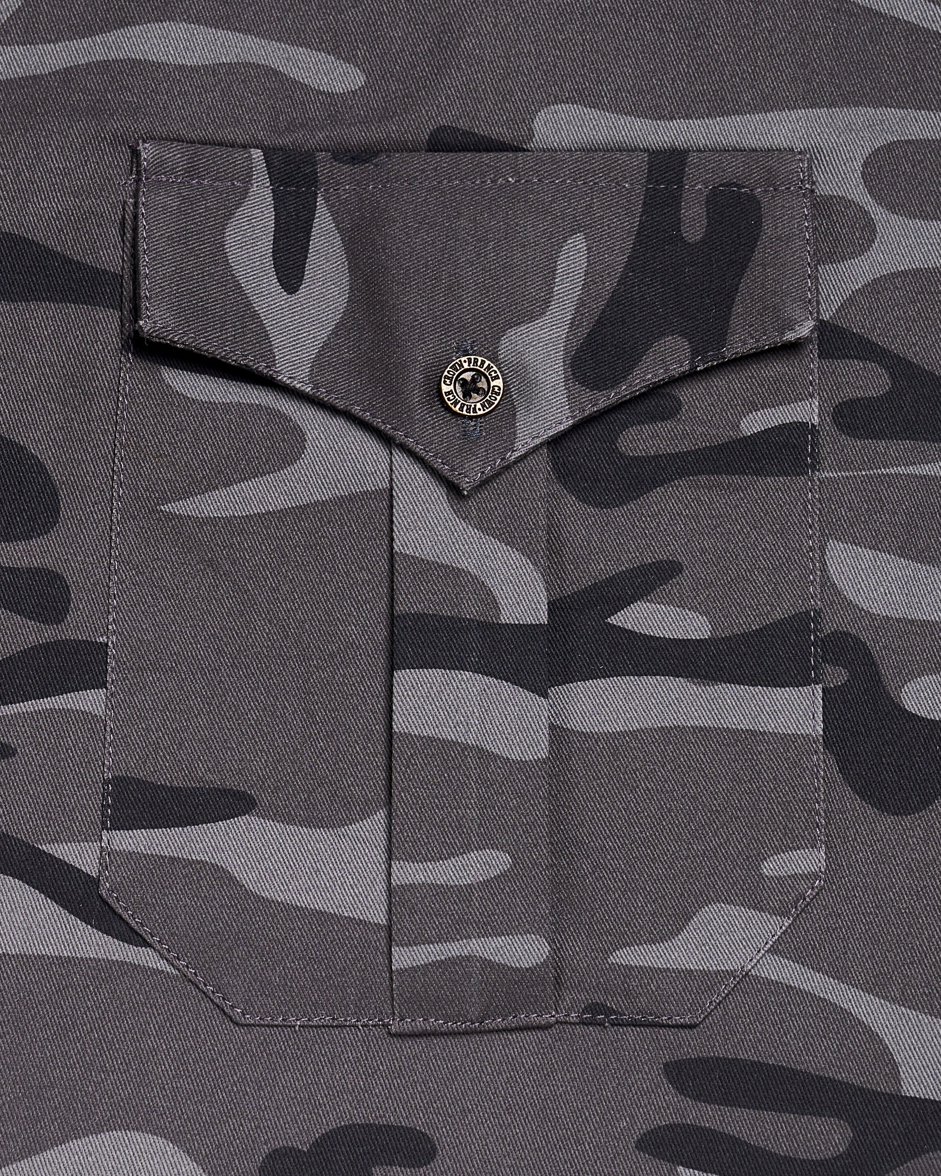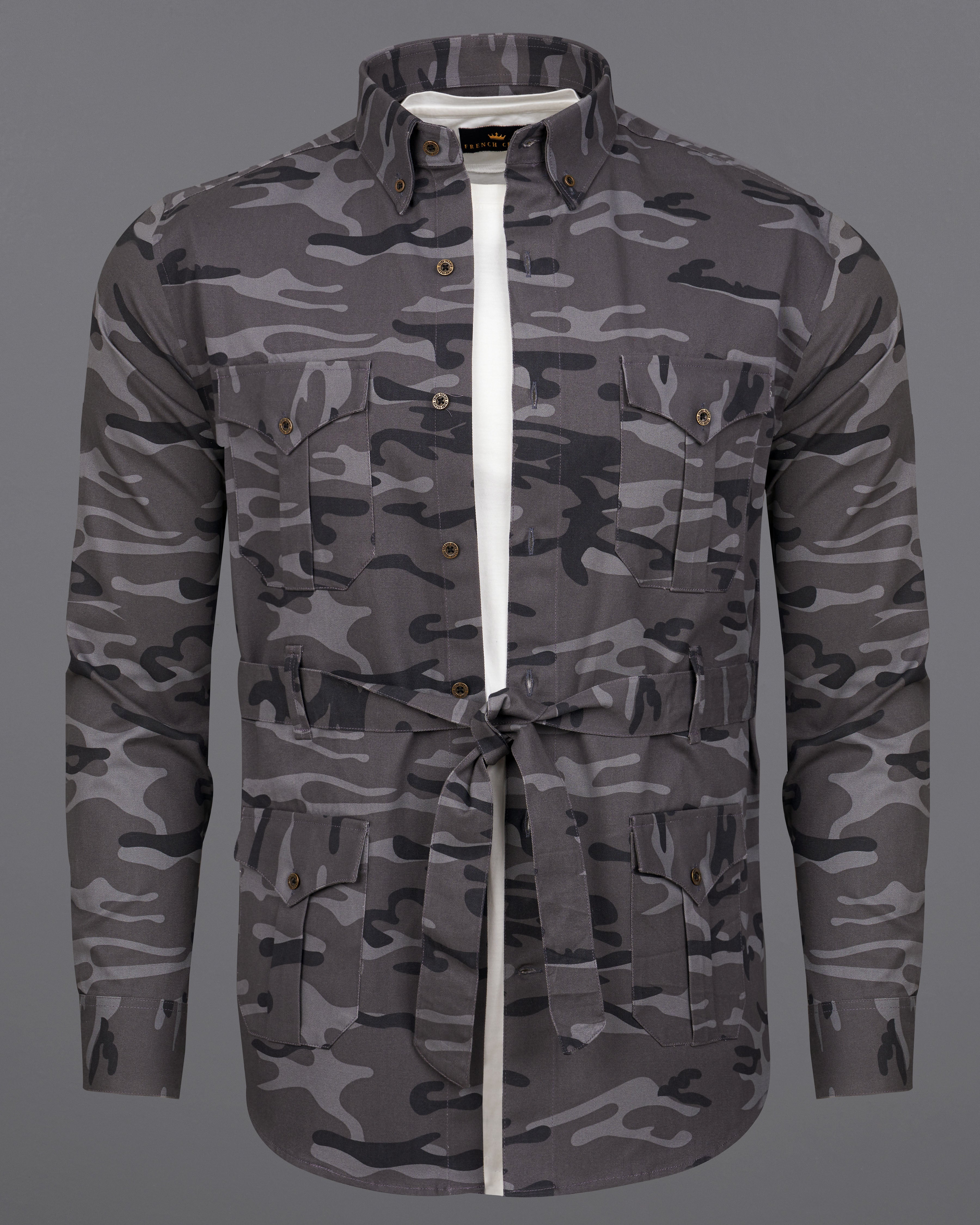 Vampire Gray with Black Camouflage Royal Oxford Designer Shirt with Belt Closure