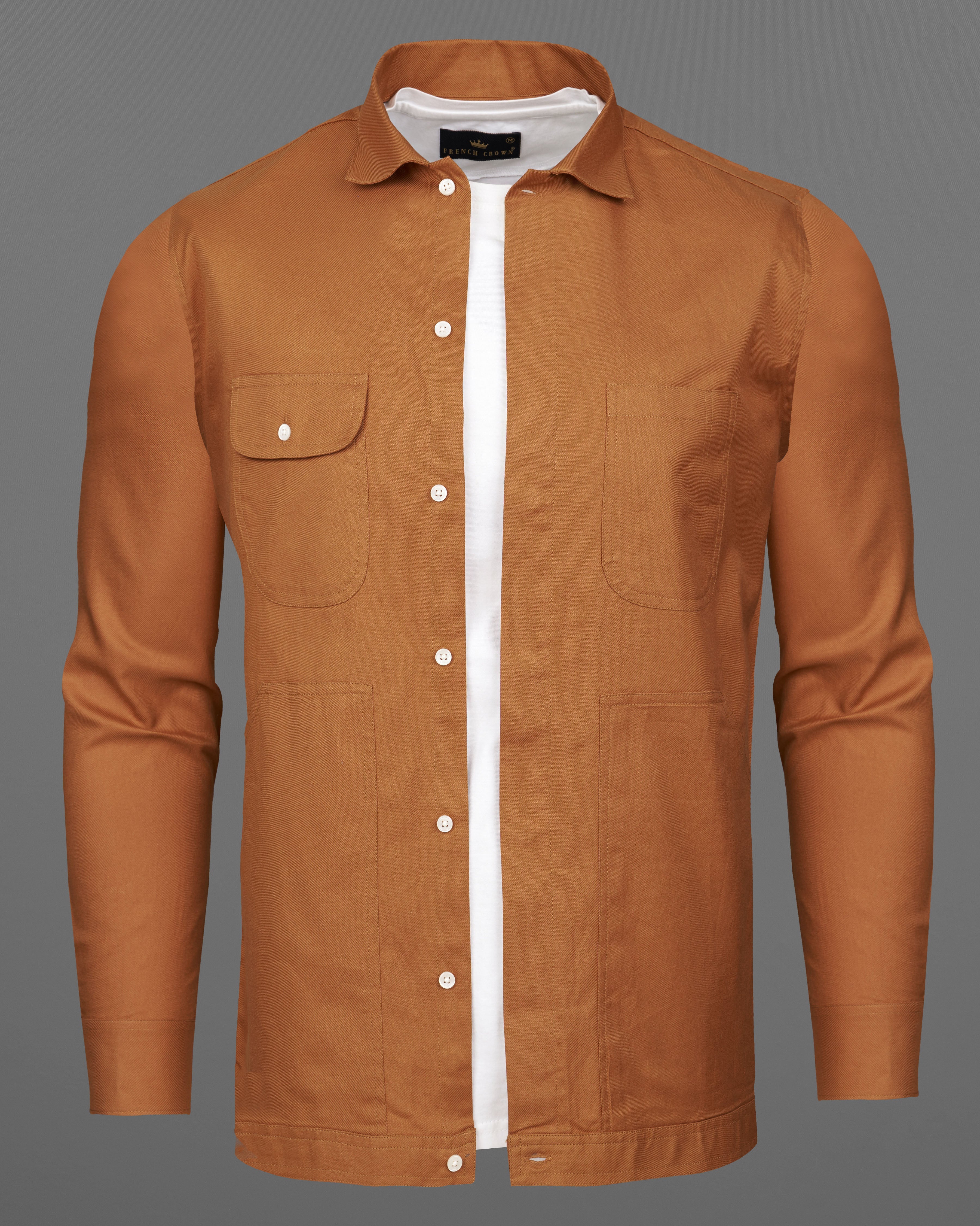 Sepia Brown Twill Premium Cotton Designer Overshirt/Shacket