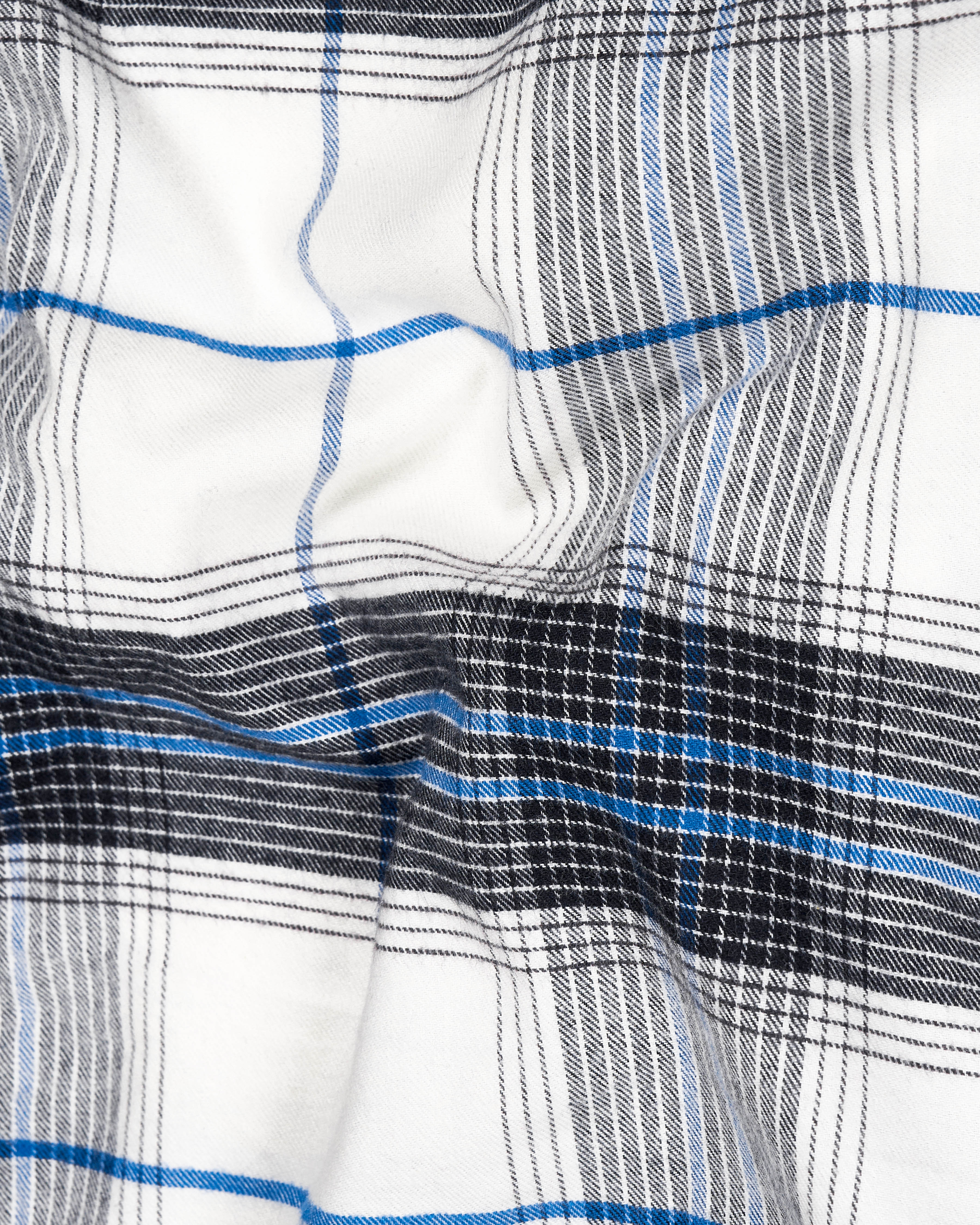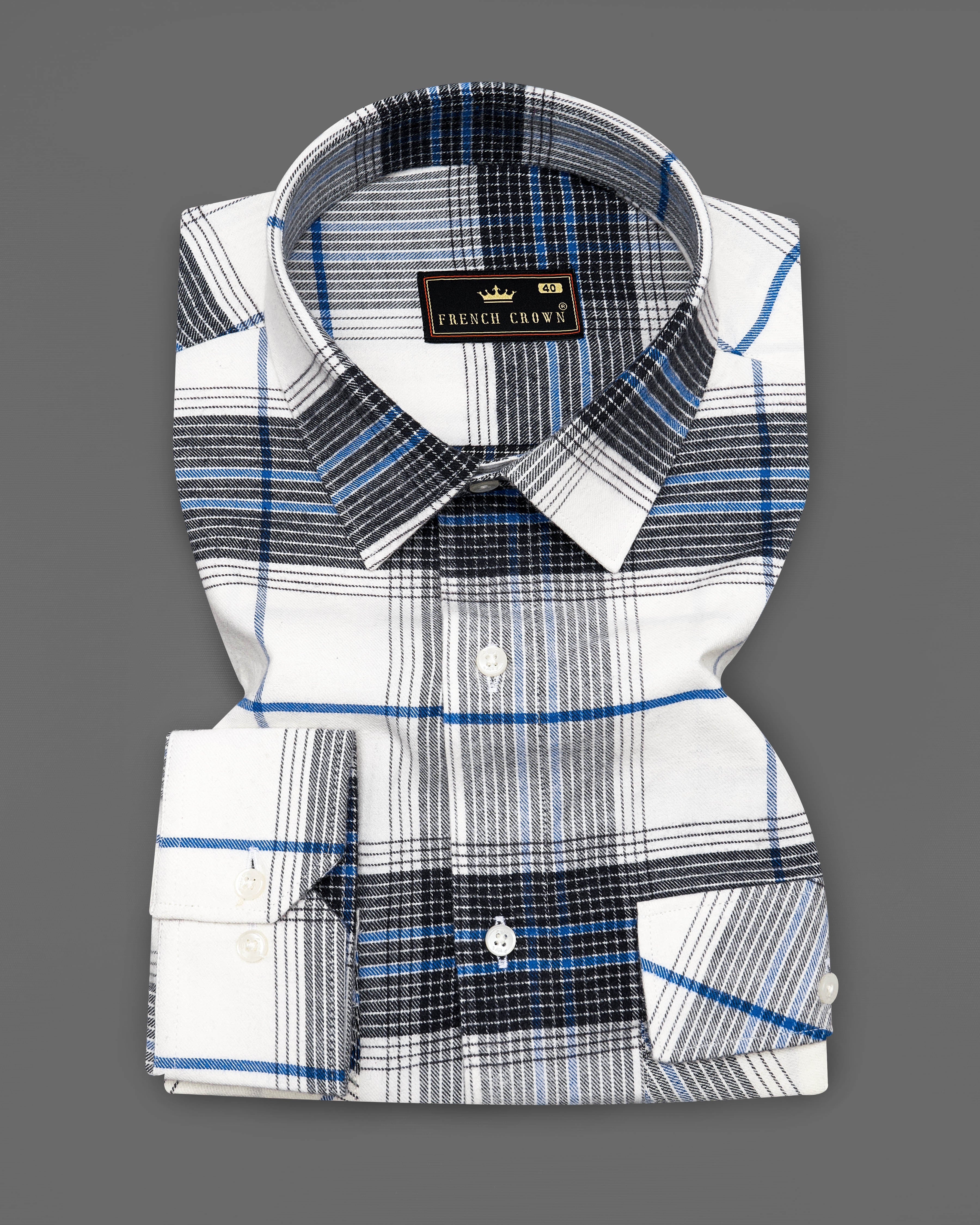 Bright White with Zeus Black and Brandeis Blue Plaid Flannel Overshirt/Shacket