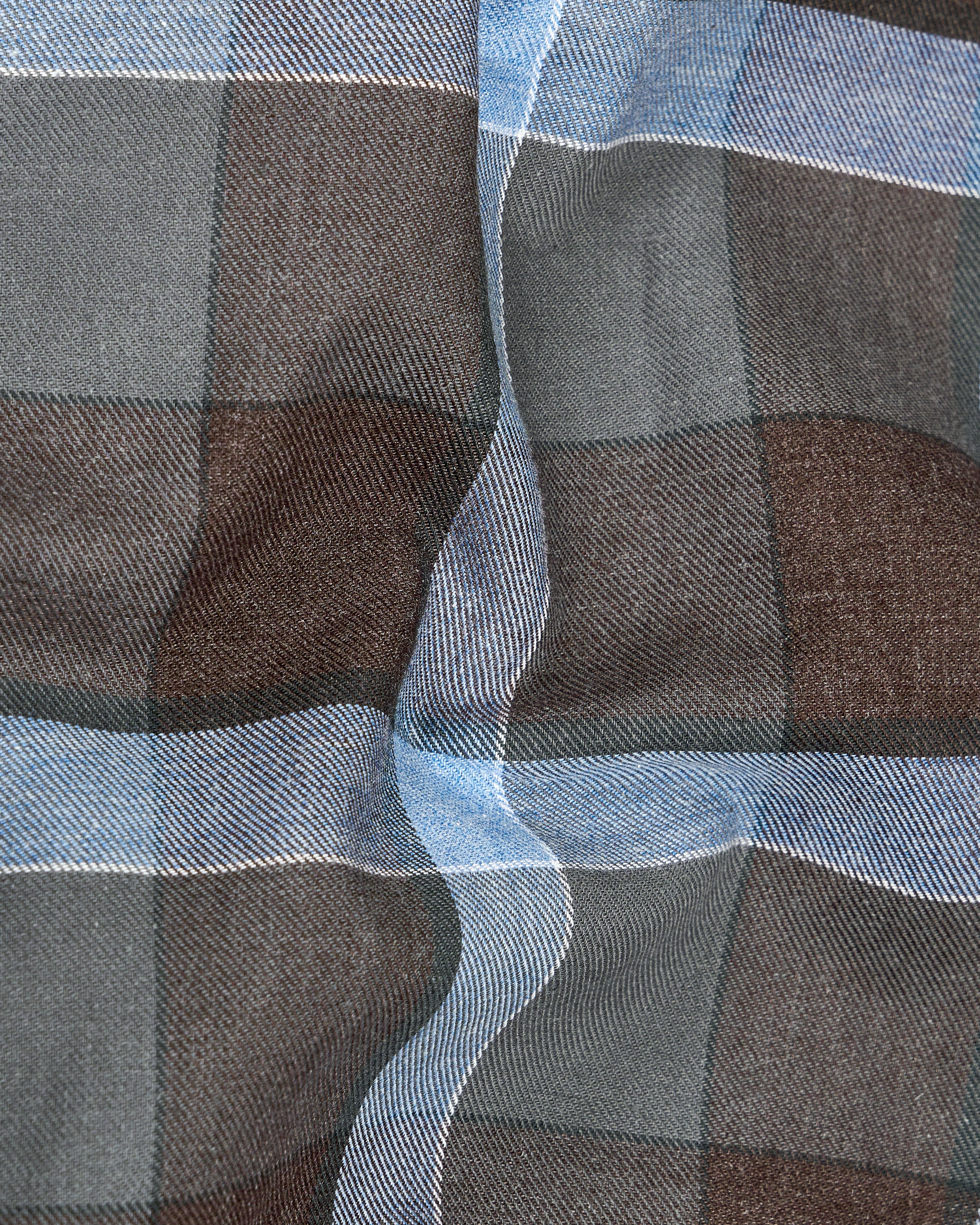 Tuna Gray and Oyster Brown Checked with Brown Patches Flannel Designer Shirt