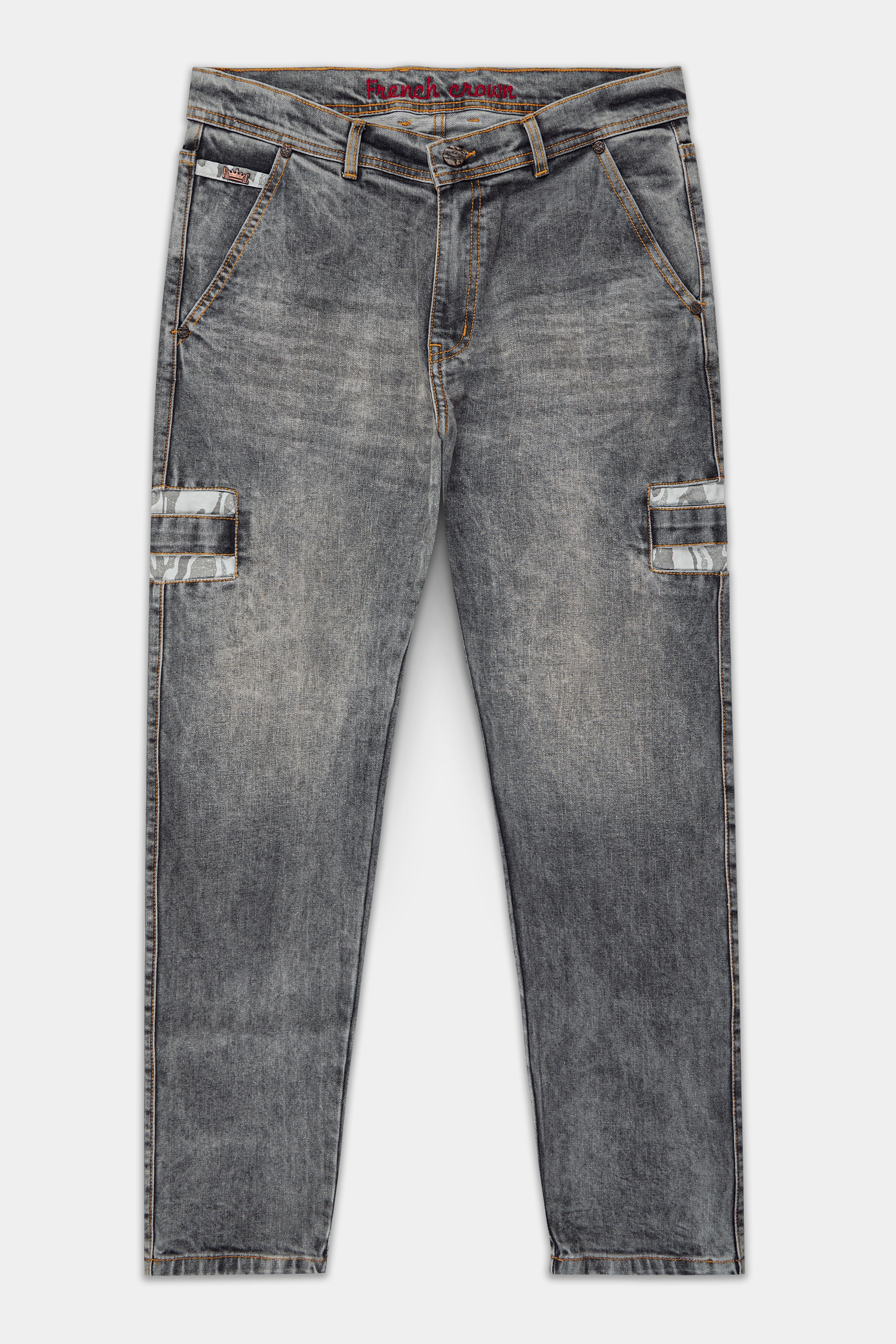 Ironside Gray with Camouflage Patch Design Stretchable DenimIronside Gray with Camouflage Patch Design Stretchable Denim