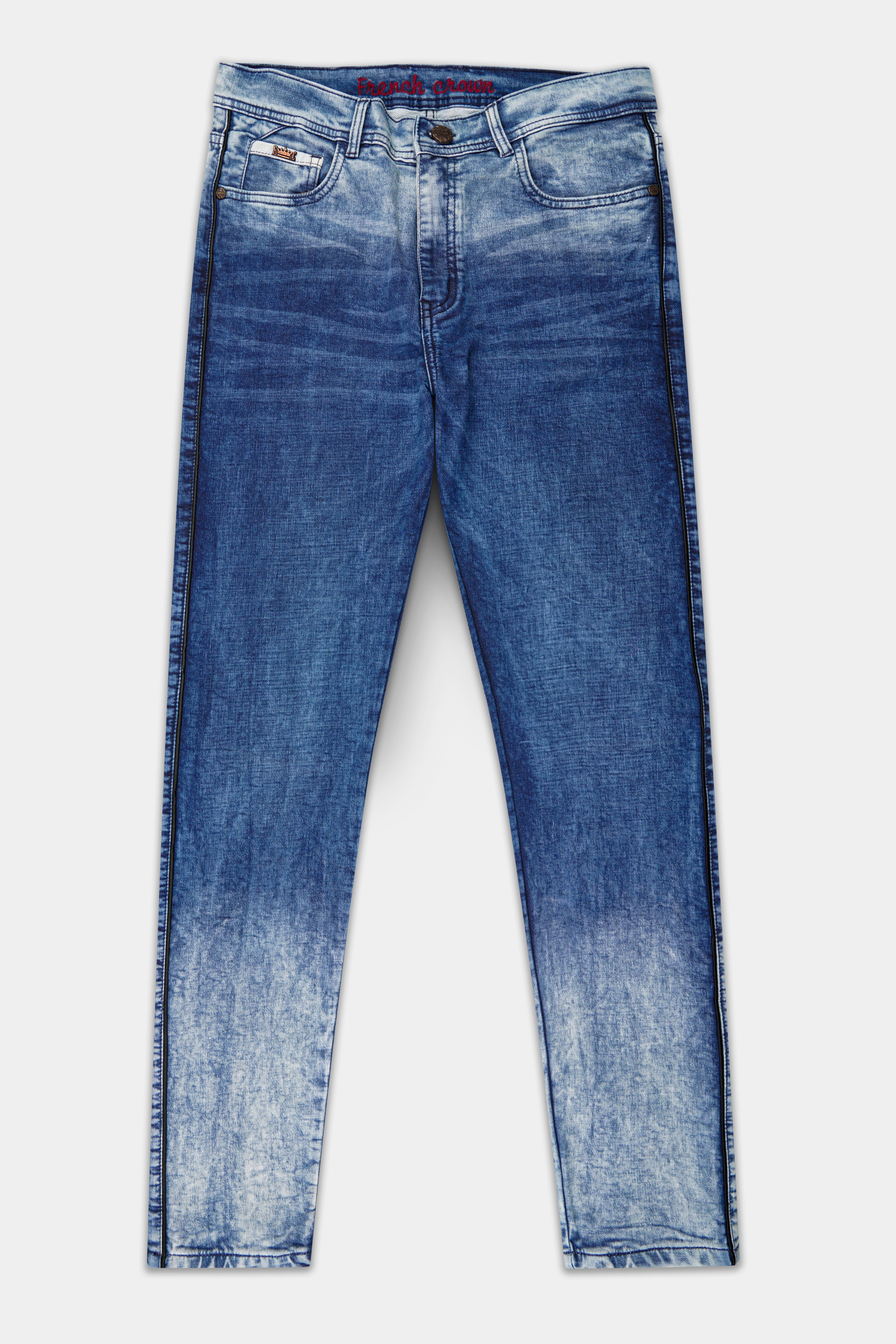 Glacier Blue Whiskering Wash Mildly Distressed Stretchable DenimGlacier Blue Whiskering Wash Mildly Distressed Stretchable Denim
