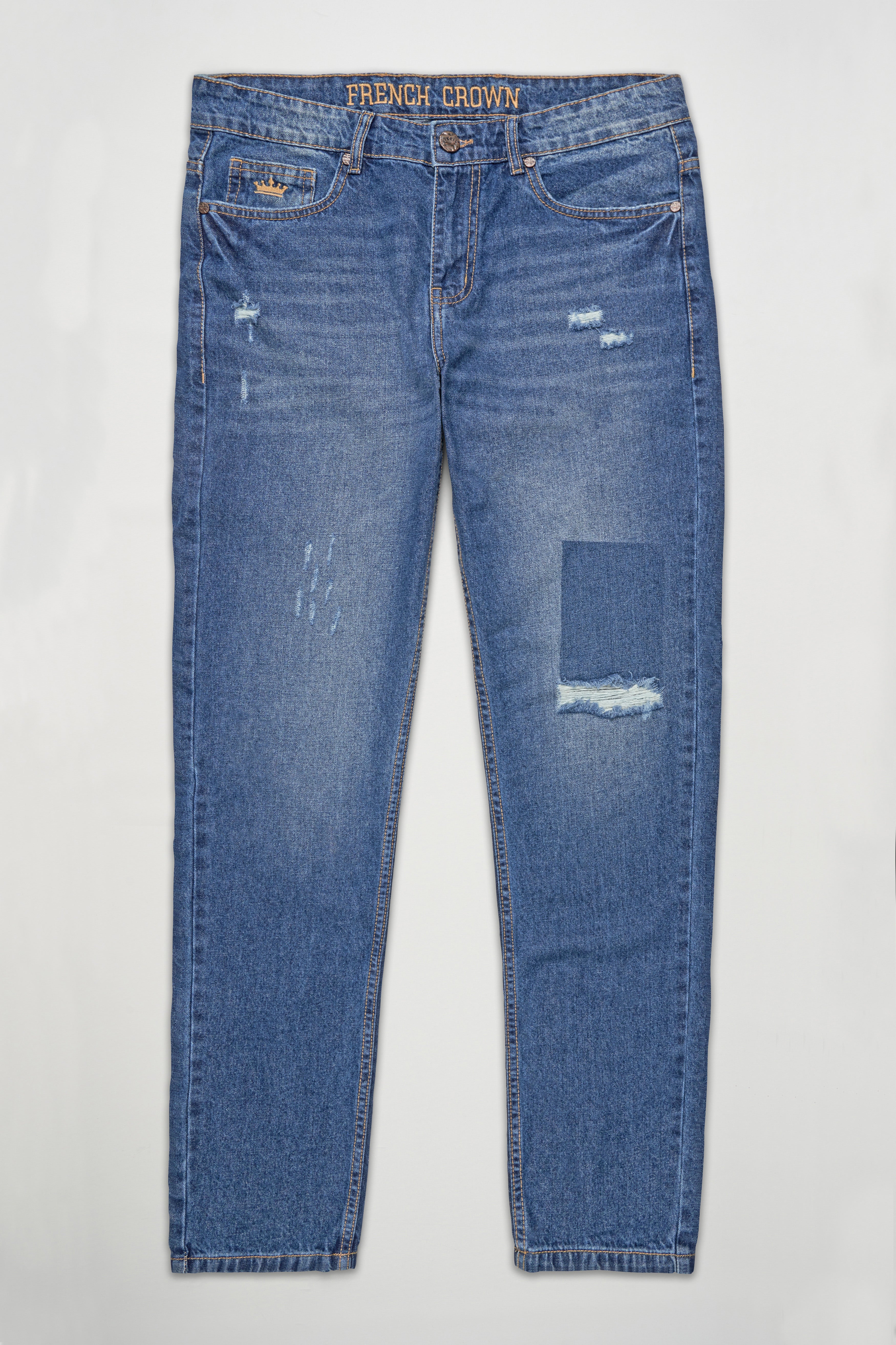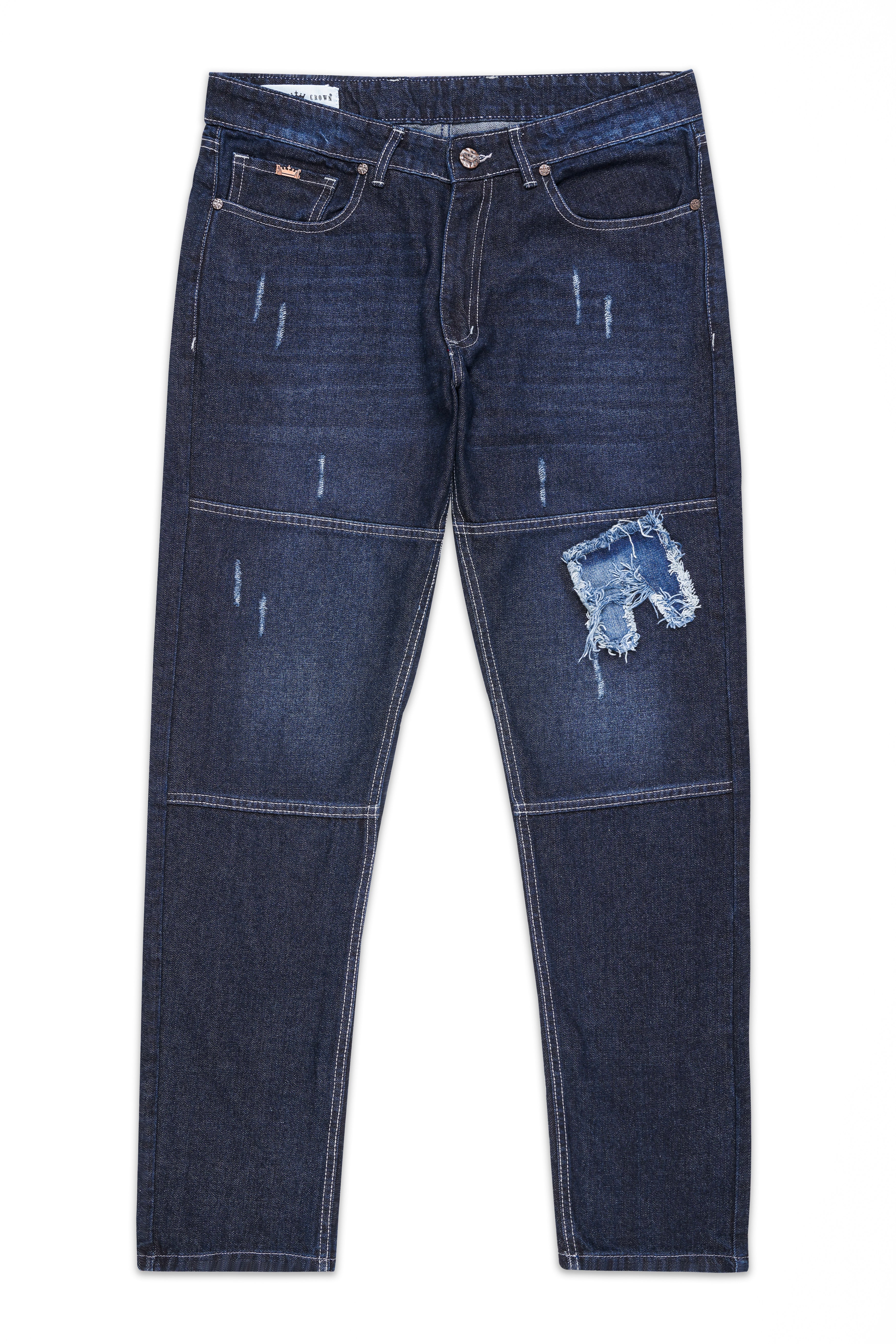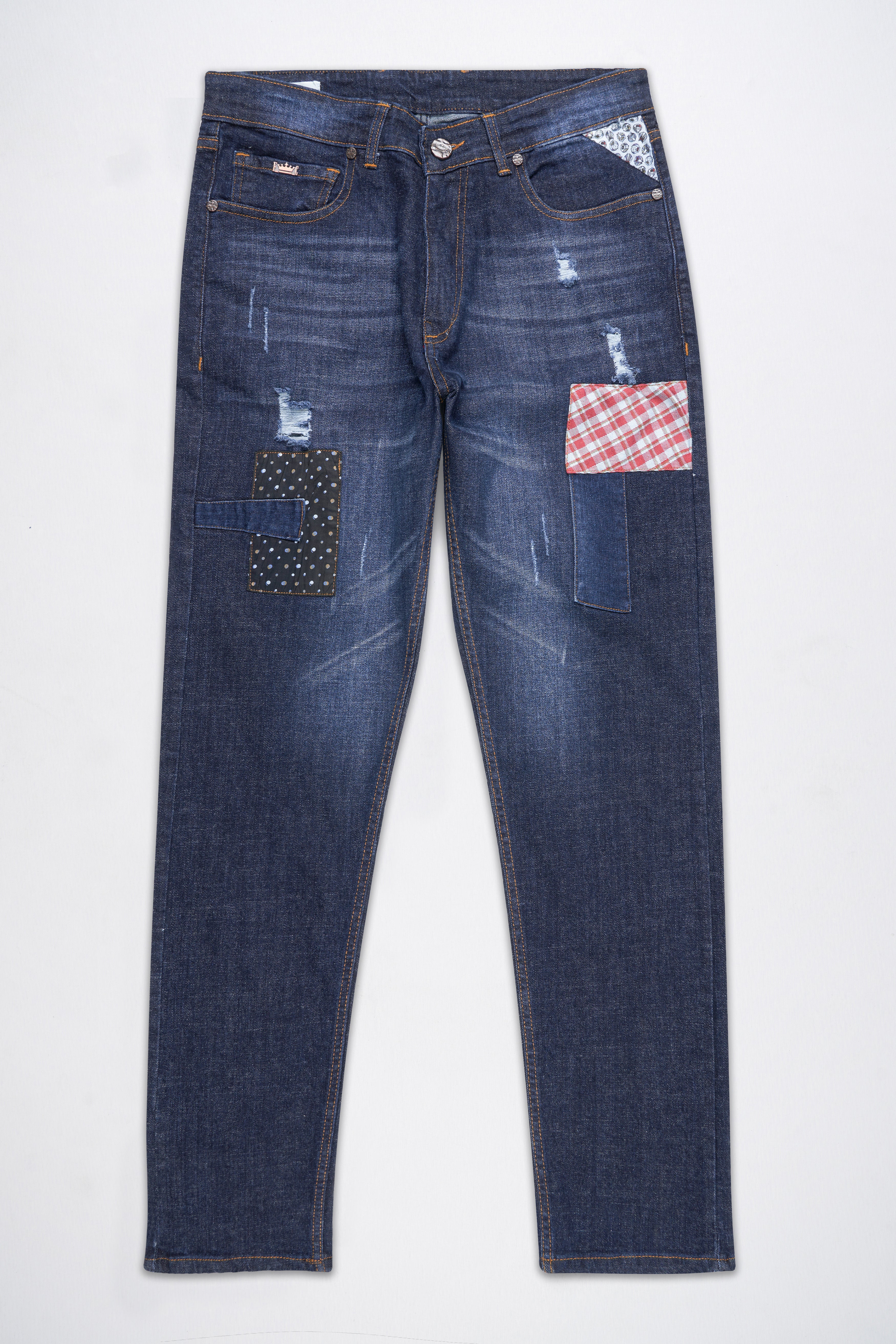 Gunmetal Blue Mildly Distressed Patch Work Whiskering Wash Stretchable Denim J257-30, J257-32, J257-34, J257-36, J257-38, J257-40Gunmetal Blue Mildly Distressed Patch Work Whiskering Wash Stretchable Denim J257-30, J257-32, J257-34, J257-36, J257-38, J257-40