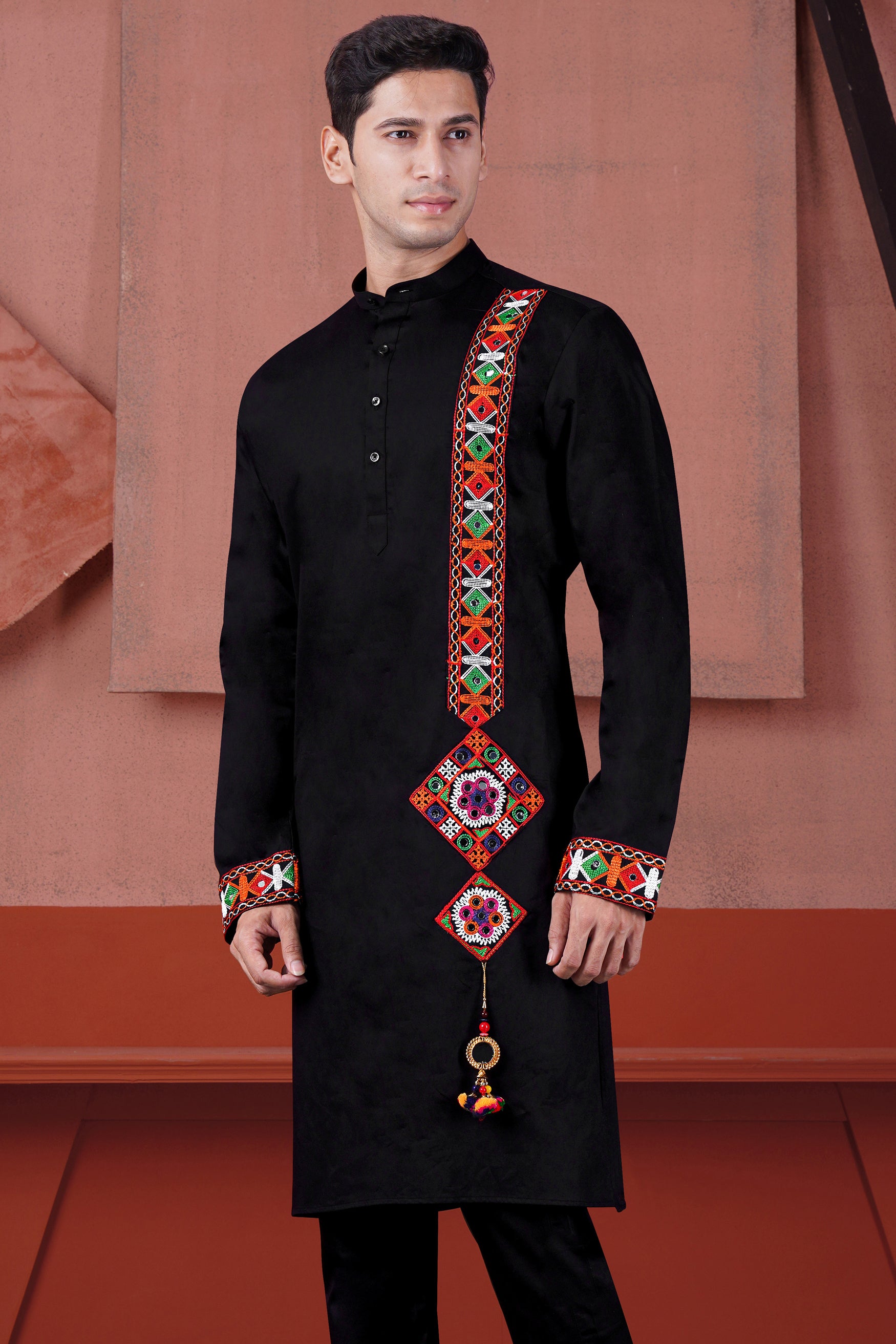 Jade Black Kutch Work Patches Subtle Sheen Super Soft Premium Cotton Designer Kurta