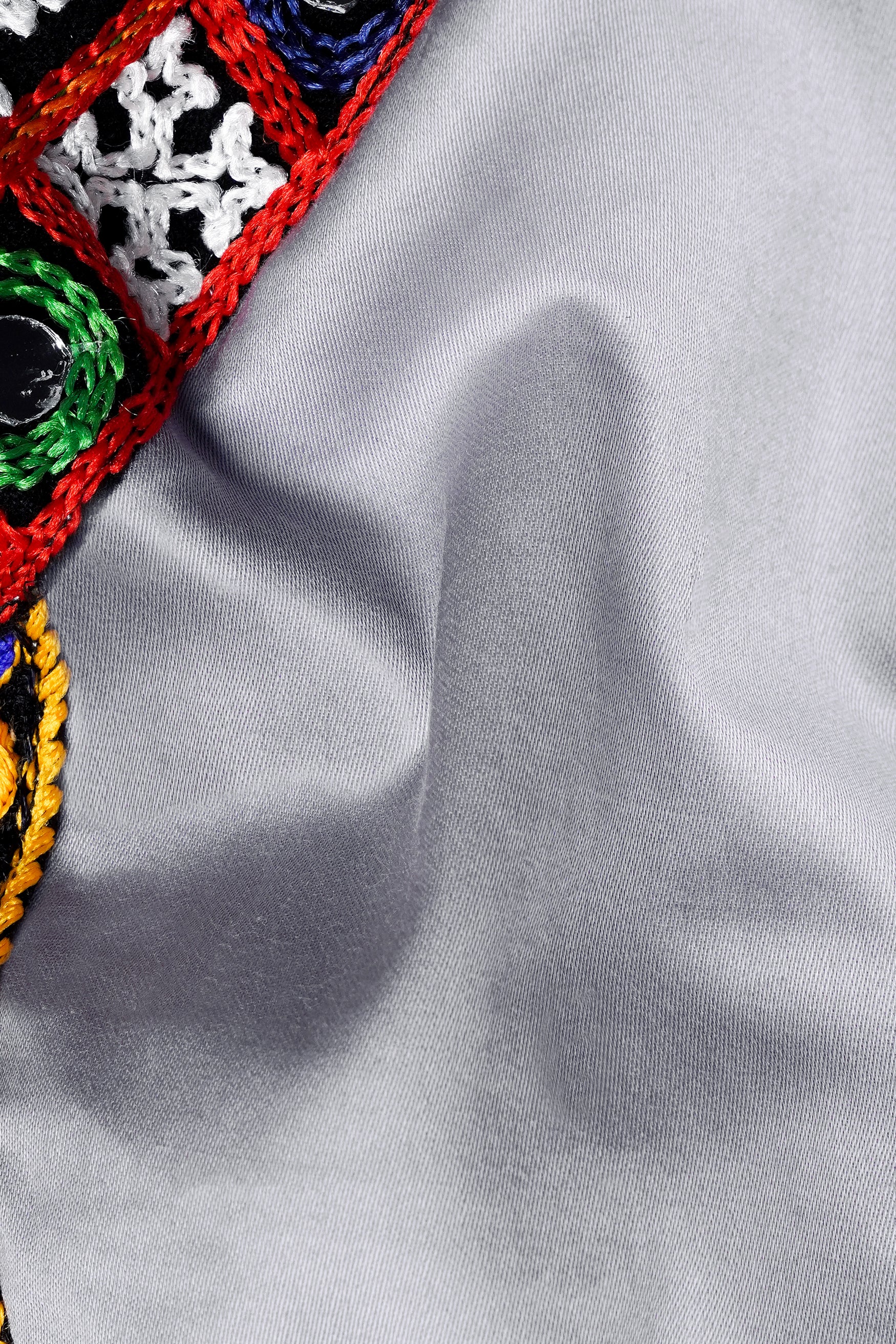 Haze Gray Multicolour Kutch Work Patches with Mirror Work Subtle Sheen Super Soft Premium Cotton Designer KurtaHaze Gray Multicolour Kutch Work Patches with Mirror Work Subtle Sheen Super Soft Premium Cotton Designer Kurta