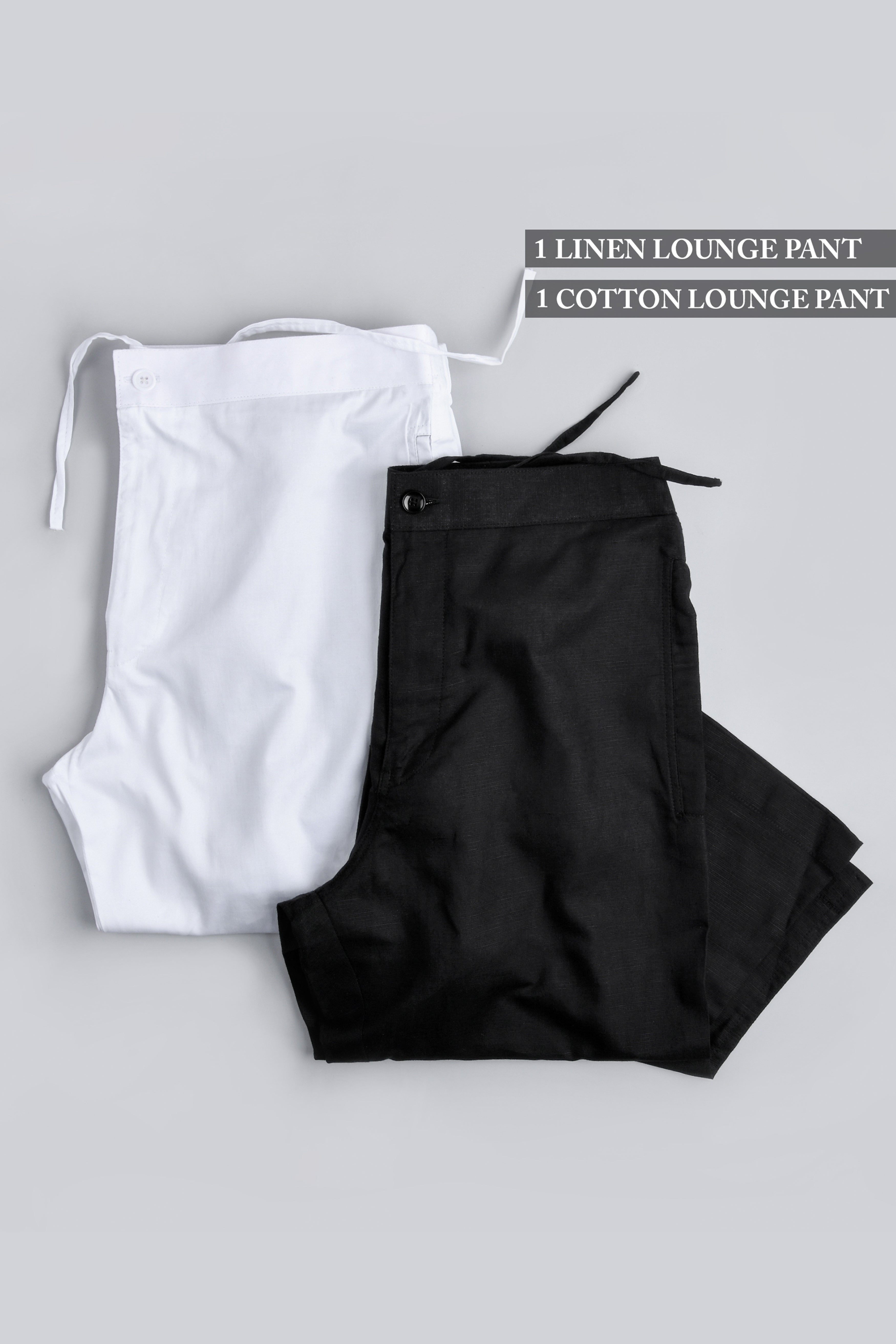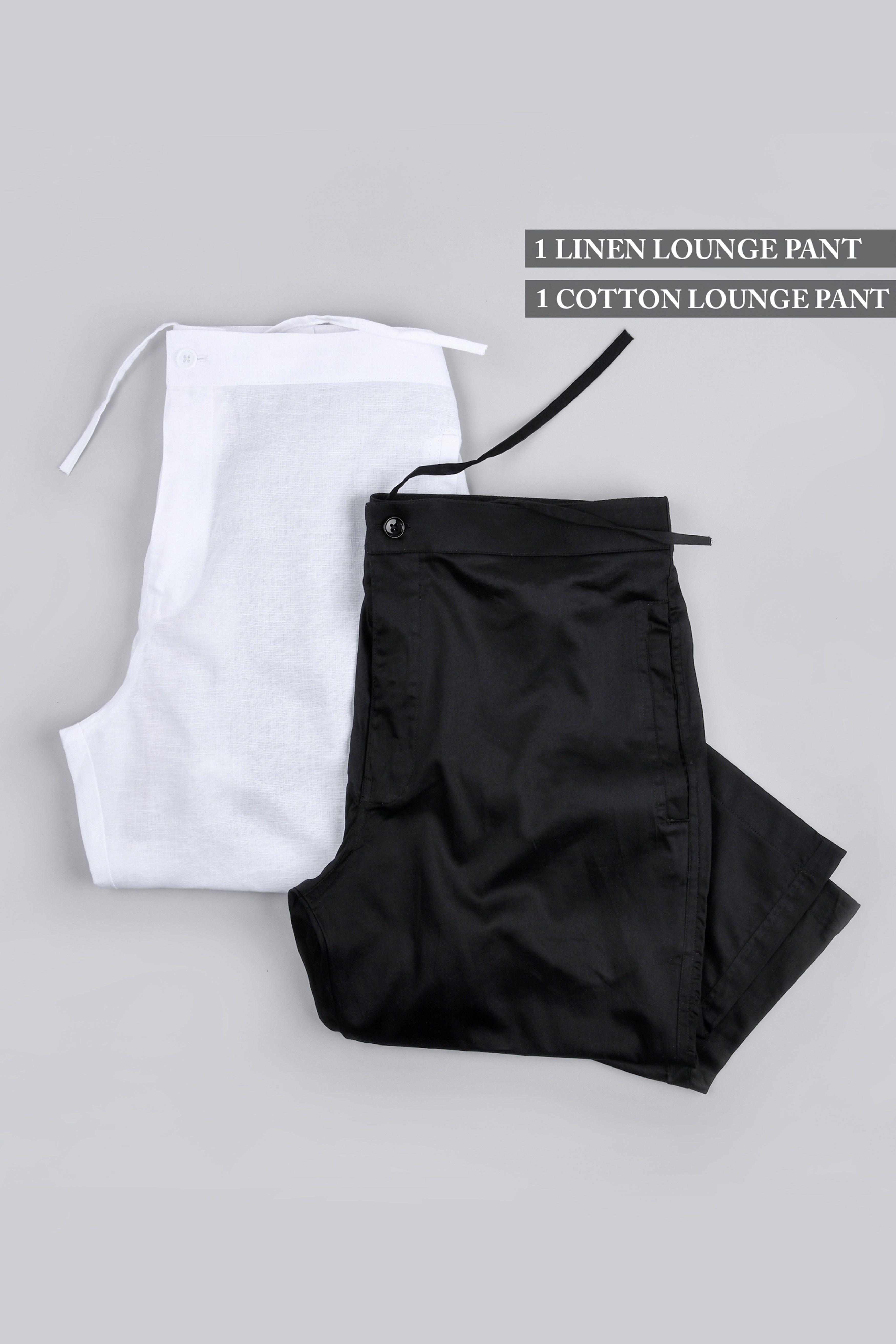 One Black Luxurious Linen and One white Cotton Lounge Pants
