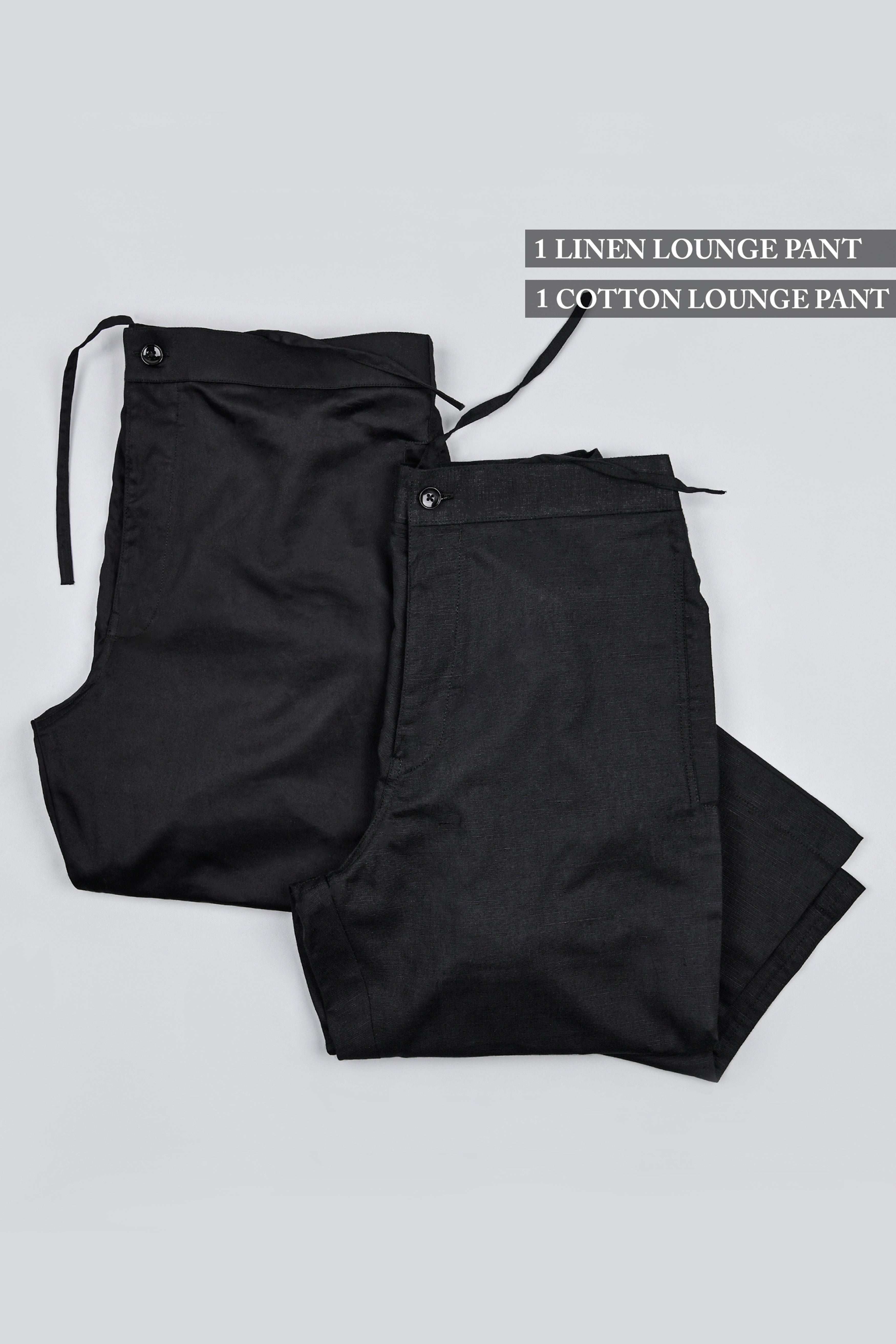 One Black Luxurious Linen and One Black Cotton Lounge PantsOne Black Luxurious Linen and One Black Cotton Lounge Pants