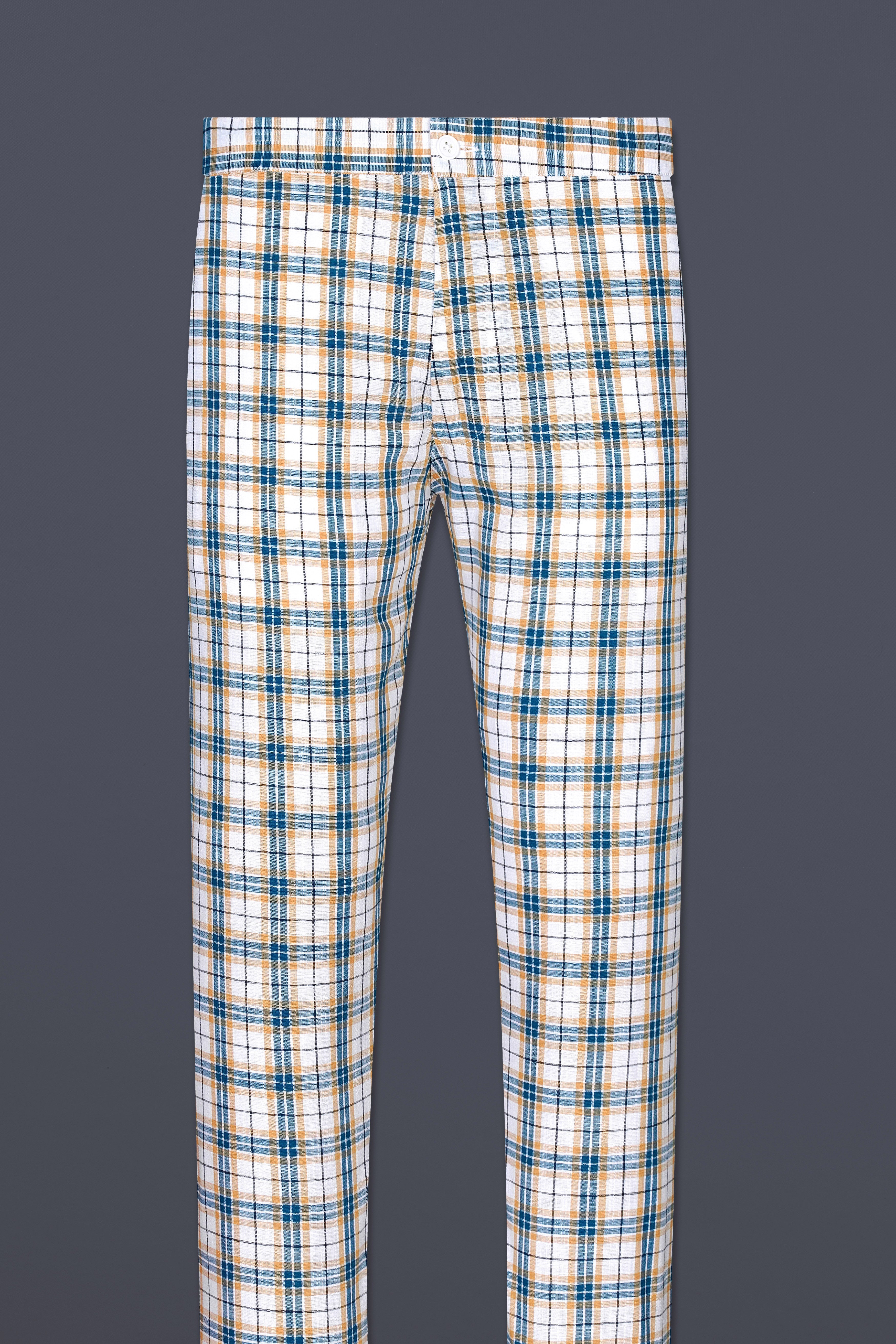 Bright White with Ocean Blue Plaid Luxurious Linen Lounge PantBright White with Ocean Blue Plaid Luxurious Linen Lounge Pant