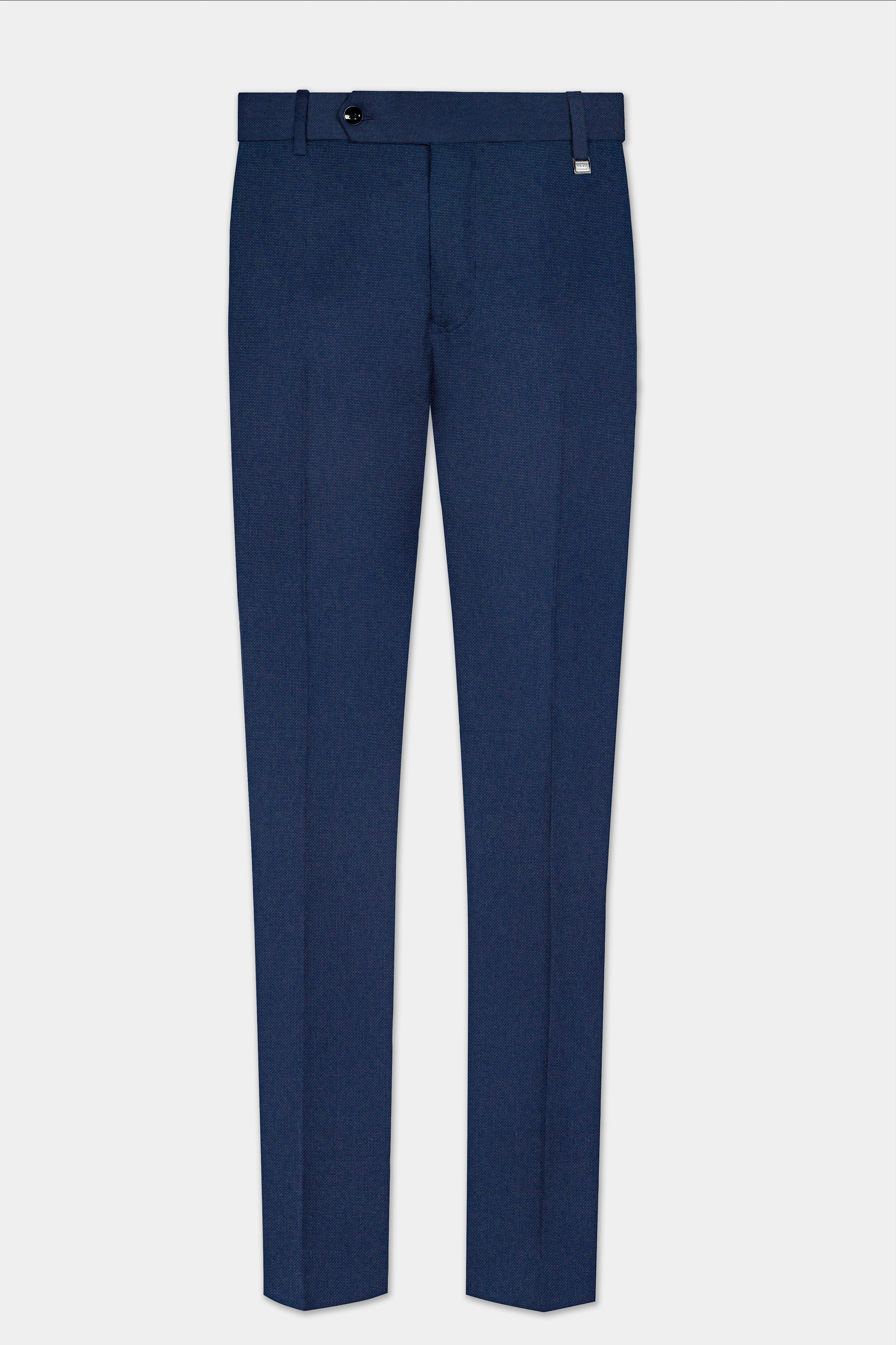 Firefly Blue Textured Wool Blend Stretchable Waistband Pant