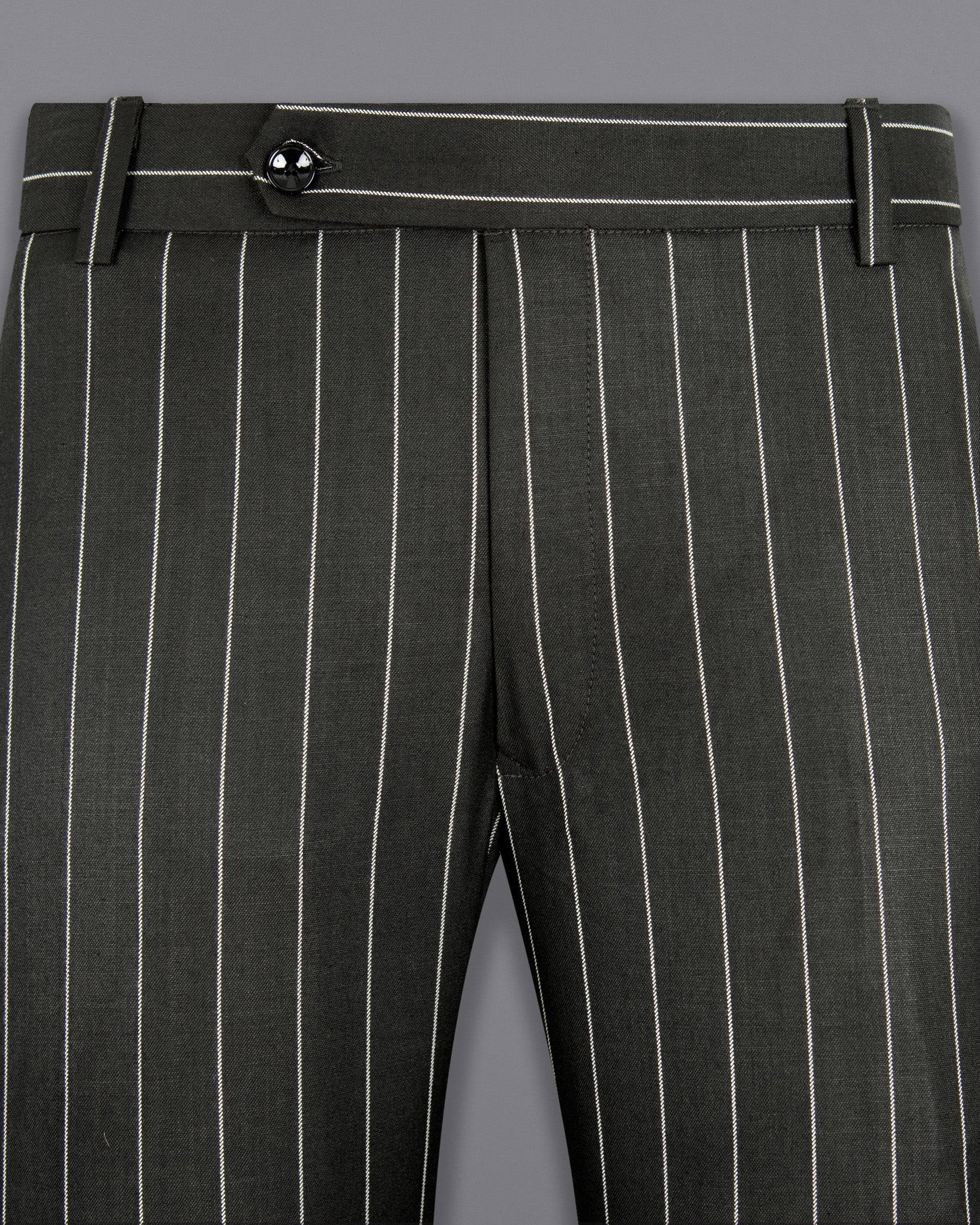 Zeus Black with White Stripes Wool Rich Pant T1304-28, T1304-30, T1304-32, T1304-34, T1304-36, T1304-38, T1304-40, T1304-42, T1304-44Zeus Black with White Stripes Wool Rich Pant