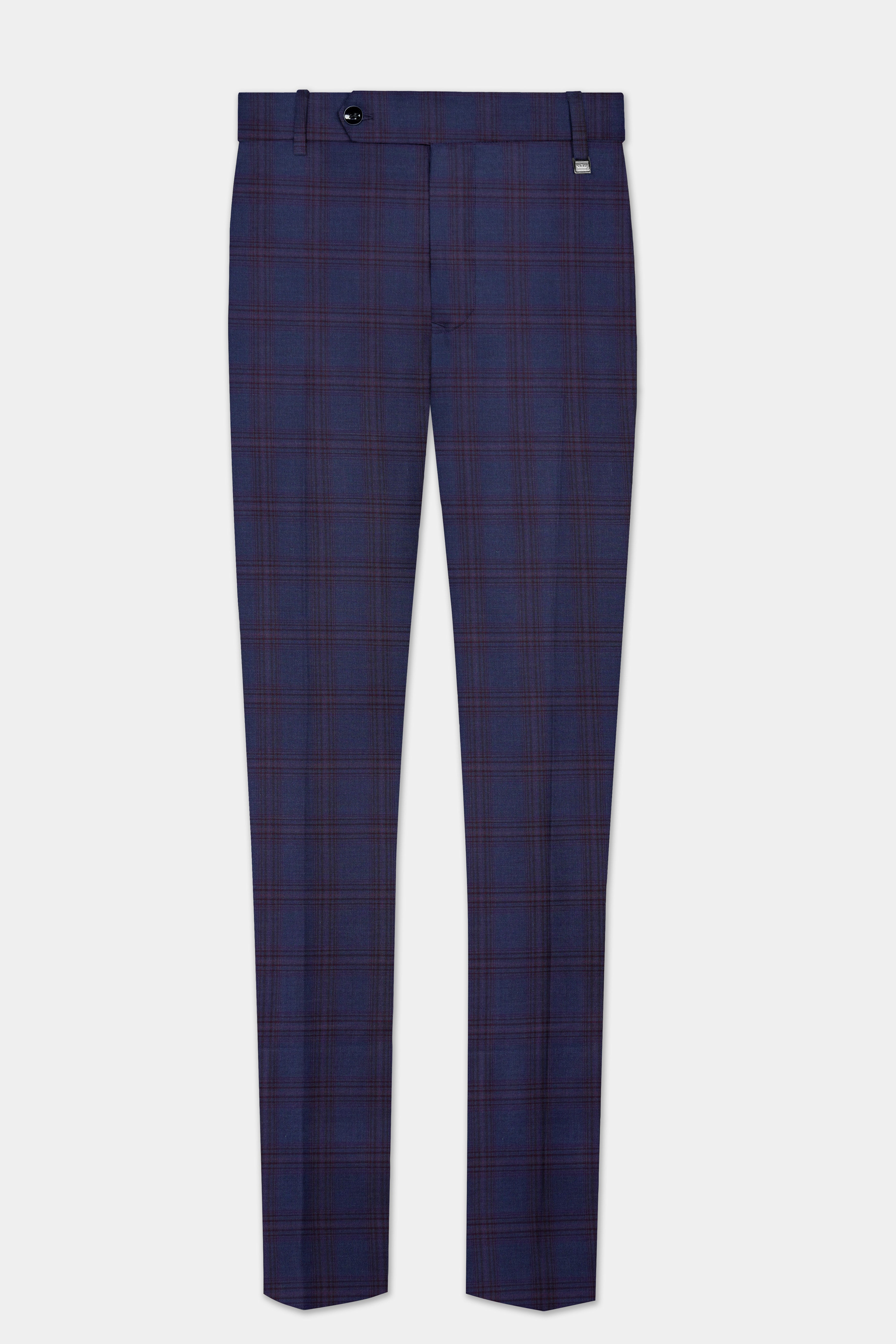 Ocean Crest-Martinique Blue Plaid Wool Rich Stretchable Waistband PantOcean Crest-Martinique Blue Plaid Wool Rich Stretchable Waistband Pant