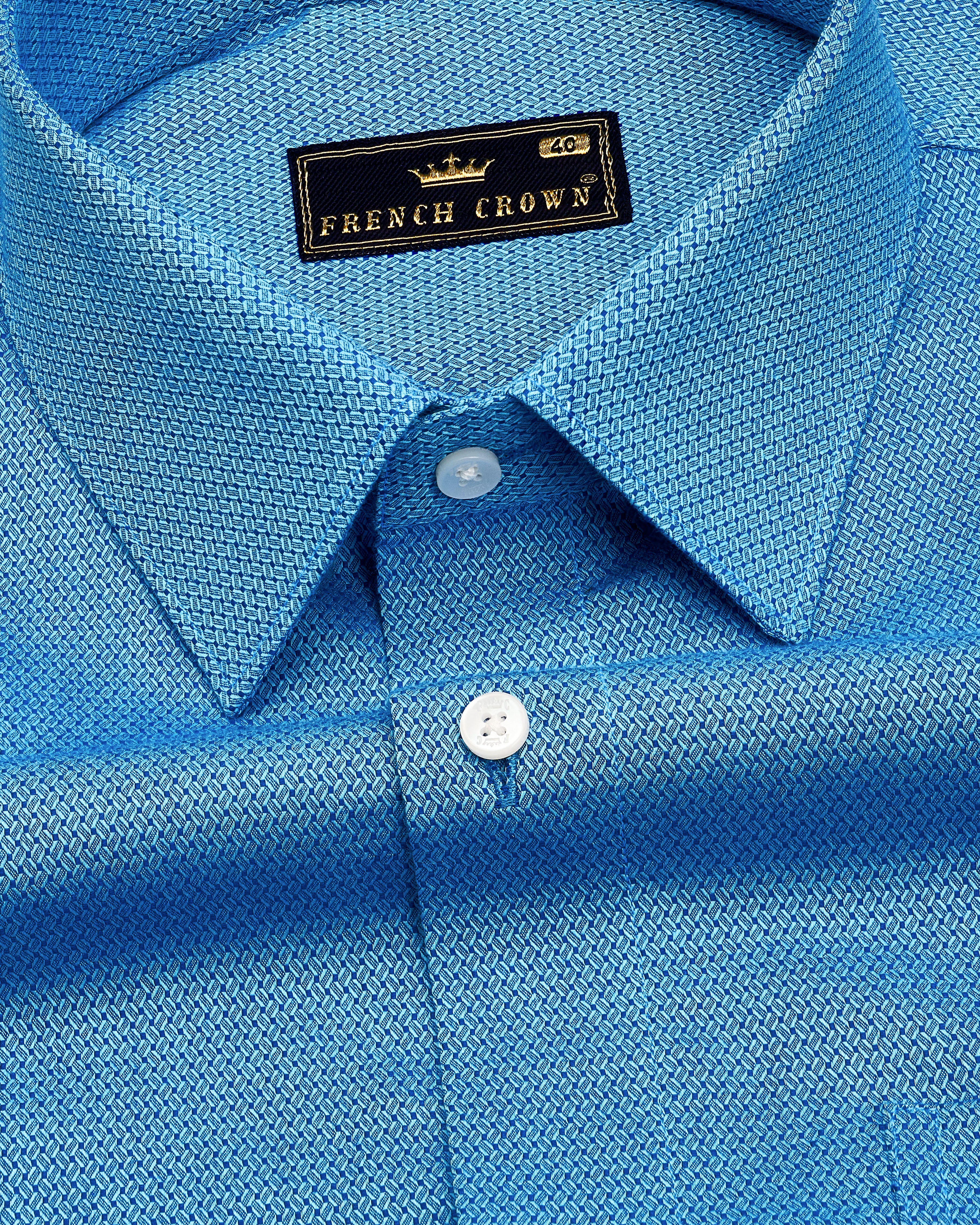 Curious Blue Dobby Textured Premium Giza Cotton Shirt