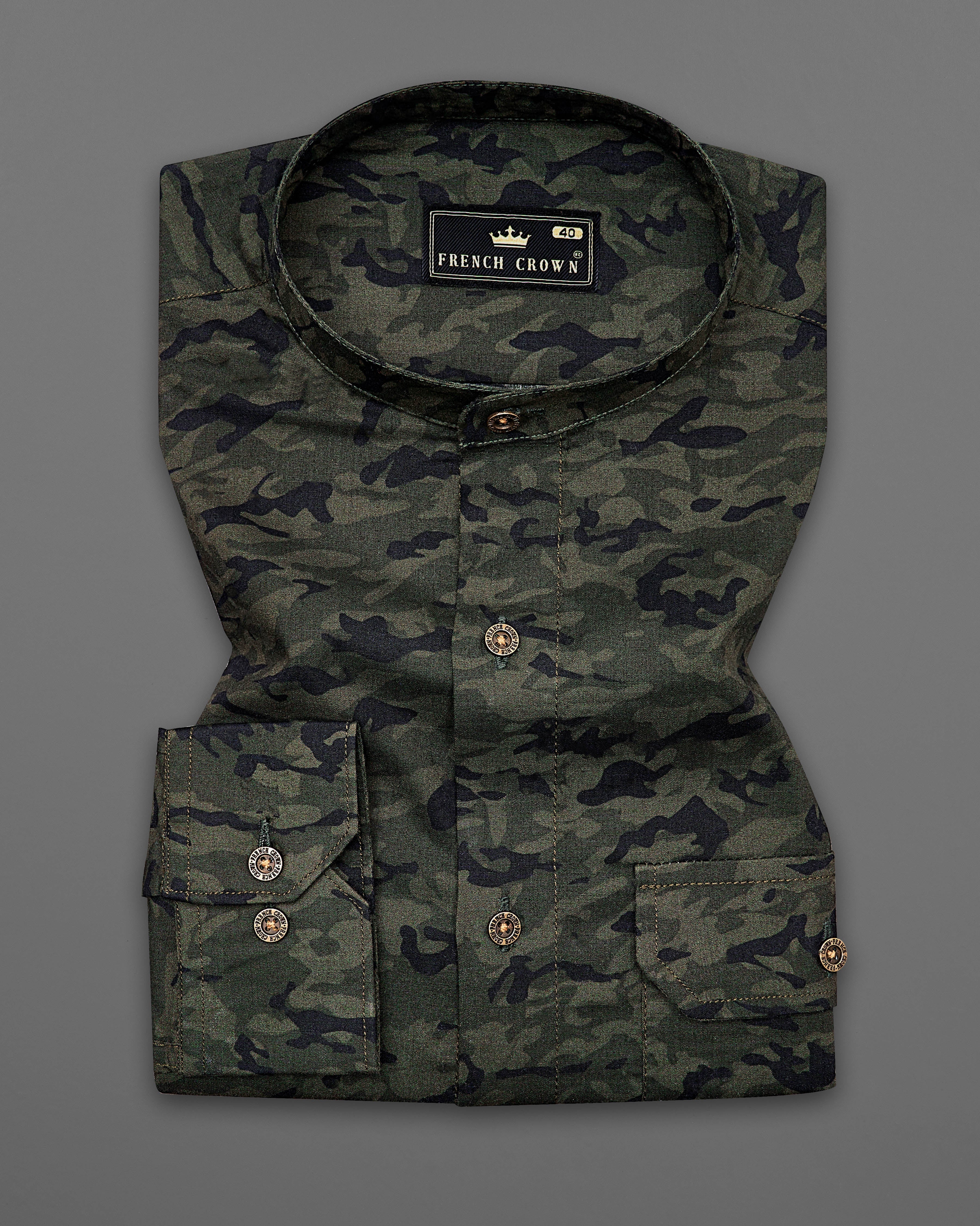 Siam Green with Wenge Brown Camouflage Printed Royal Oxford ShirtSiam Green with Wenge Brown Camouflage Printed Royal Oxford Shirt