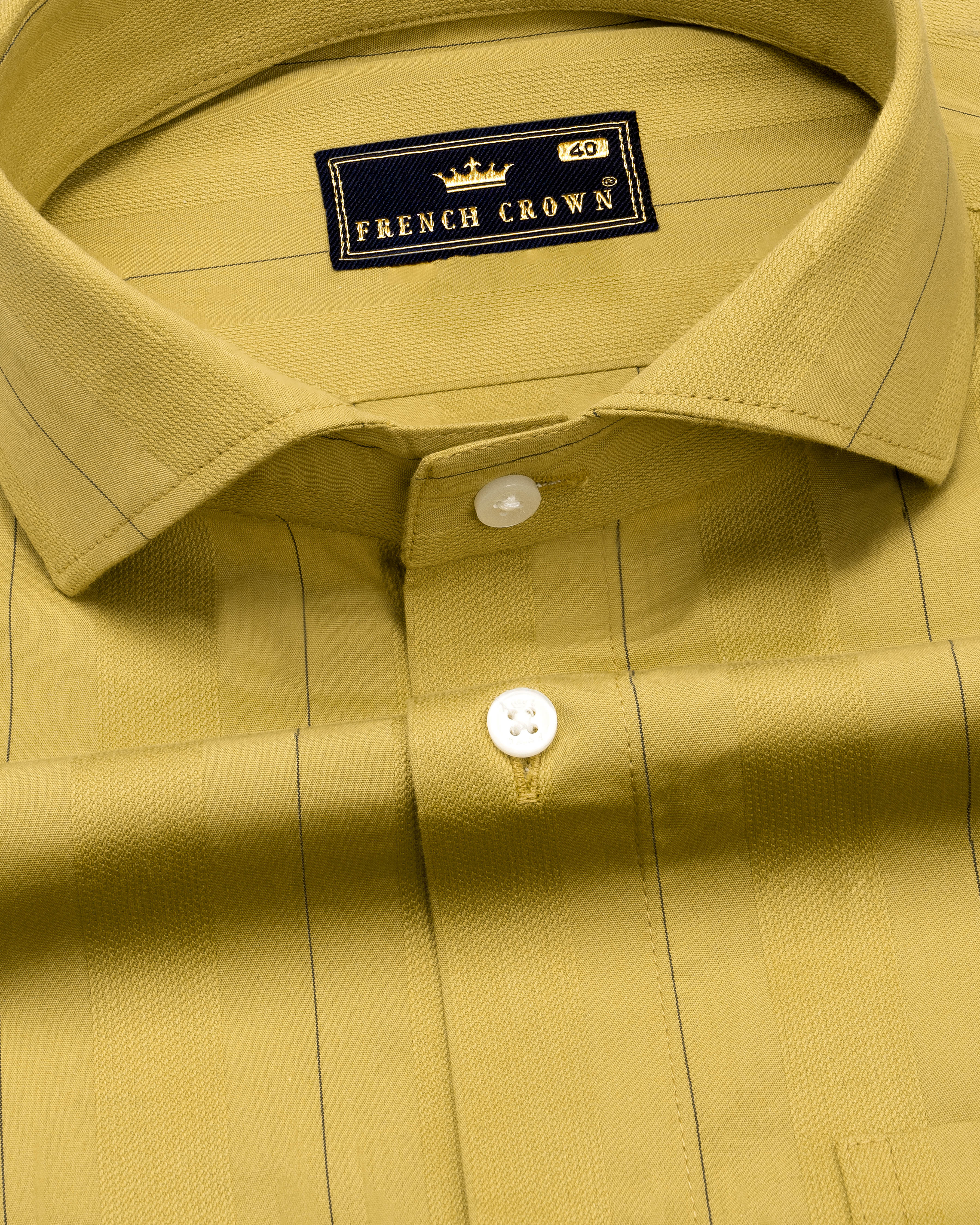 Husk Yellow Striped Dobby Textured Premium Giza Cotton Shirt