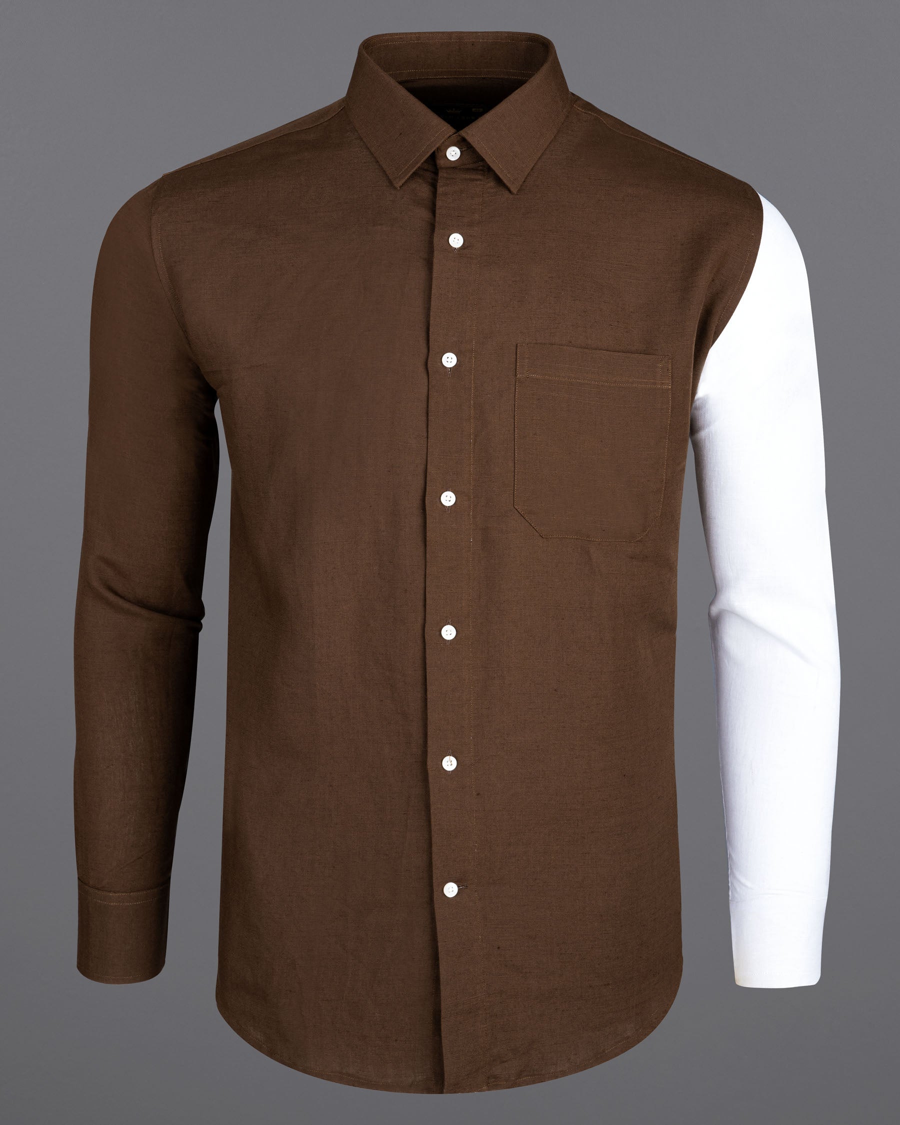 Iroko Brown with White Sleeve Luxurious Linen designer Shirt