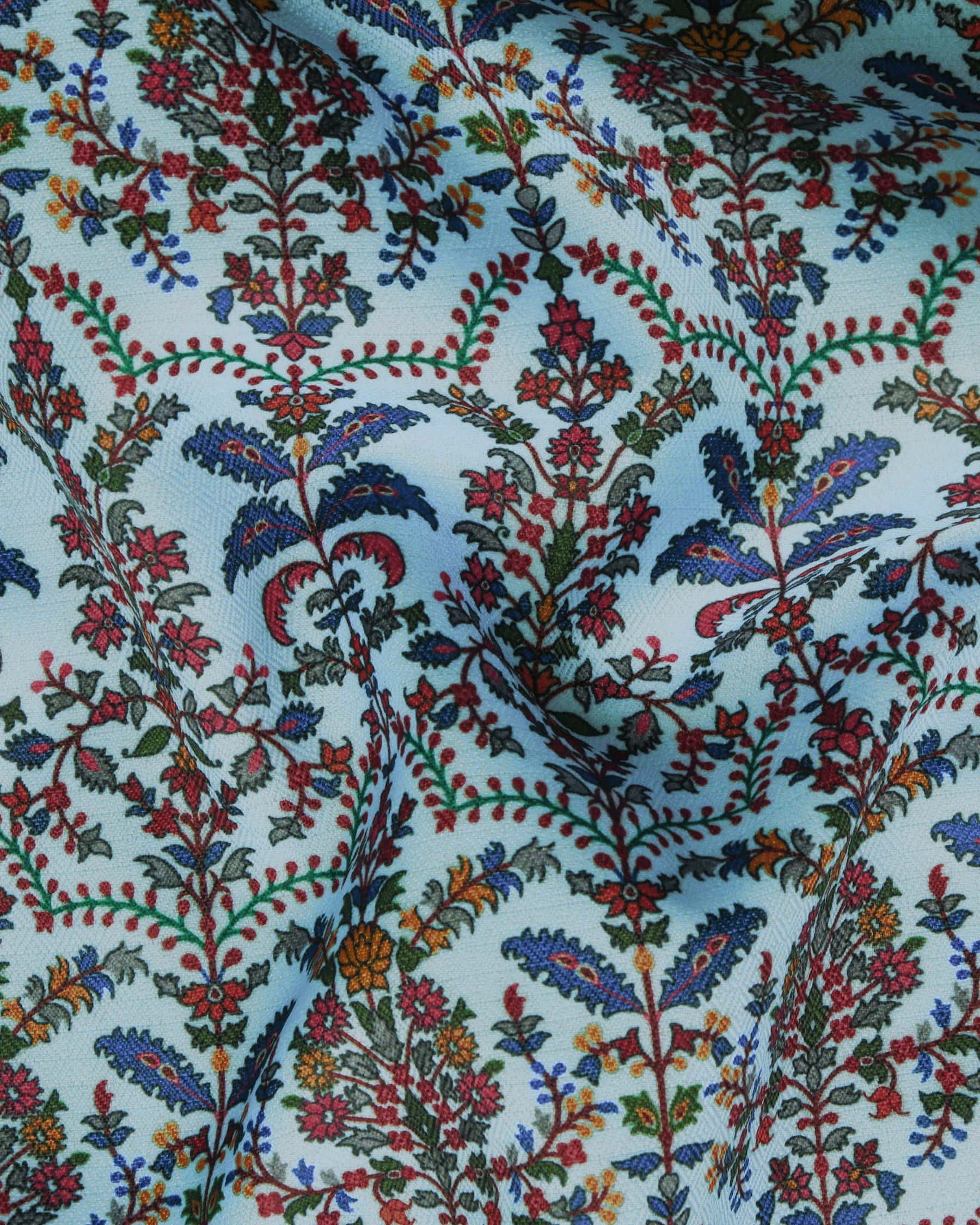 Sky with Multi-color Flora Print Premium Designer Nehru Jacket