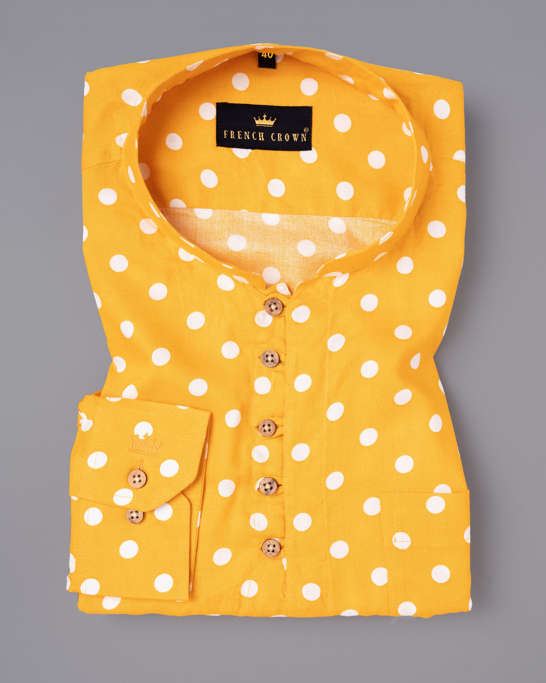 Golden Tainoi Yellow Polka Dots Tencel Kurta Style Beach Shirt