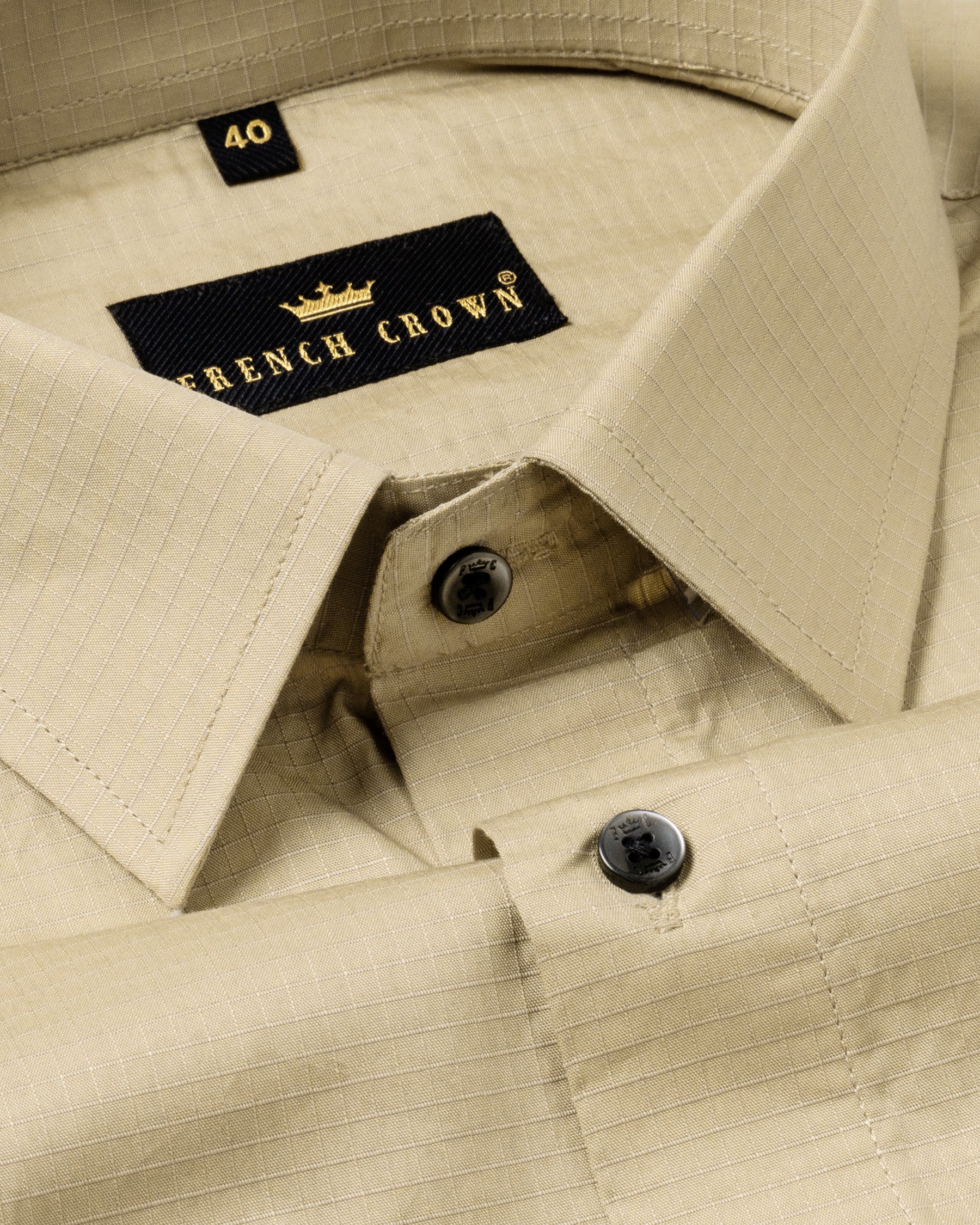 Vanilla Brown Subtle Checked Dobby Textured Premium Giza Cotton Shirt