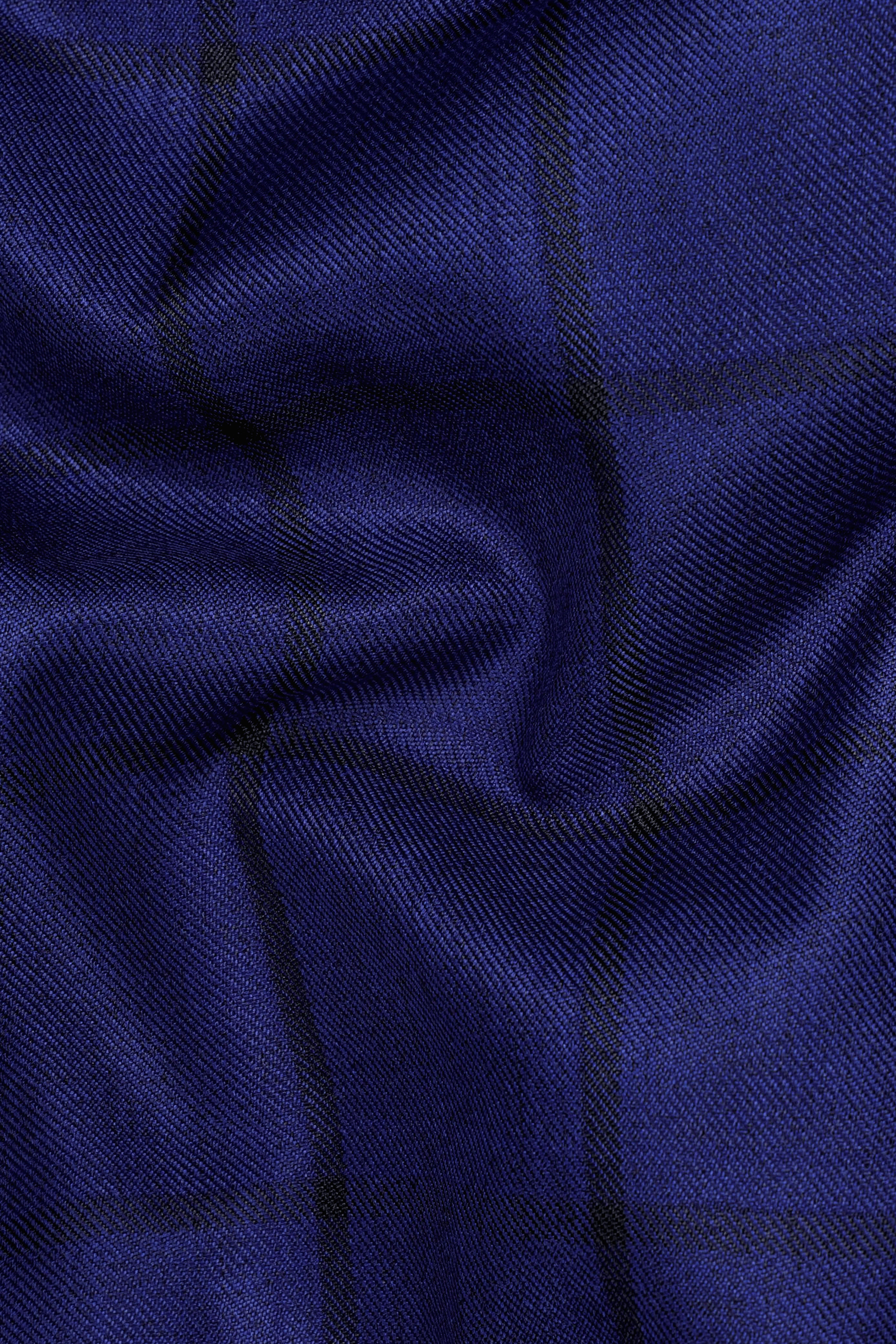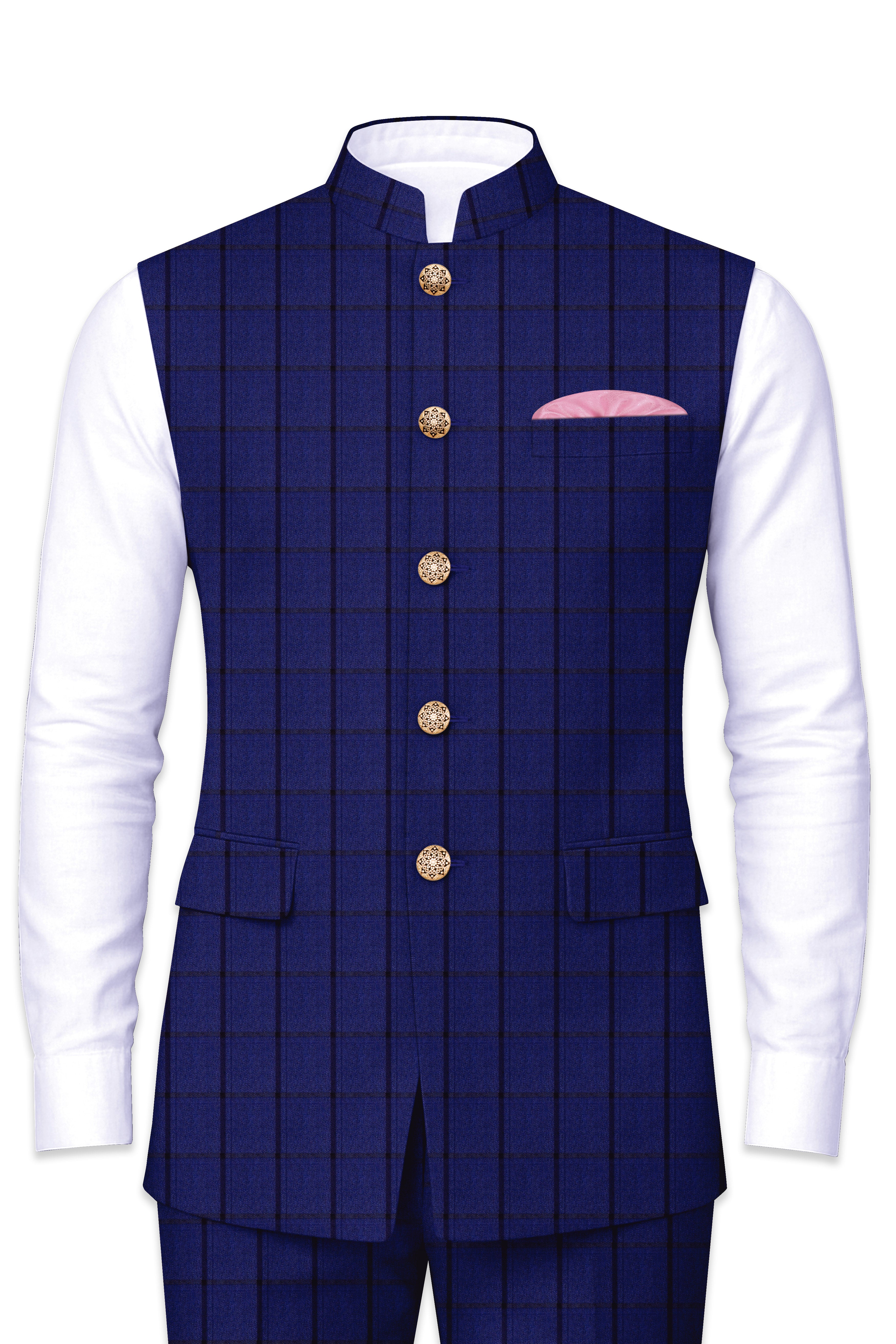 Cloud Burst Blue With Black Plaid Nehru JacketCloud Burst Blue With Black Plaid Nehru Jacket