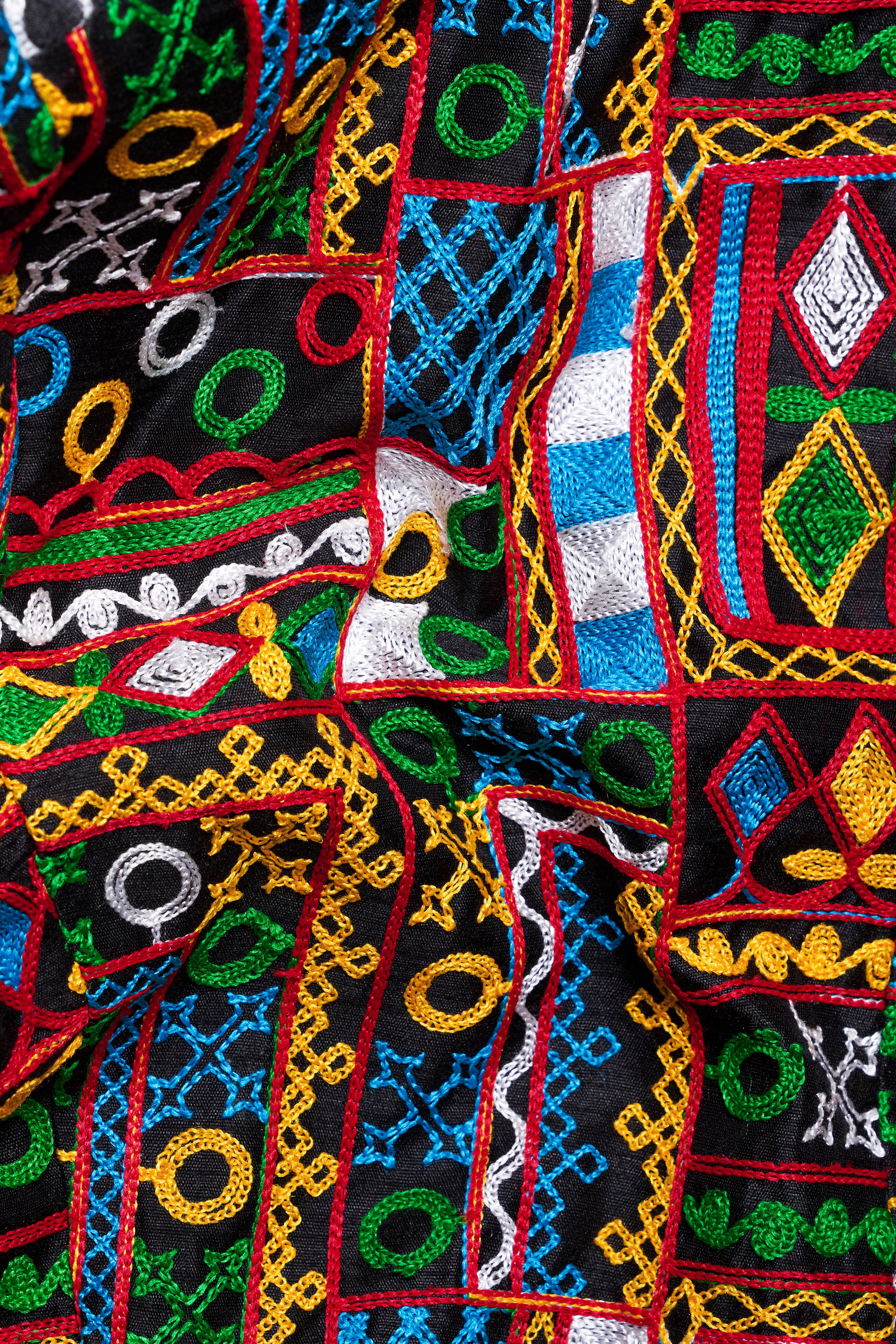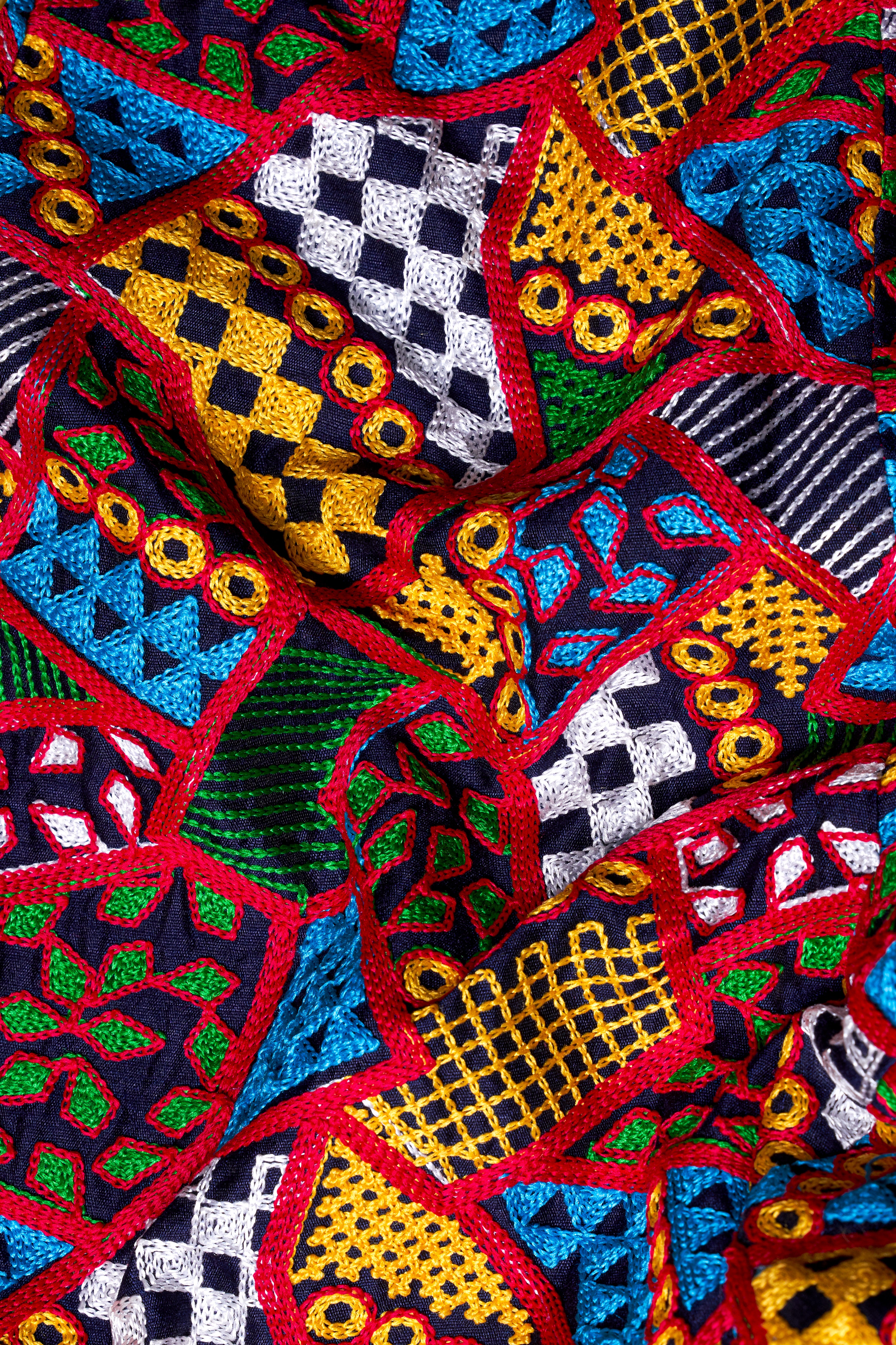 Sinopia Red with Smalt Blue and Peel Orange Cotton Thread Embroidered Nehru Jacket