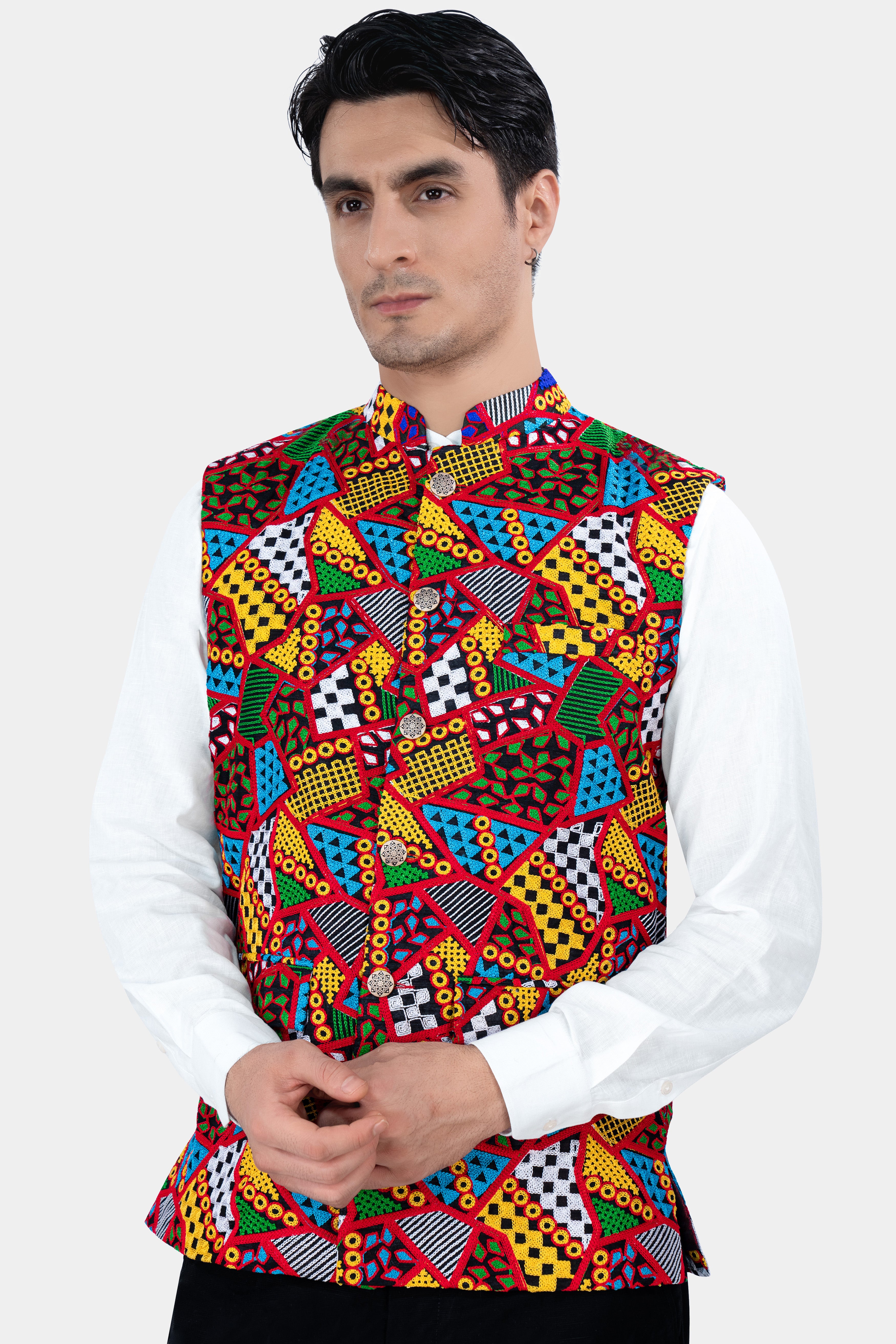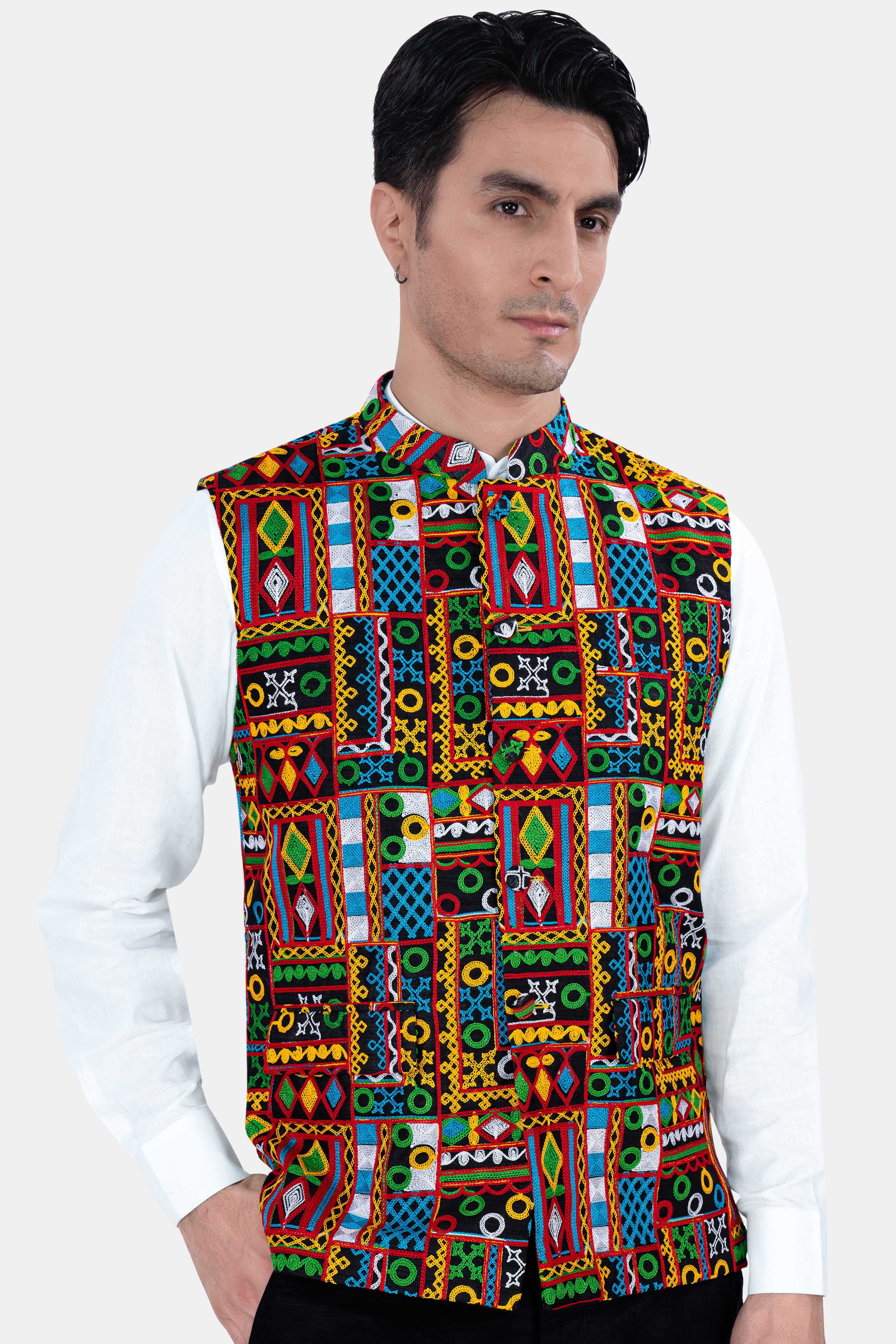 Carnelian Red and Kelly Green Multicolour Cotton Thread Embroidered Nehru Jacket WC2889-36, WC2889-38, WC2889-40, WC2889-42, WC2889-44, WC2889-46, WC2889-48, WC2889-50, WC2889-52, WC2889-54, WC2889-56, WC2889-58, WC2889-60Carnelian Red and Kelly Green Multicolour Cotton Thread Embroidered Nehru Jacket WC2889-36, WC2889-38, WC2889-40, WC2889-42, WC2889-44, WC2889-46, WC2889-48, WC2889-50, WC2889-52, WC2889-54, WC2889-56, WC2889-58, WC2889-60