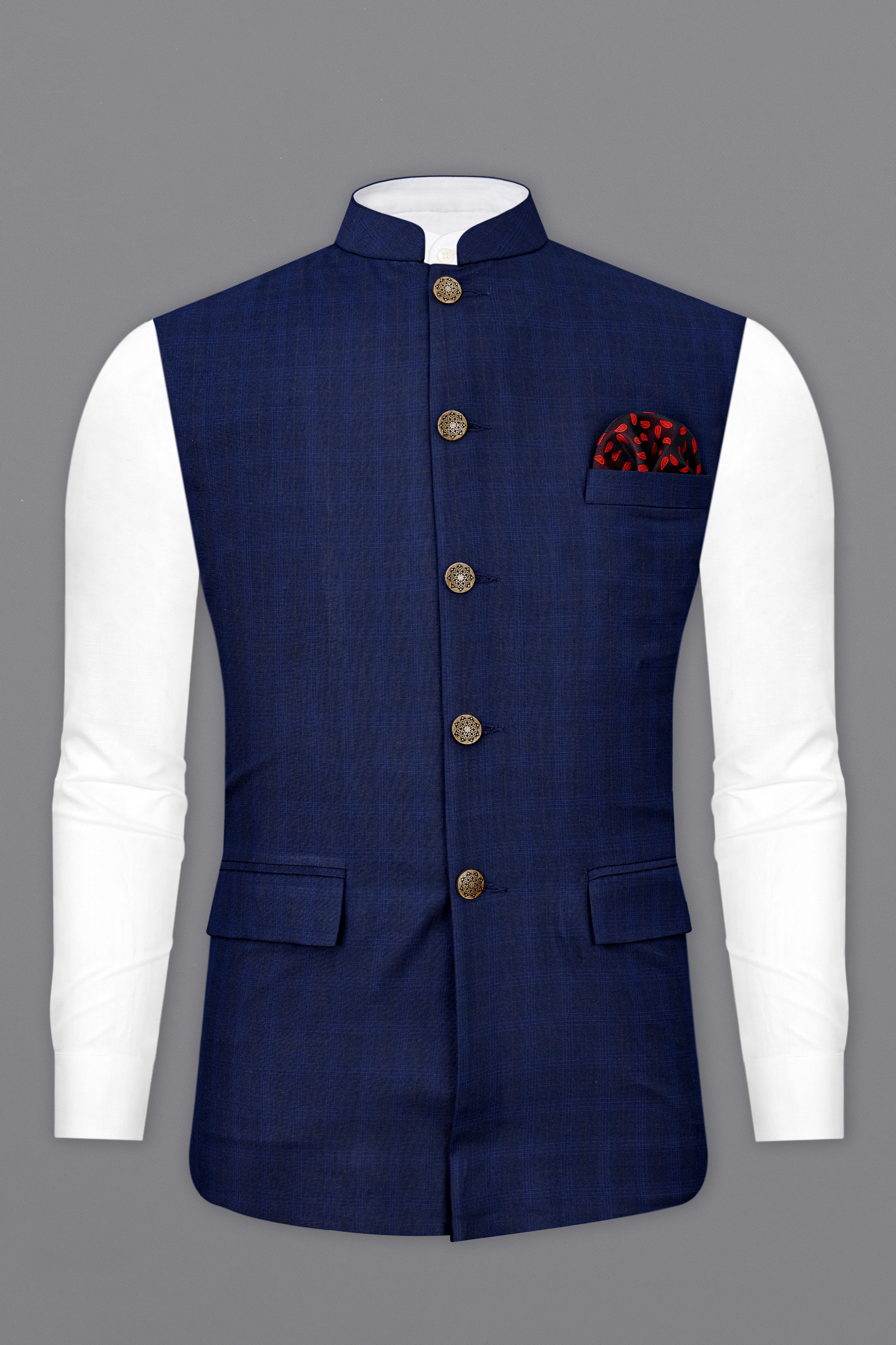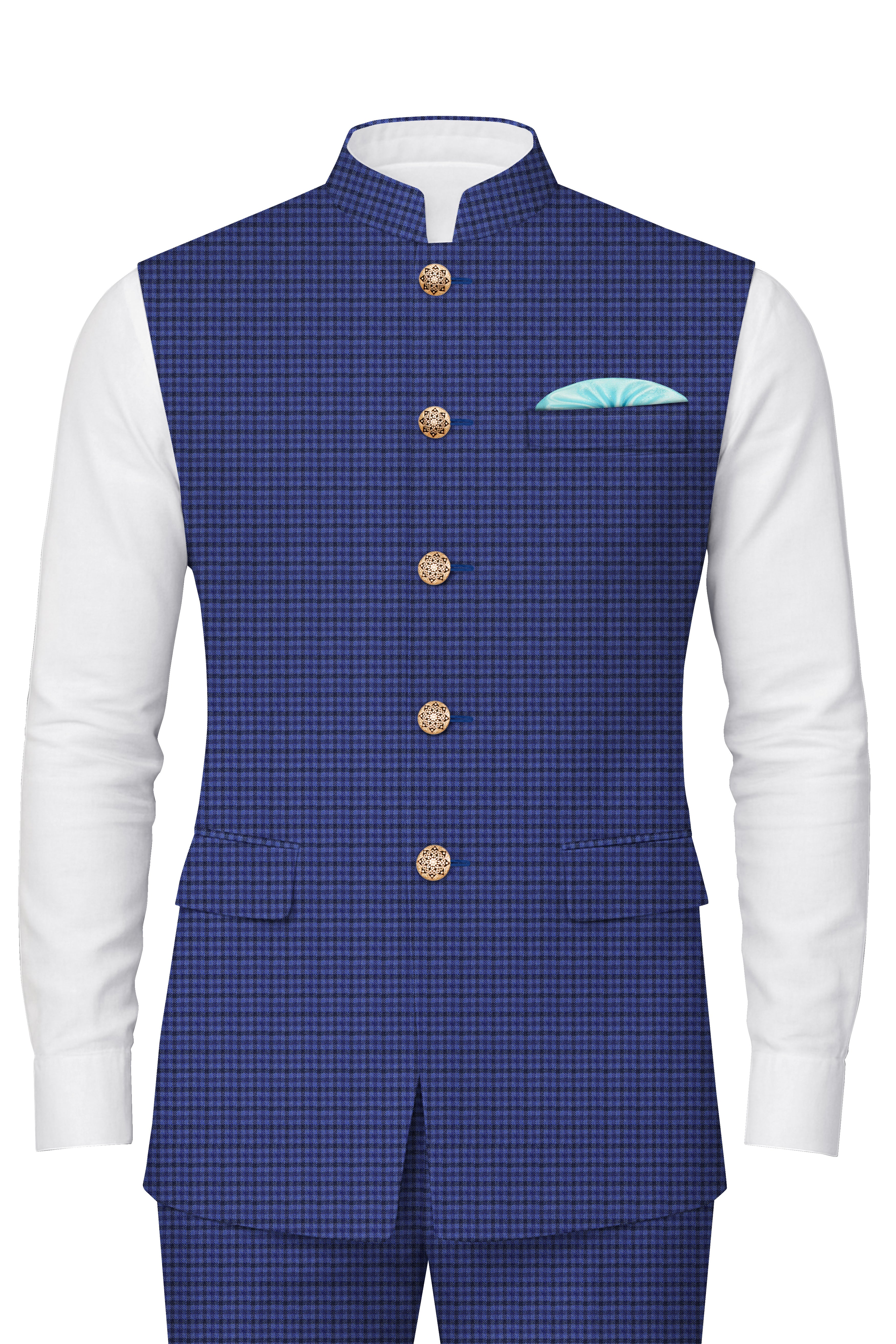 Ebony Clay Blue Windowpane Nehru Jacket WC2501-38, WC2501-39, WC2501-40, WC2501-42, WC2501-44, WC2501-46, WC2501-48, WC2501-50, WC2501-52Ebony Clay Blue Windowpane Nehru Jacket WC2501-38, WC2501-39, WC2501-40, WC2501-42, WC2501-44, WC2501-46, WC2501-48, WC2501-50, WC2501-52