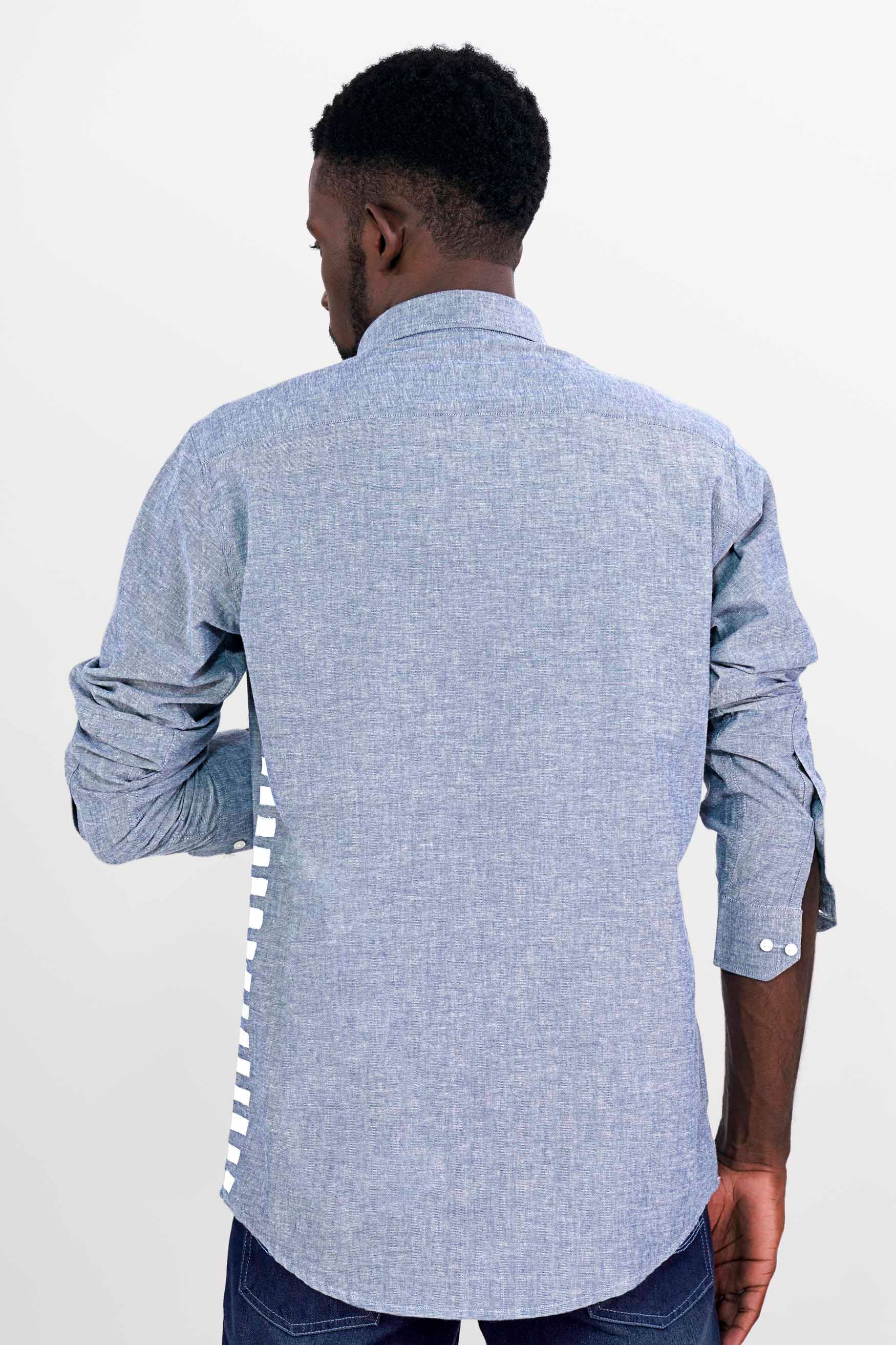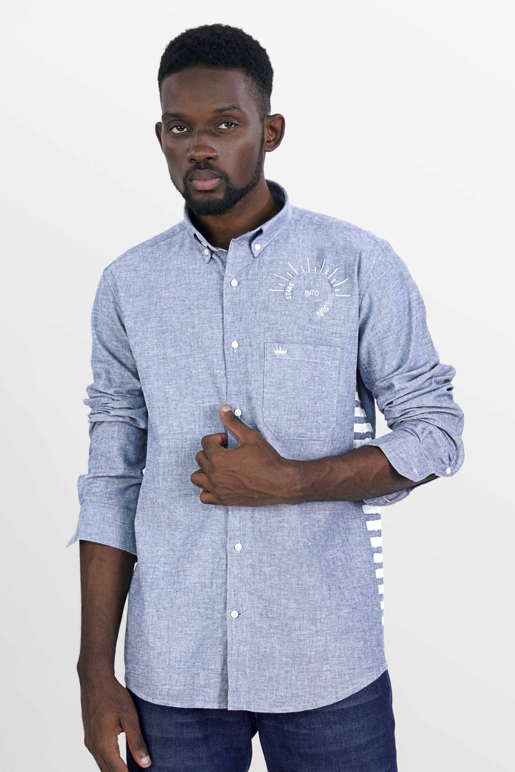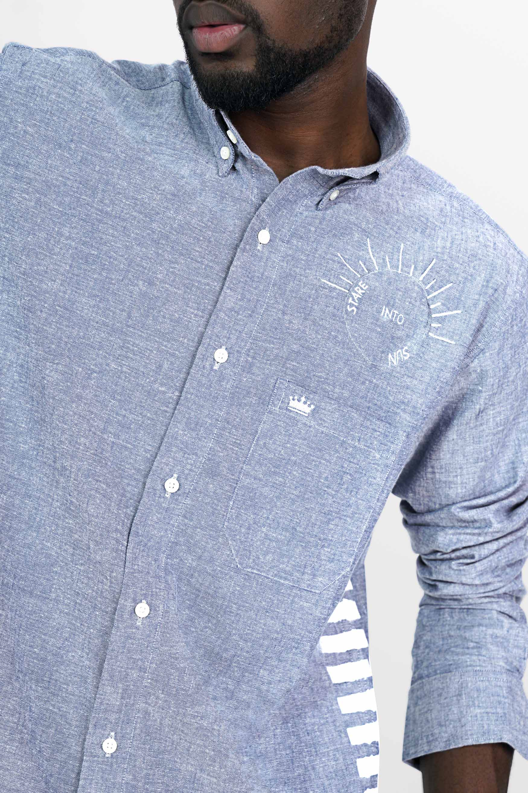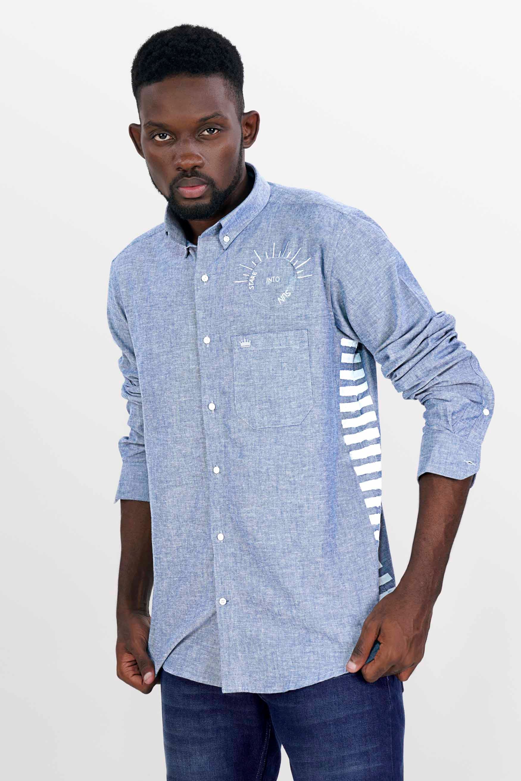 Sisal Cream Retro Printed Chambray Premium Cotton ShirtSisal Cream Retro Printed Chambray Premium Cotton Shirt