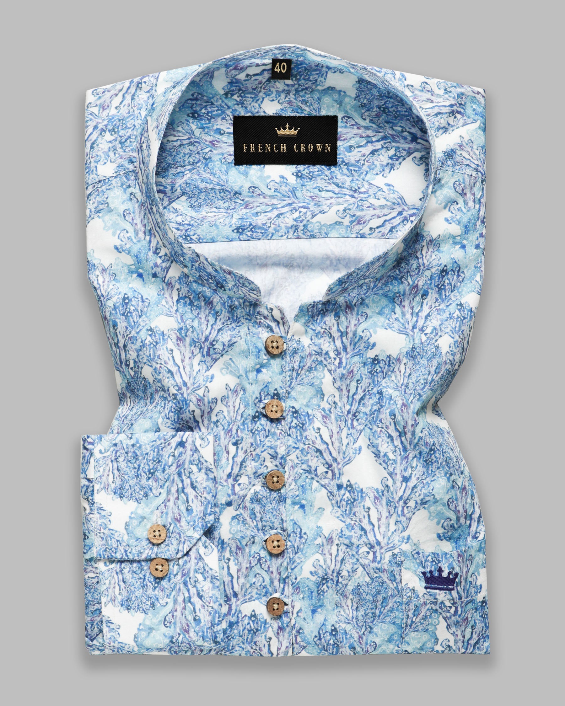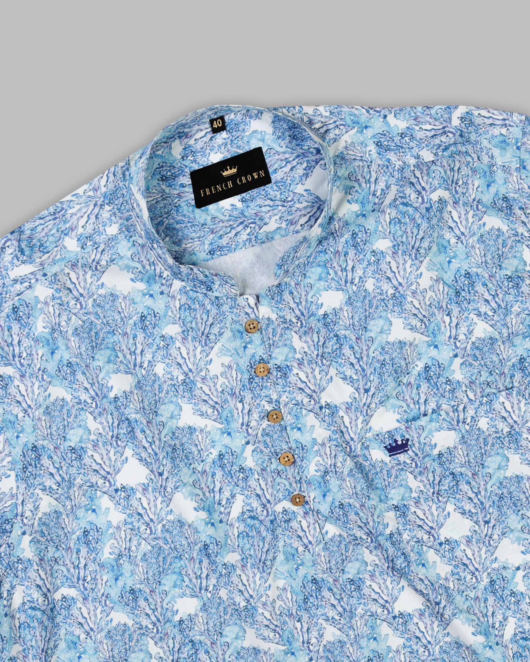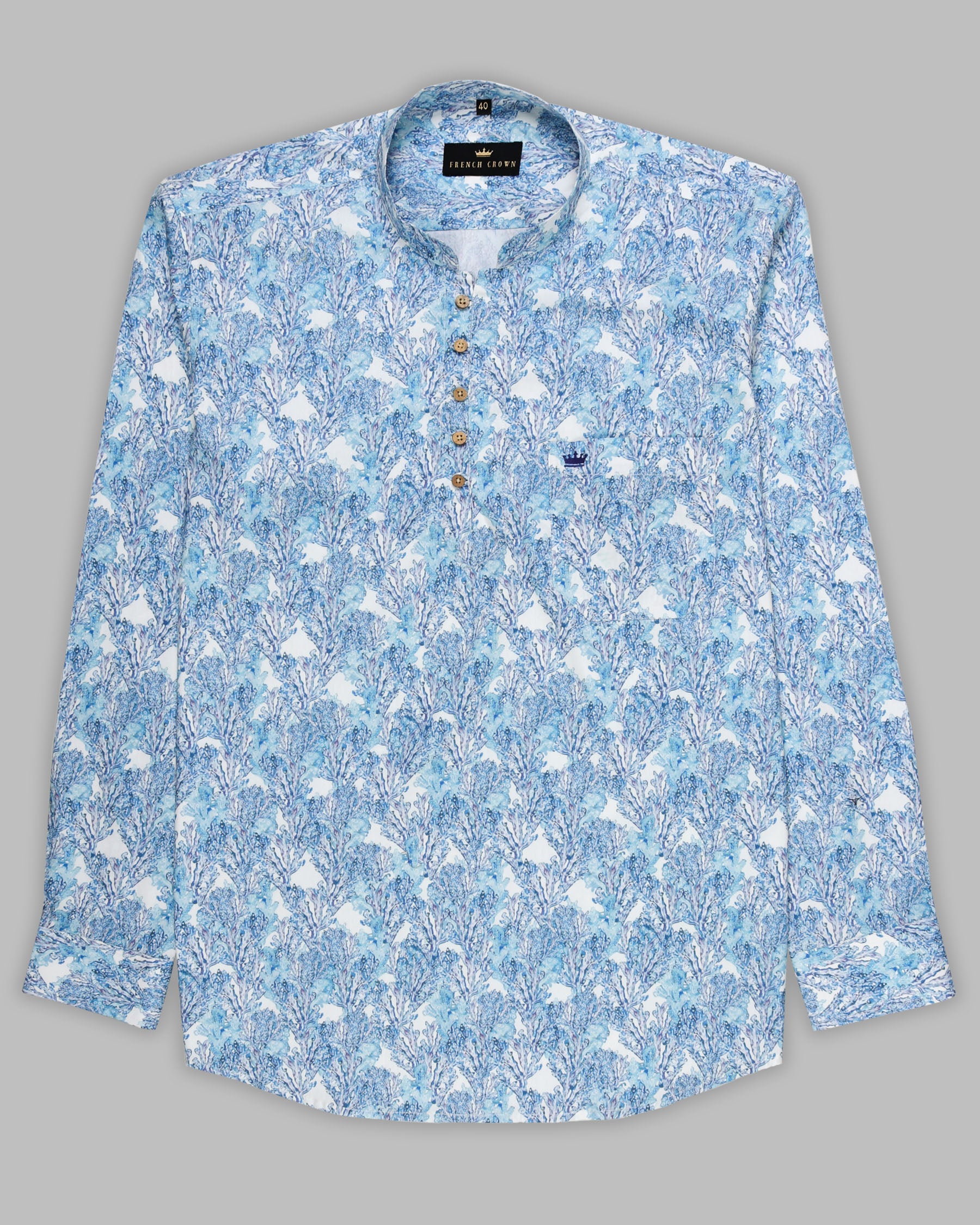 Aqua Blue Tonal Print Kurta Style Super Soft Giza Cotton Shirt