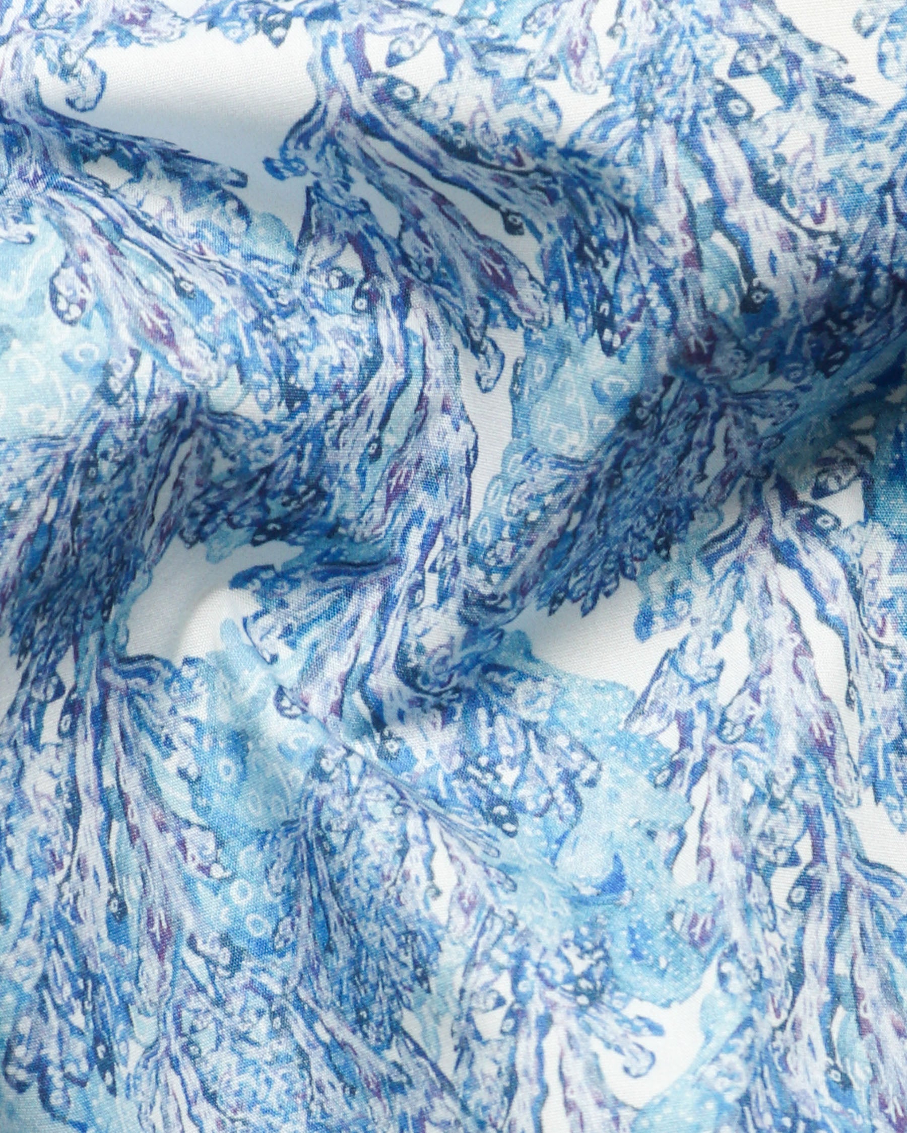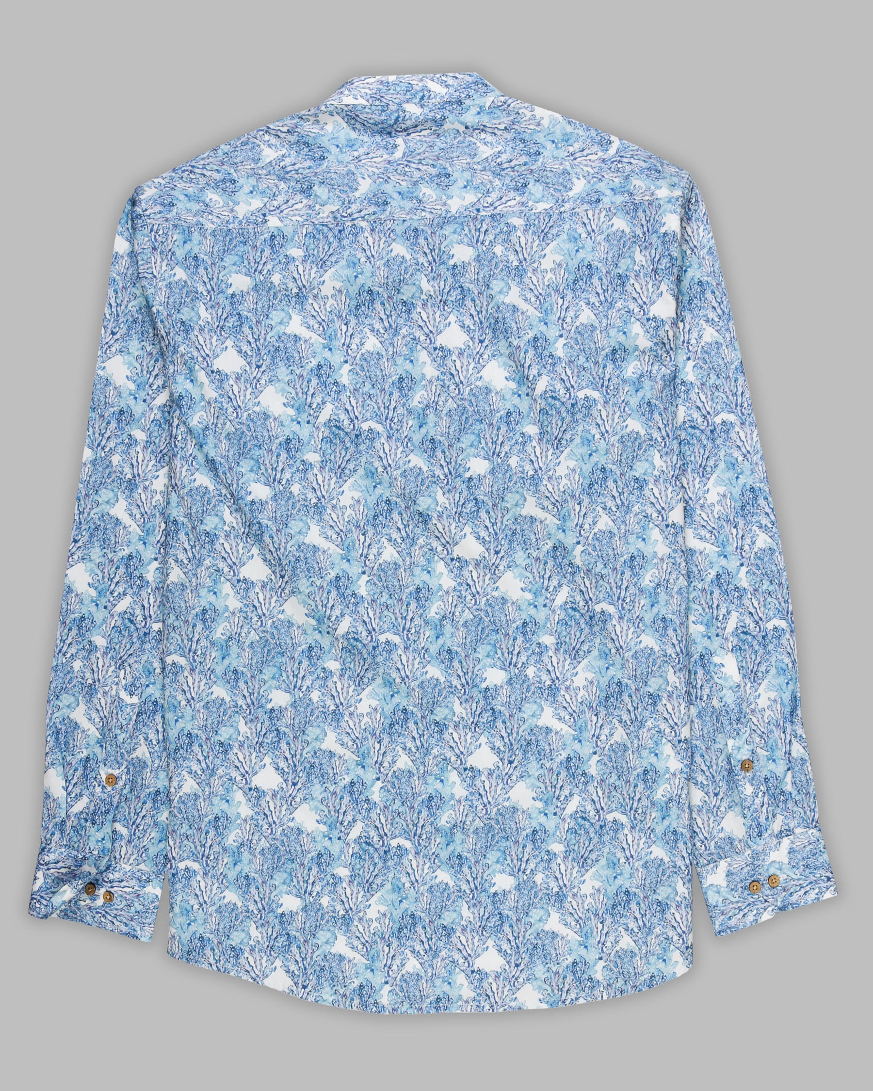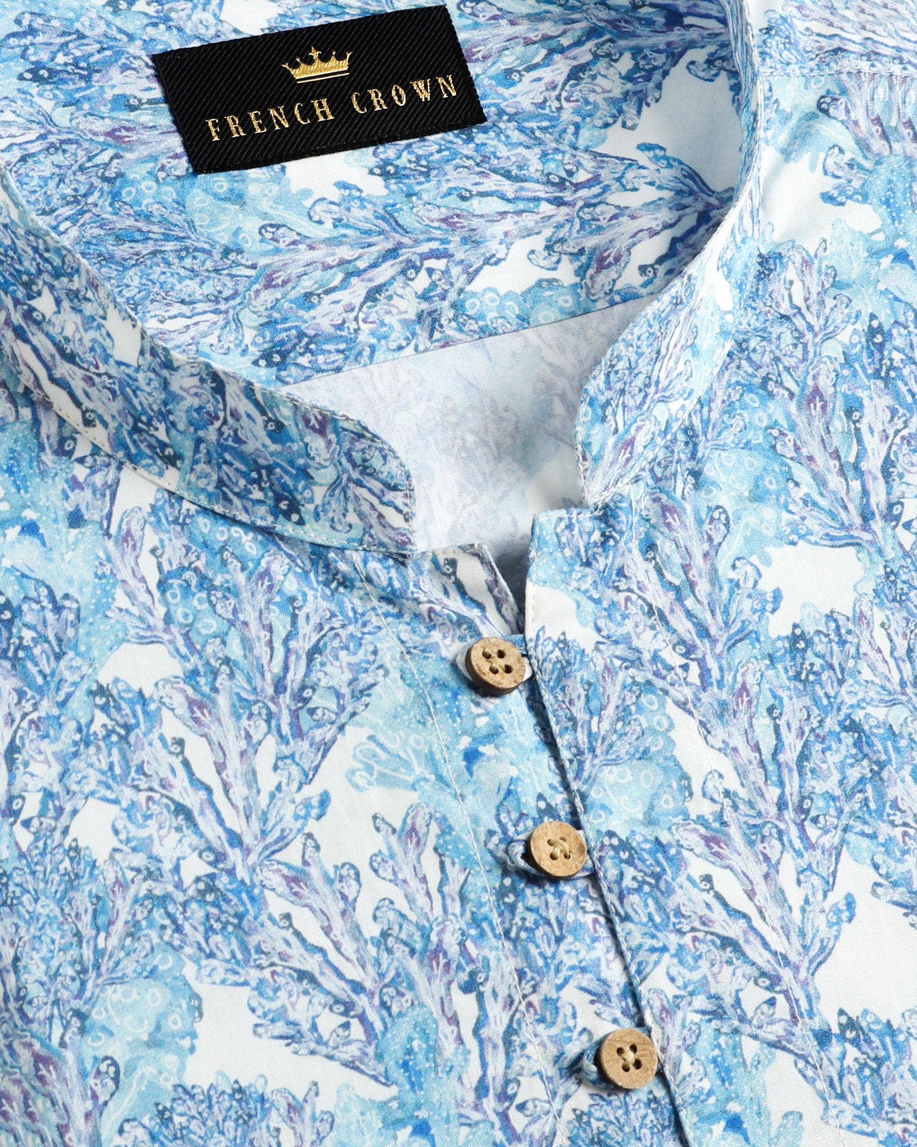 Aqua Blue Tonal Print Kurta Style Super Soft Giza Cotton Shirt
