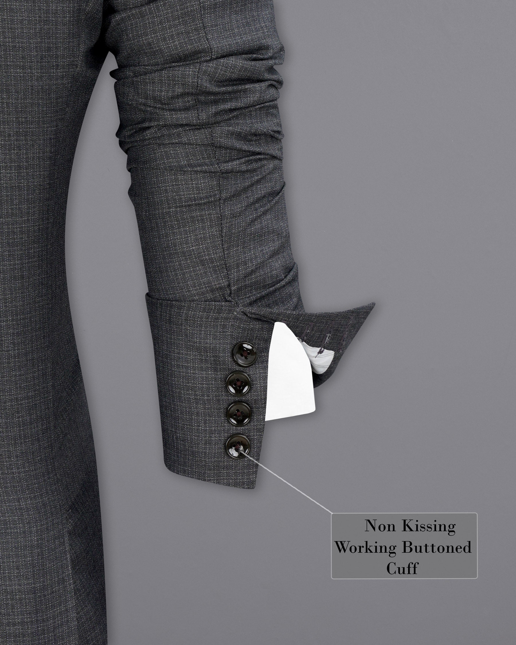 Jade Black Stretchable Subtle Sheen Cross Placket Doble Closure Bandhgala/Mandarin BlazerJade Black Stretchable Subtle Sheen Cross Placket Doble Closure Bandhgala/Mandarin Blazer