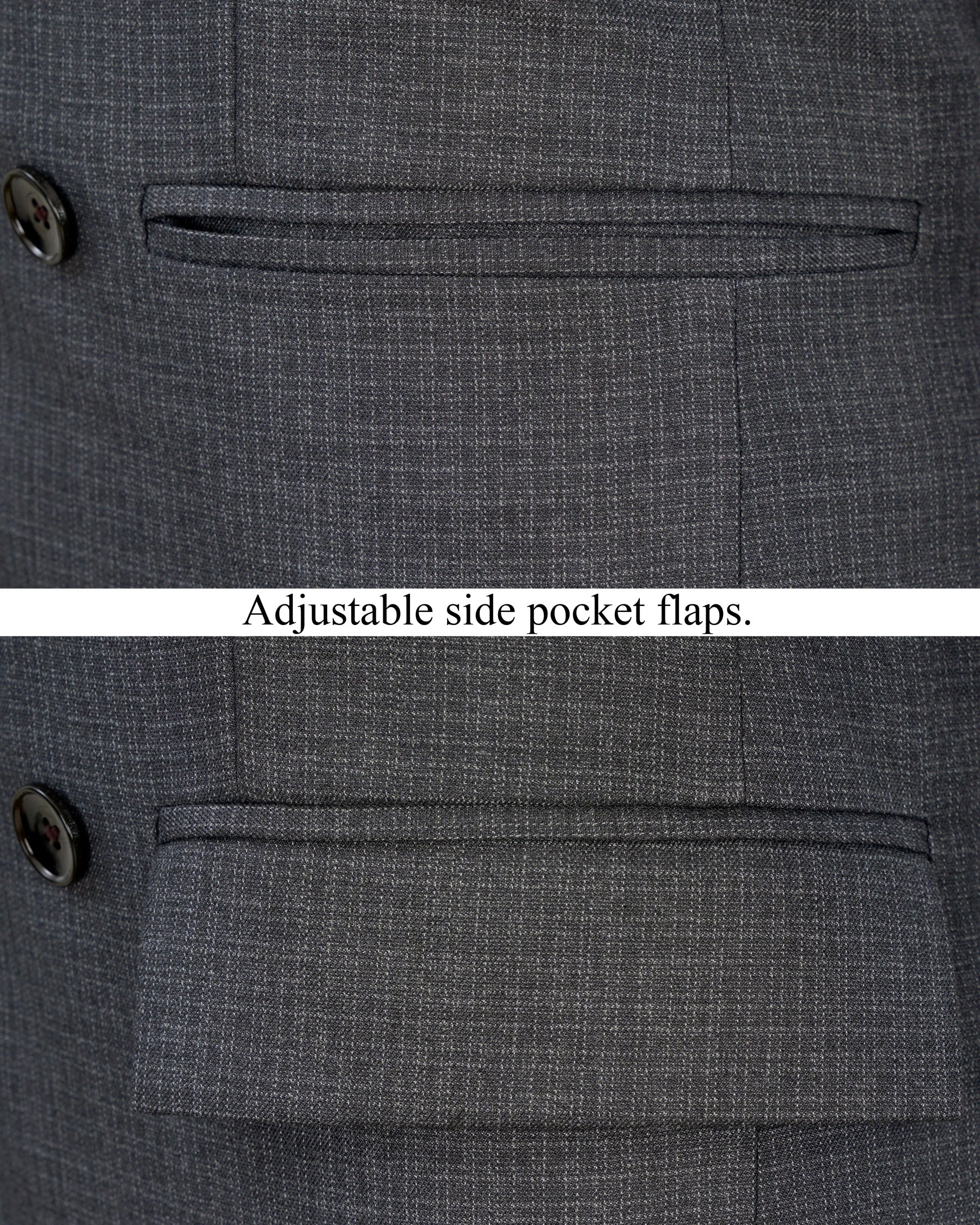 6-button, Double-breasted closure