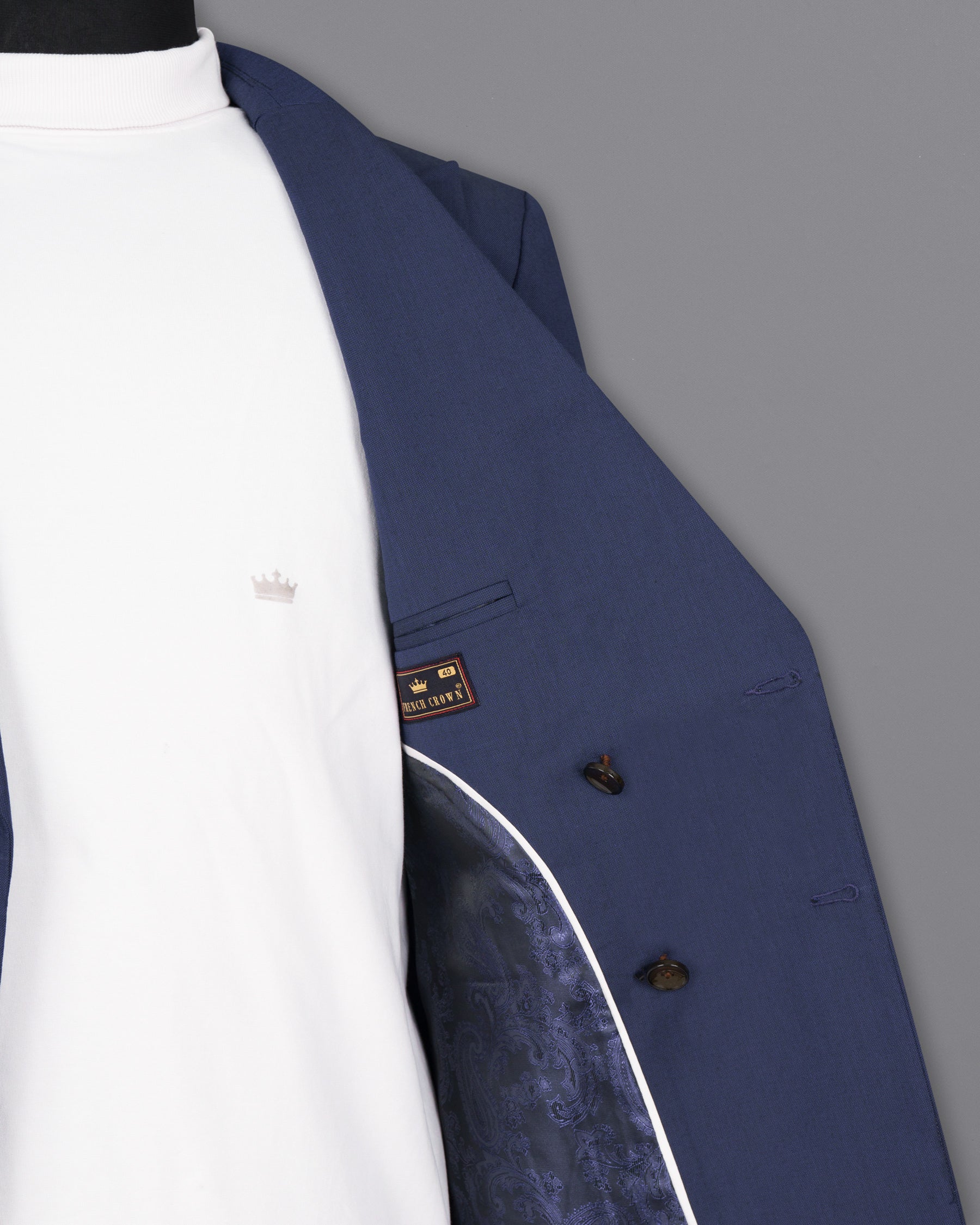 Celestia- Blue Solid Wool Rich Double Breasted Slight Stretch SuitCelestia- Blue Solid Wool Rich Double Breasted Slight Stretch Suit