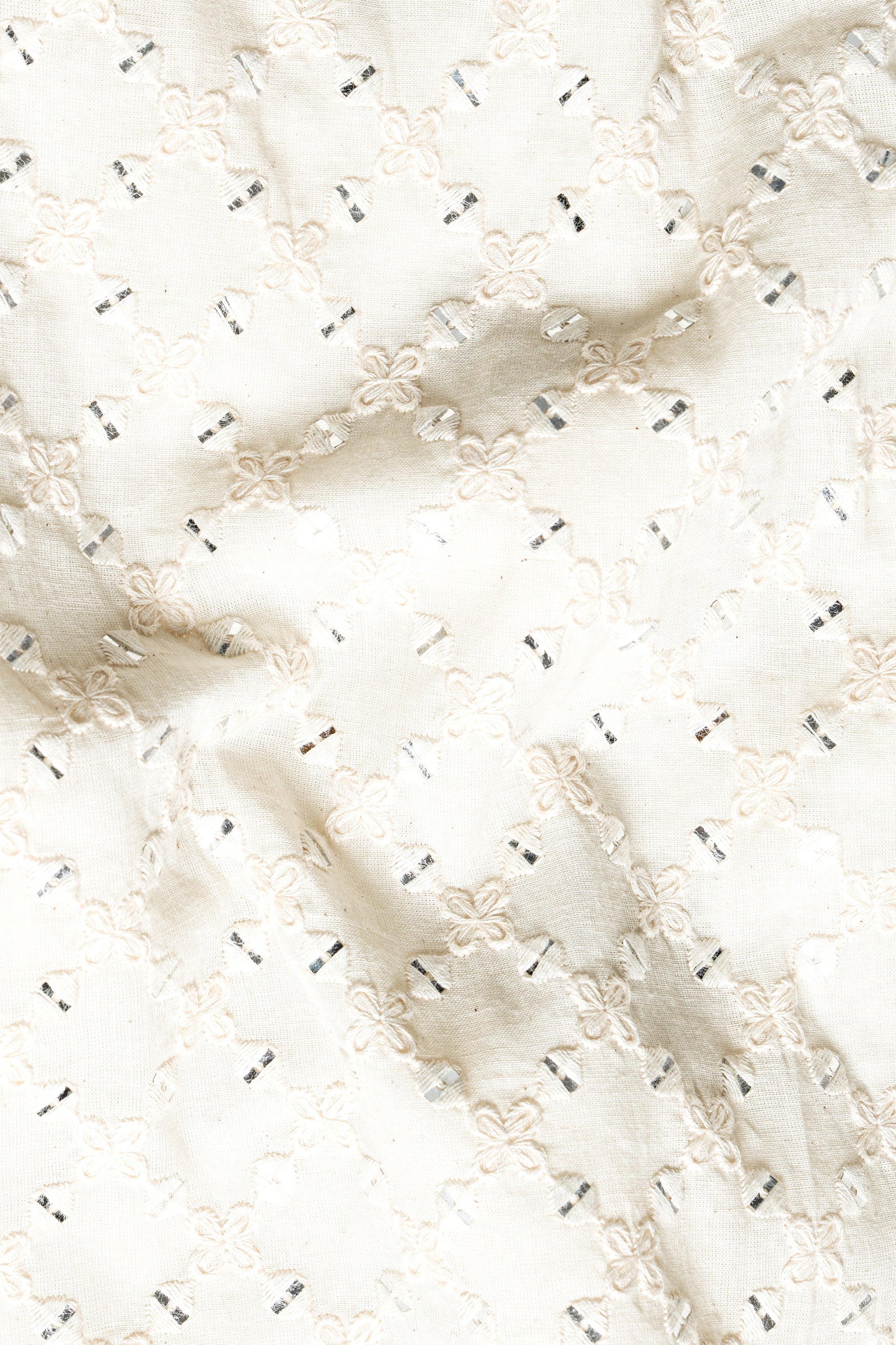 Bright White Geometric Thread and Sequin Embroidered Designer Nehru Jacket