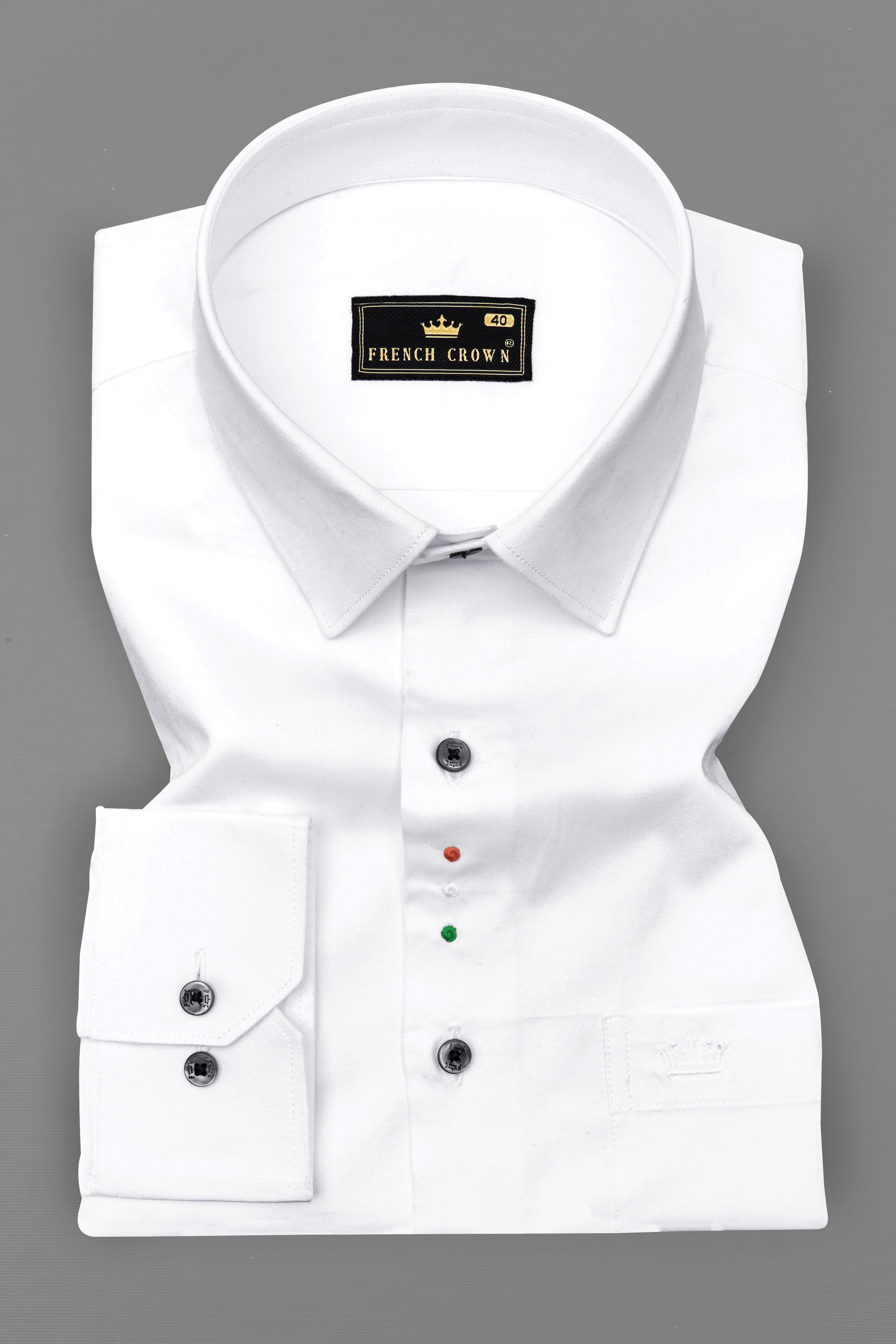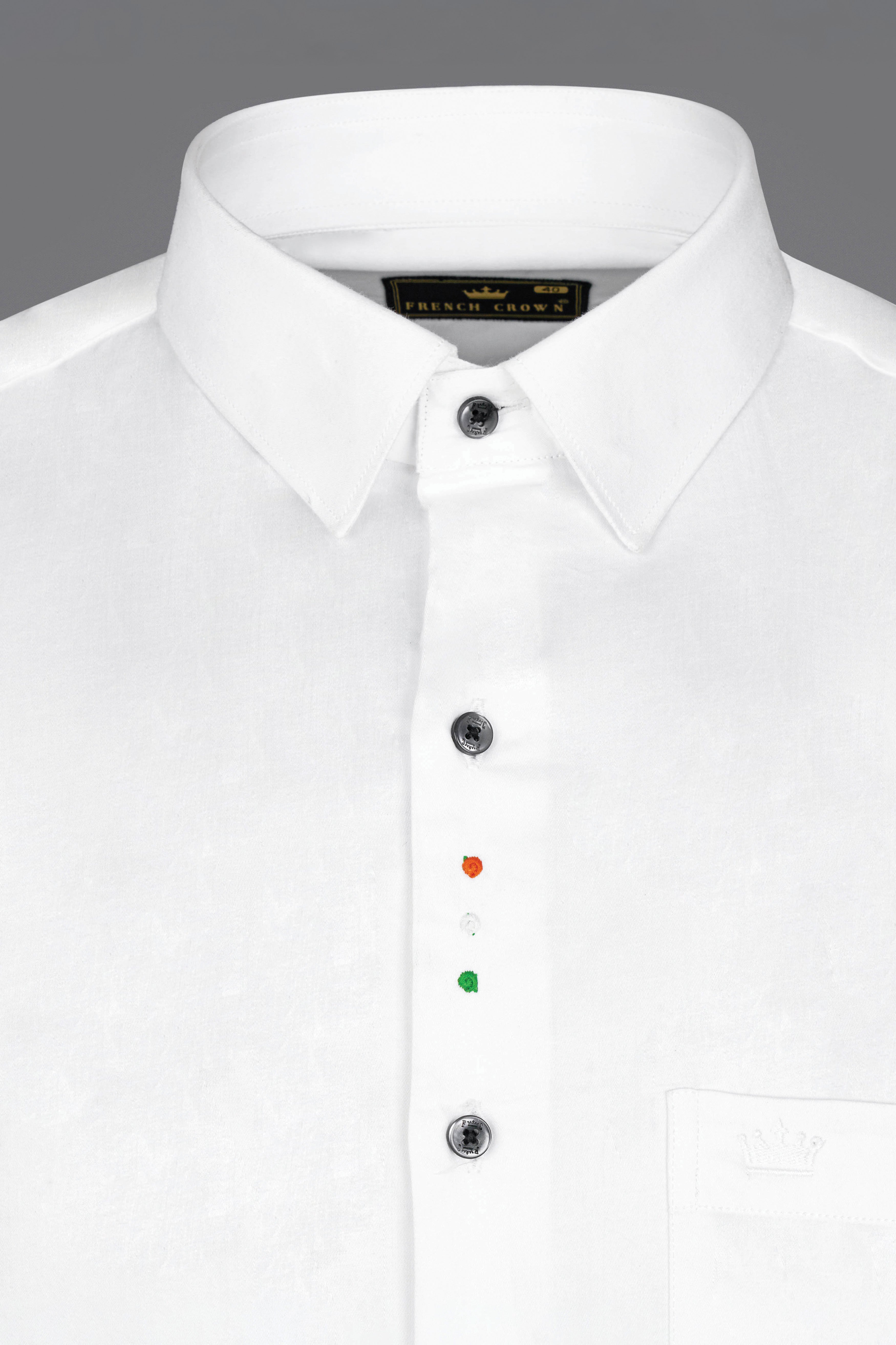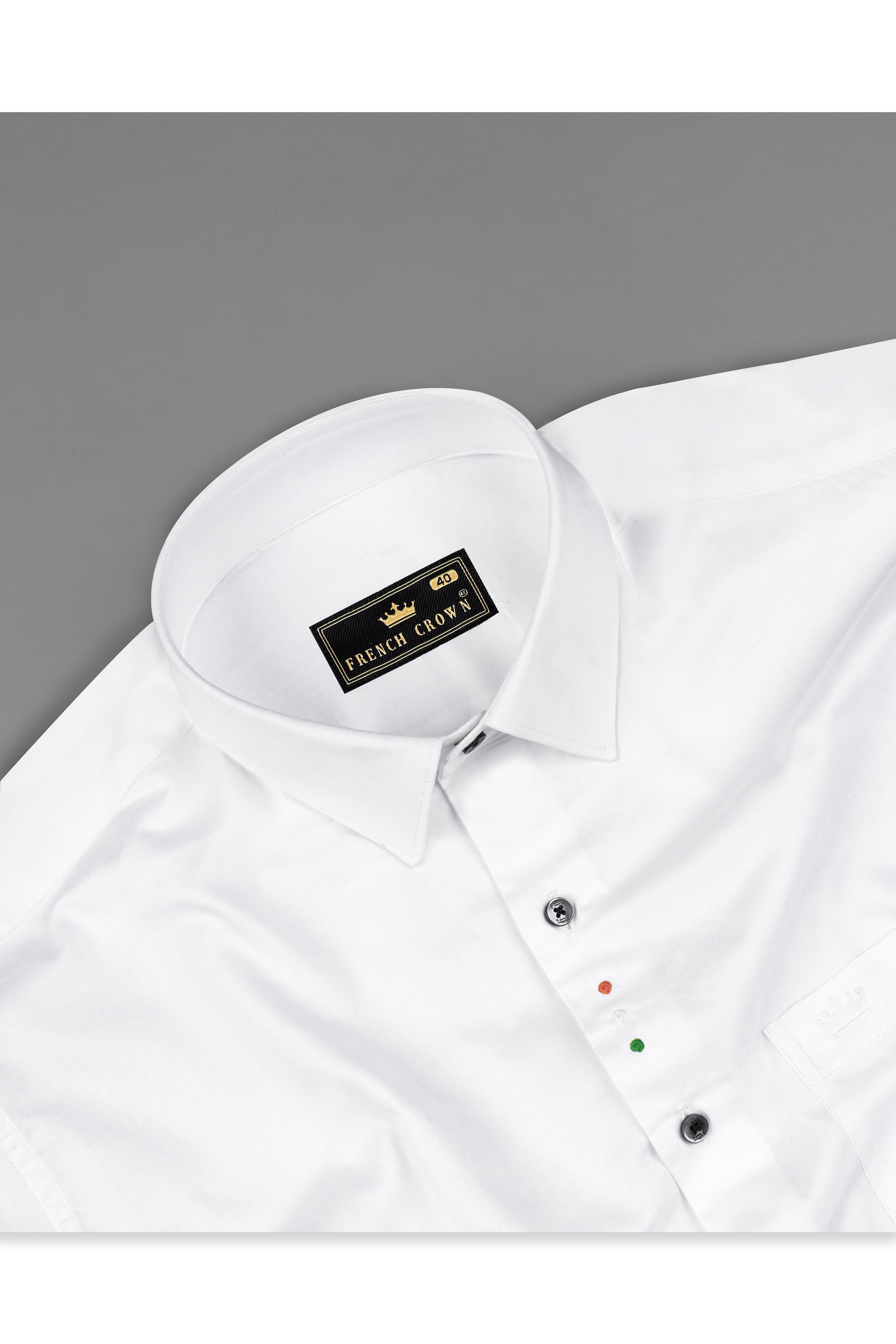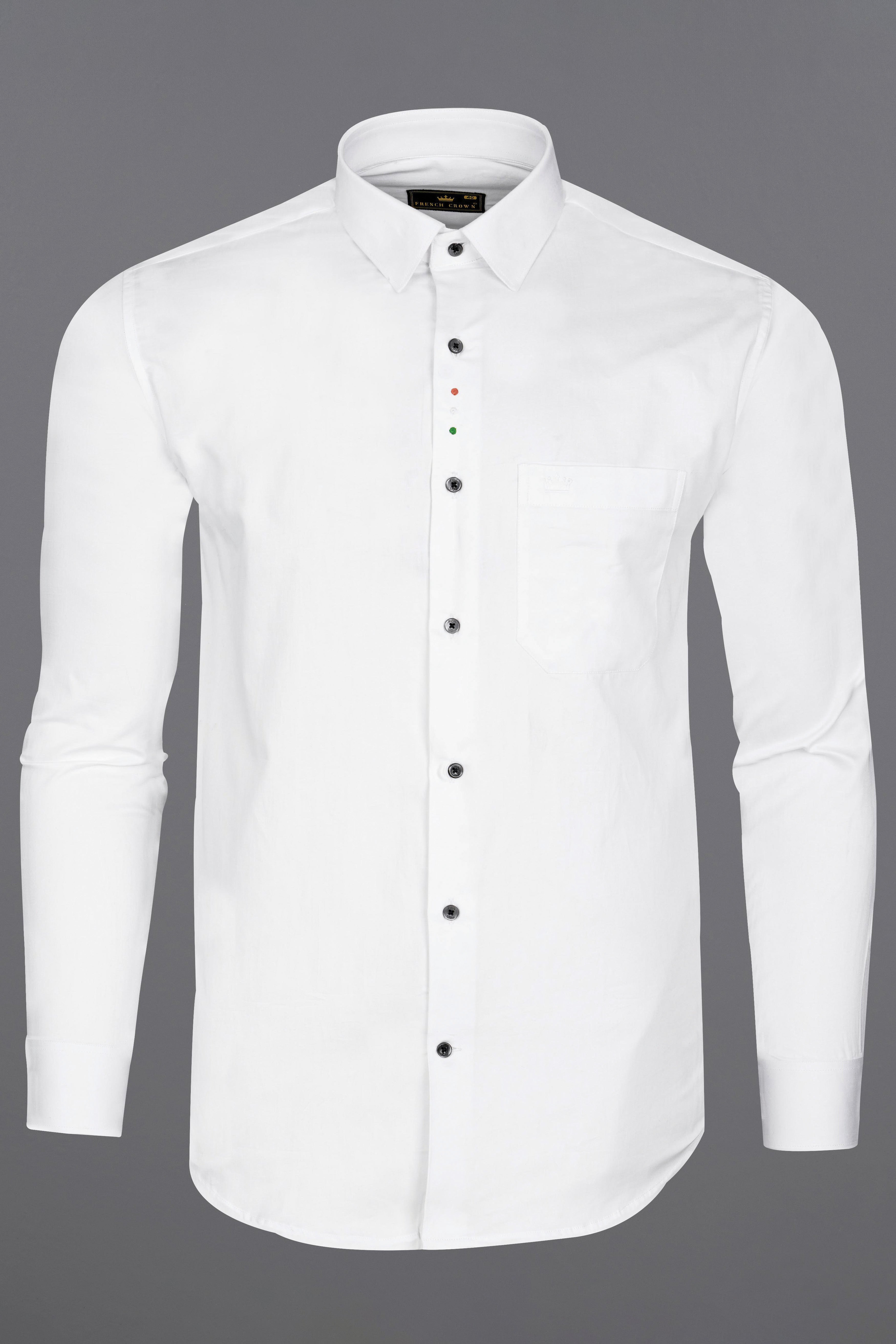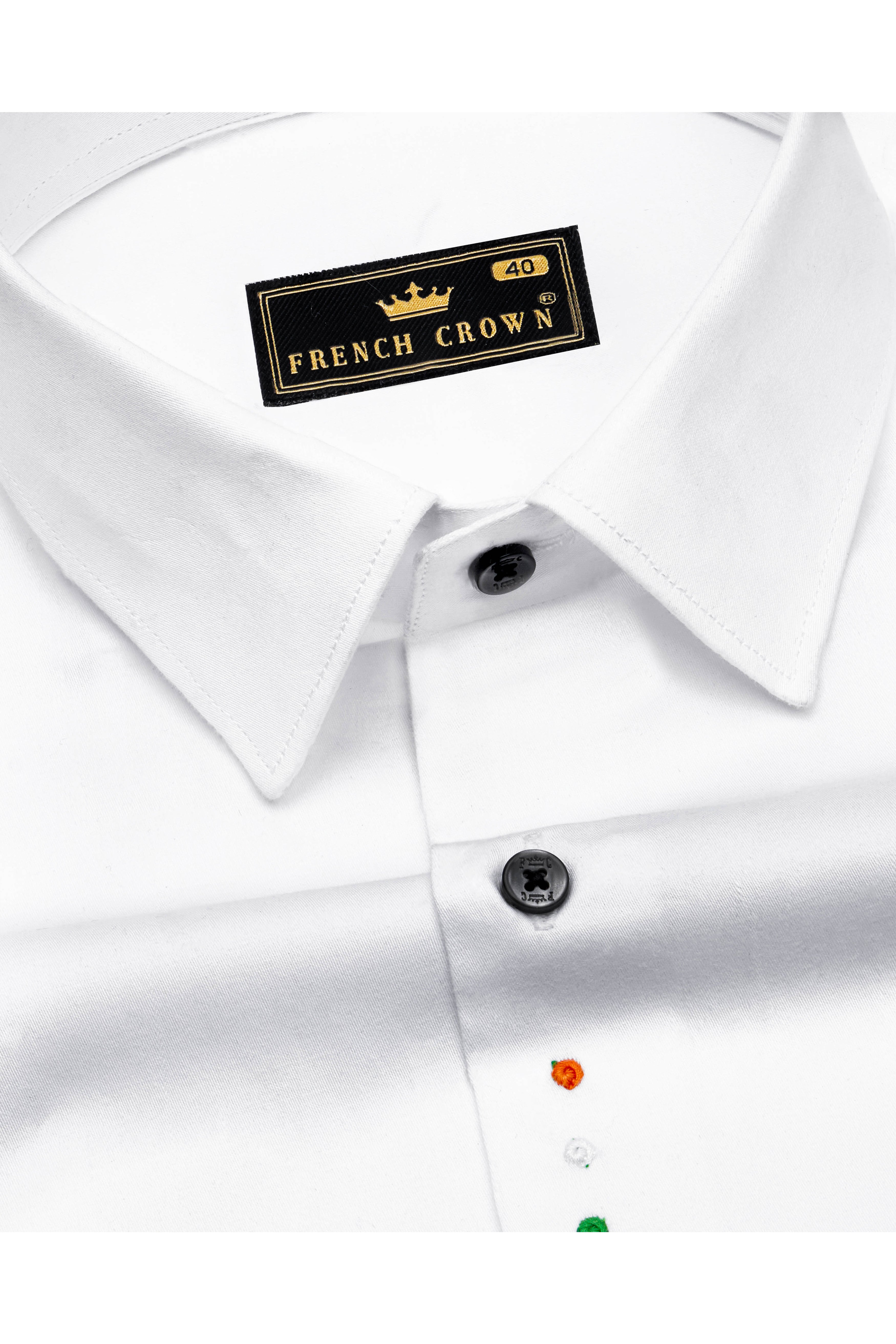 Bright White Subtle Sheen Tricolour Embroidered Under Second Button Super Soft Premium Cotton Shirt