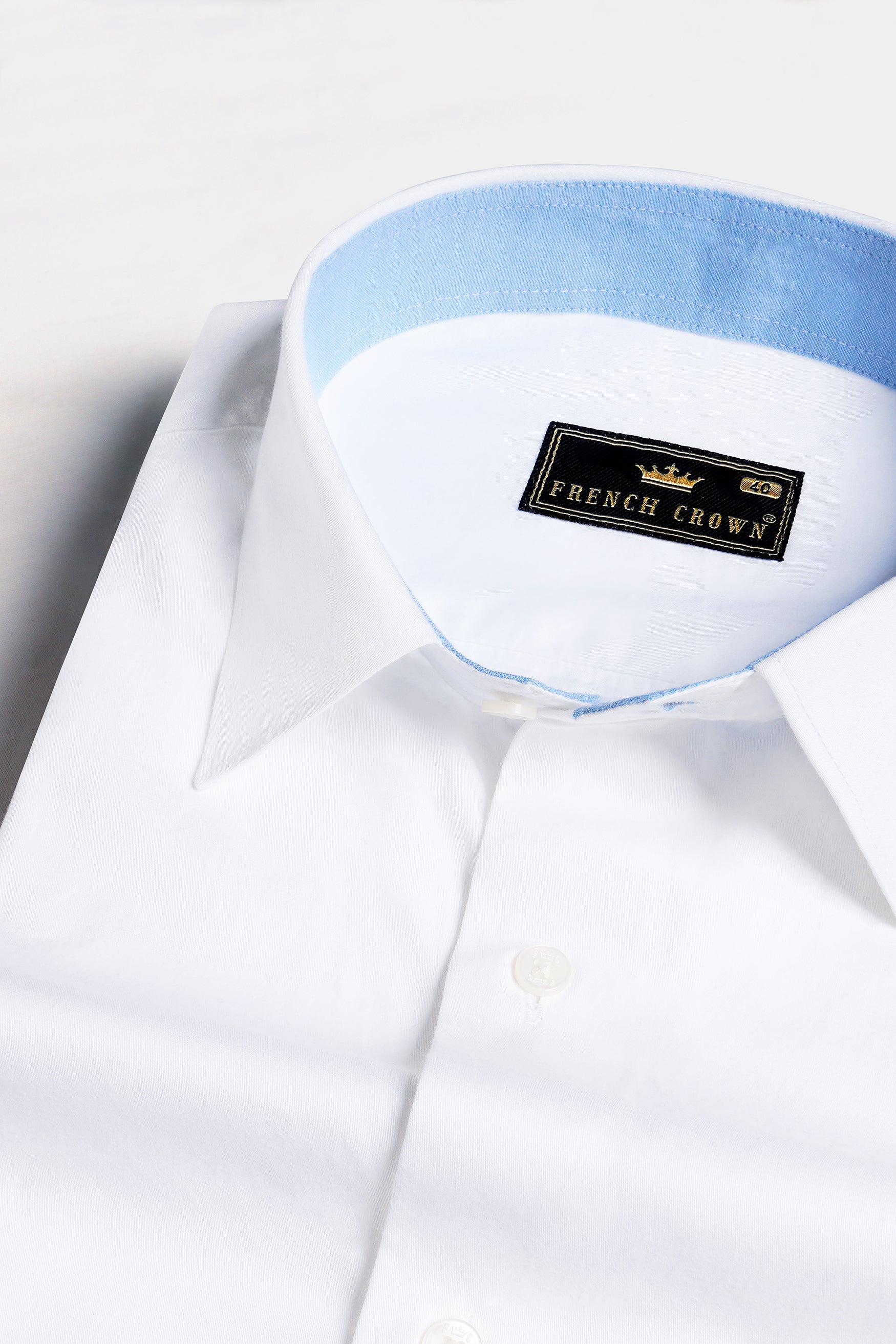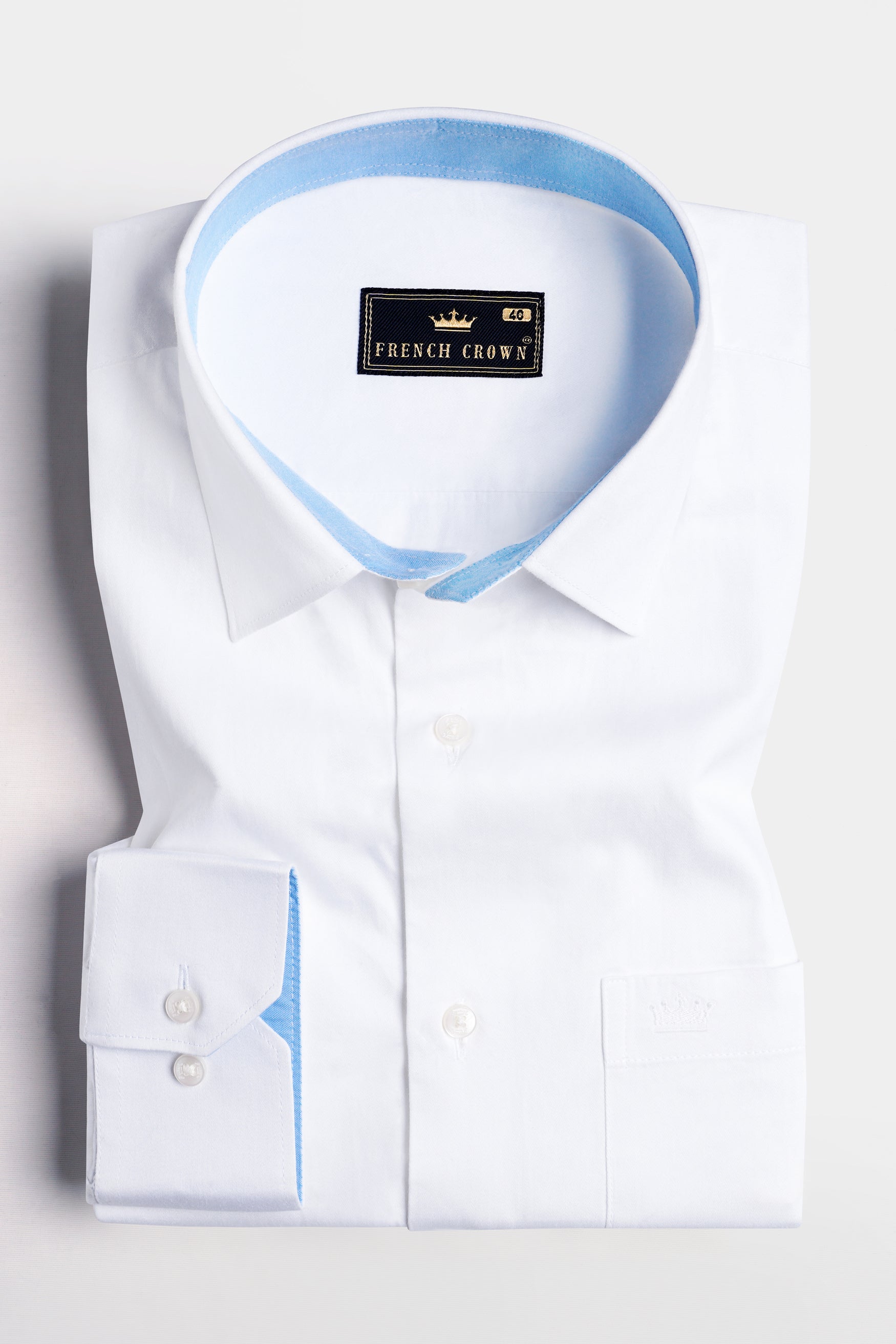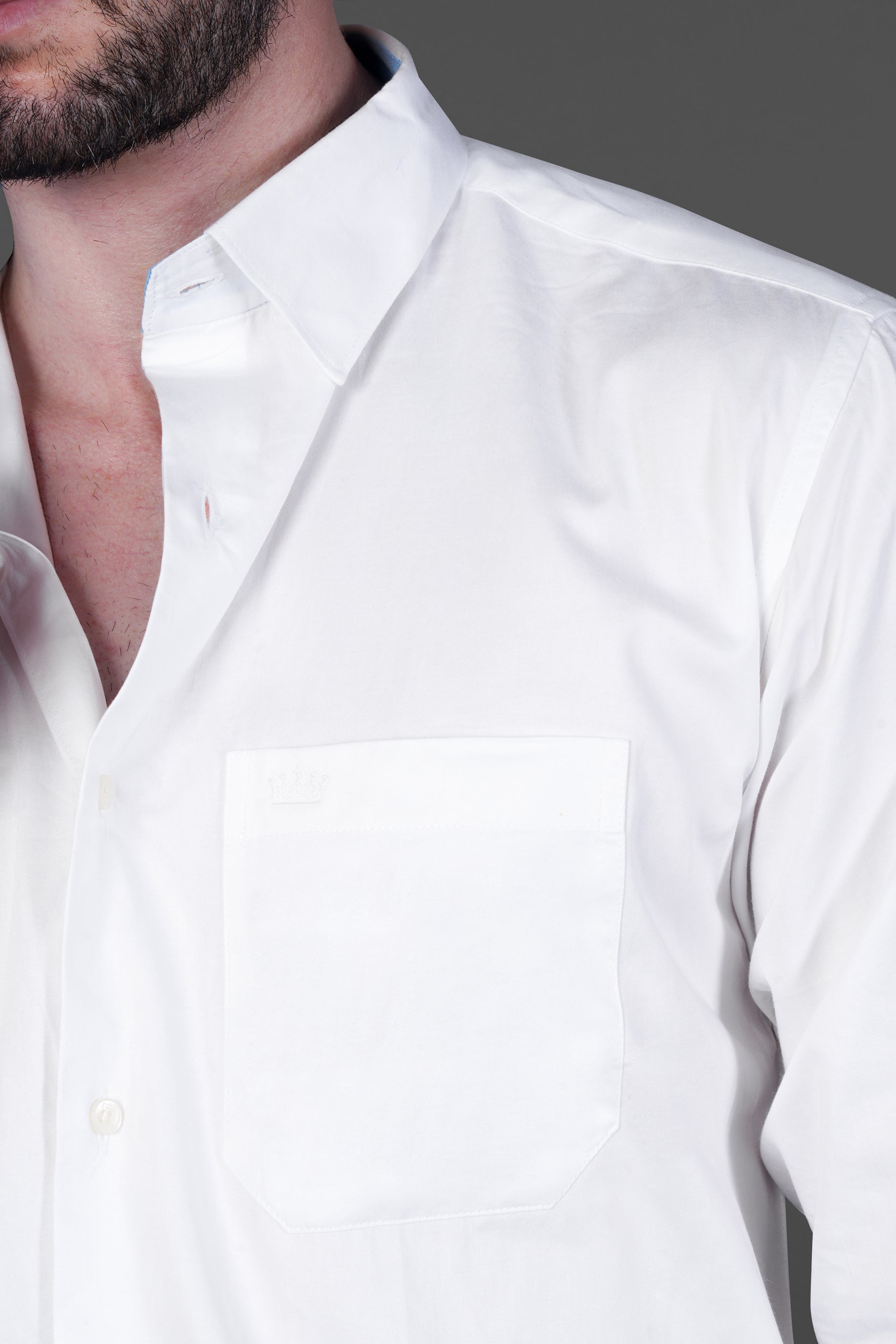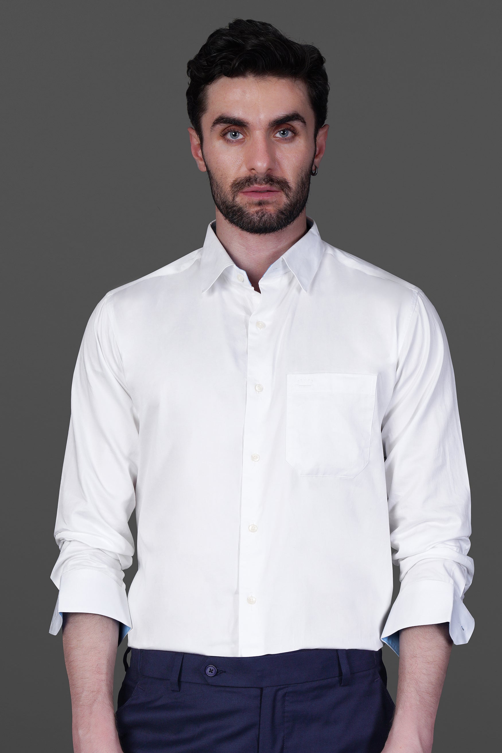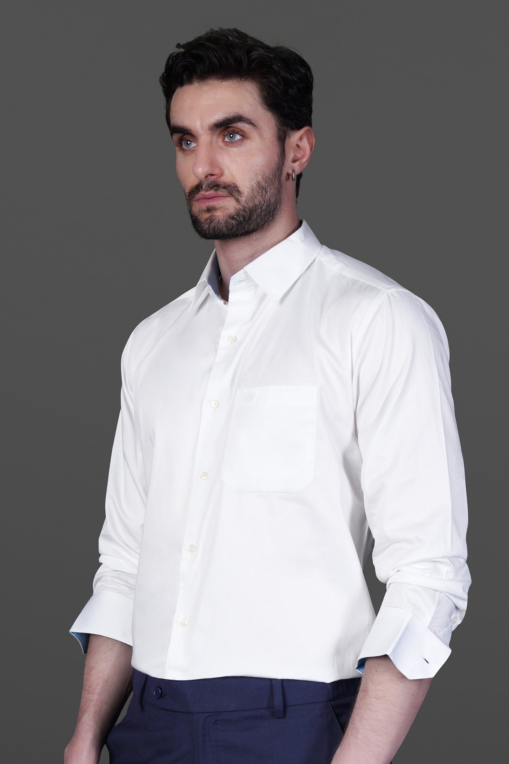 Bright White with Blue Subtle Sheen Elbow Patch Premium Cotton Shirt