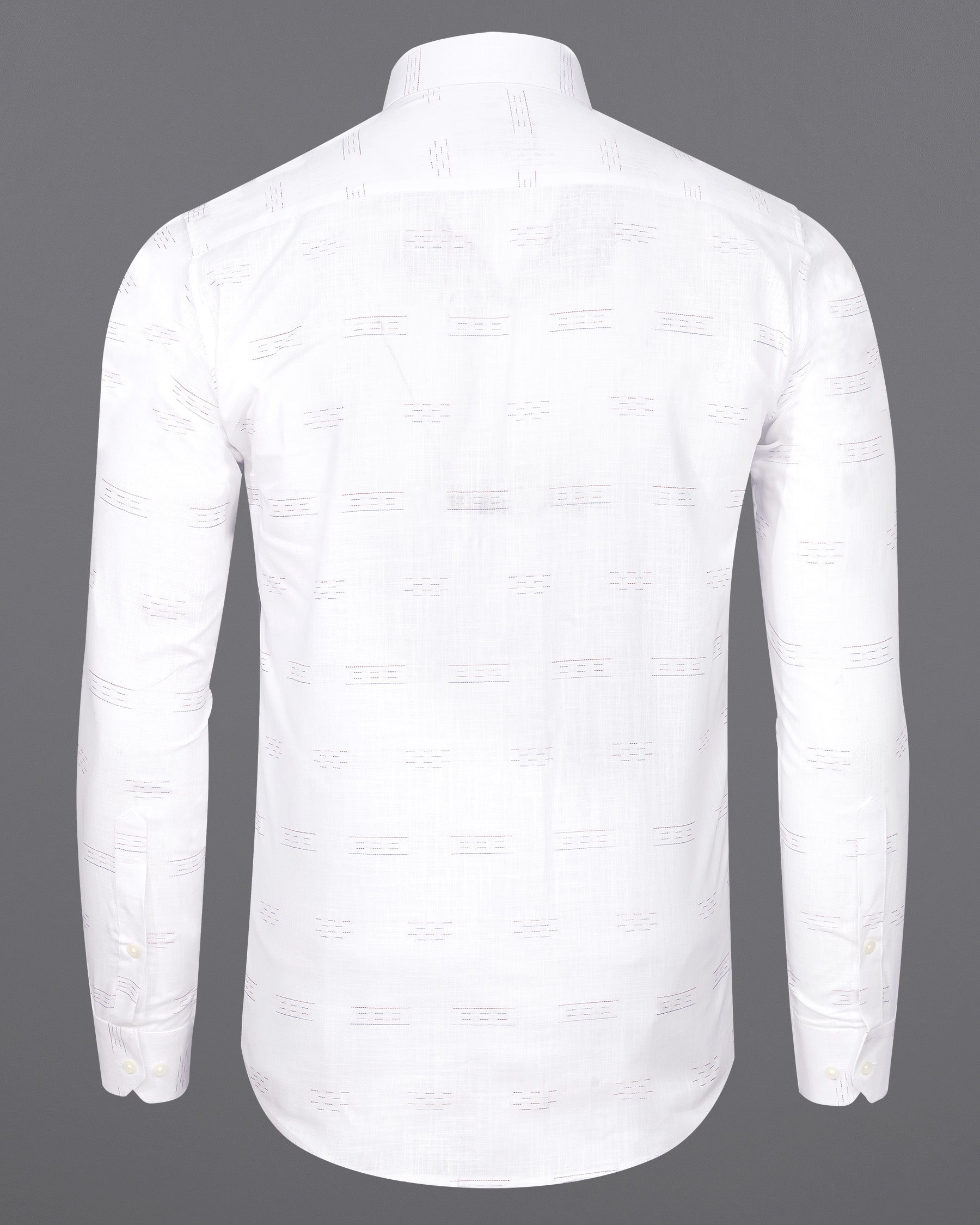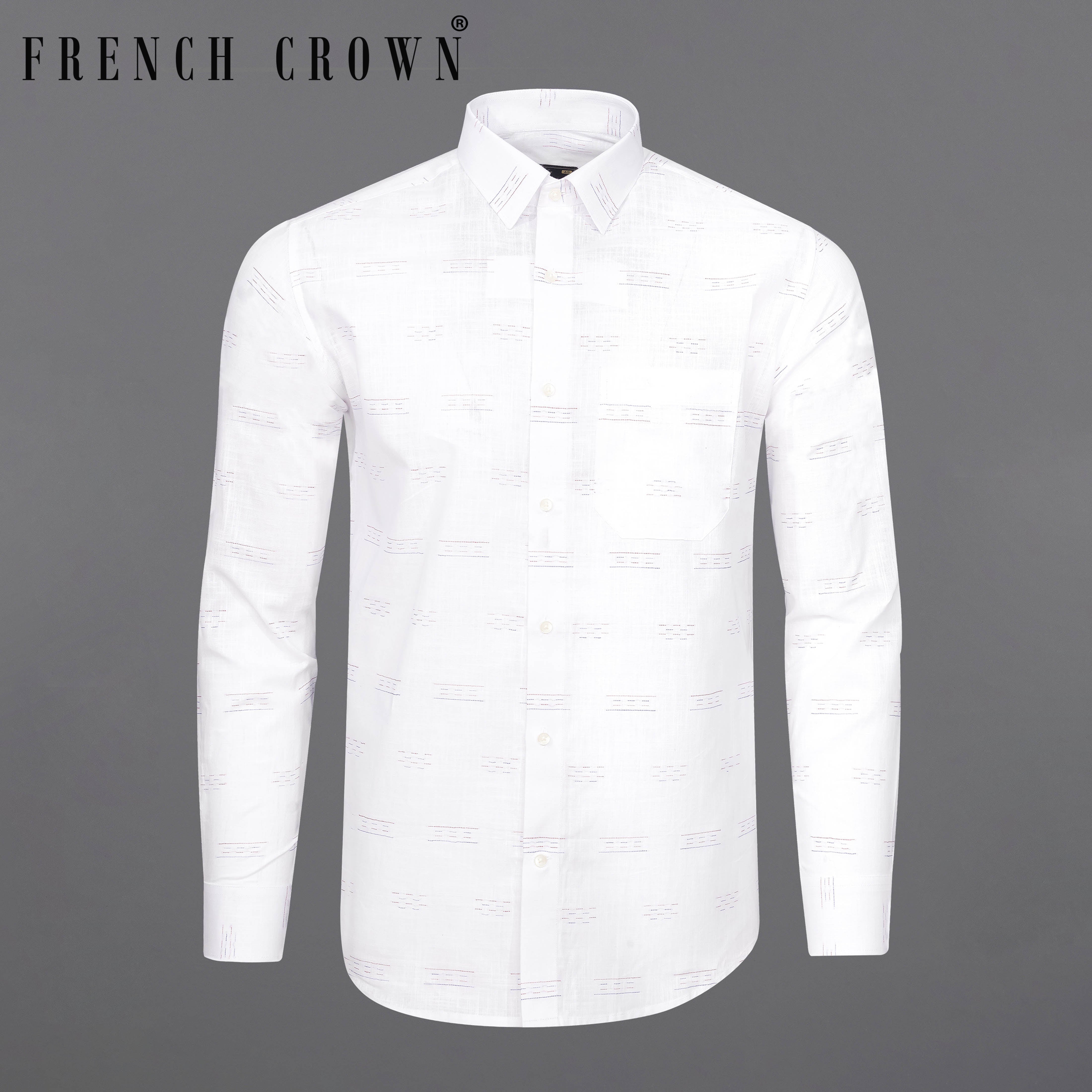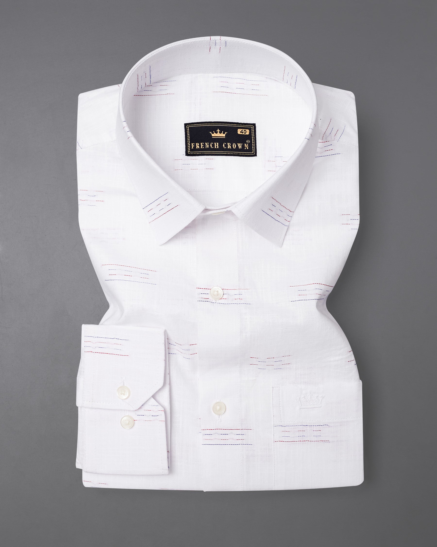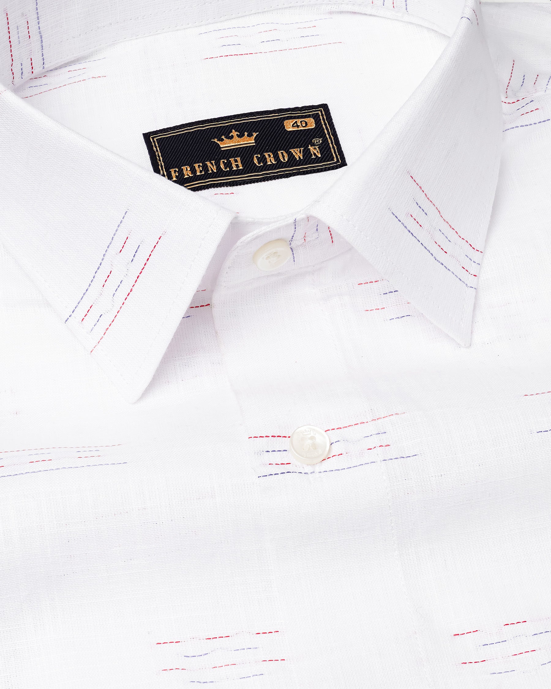 Bright White with Small Multicolor Dobby Textured Luxurious Linen Shirt