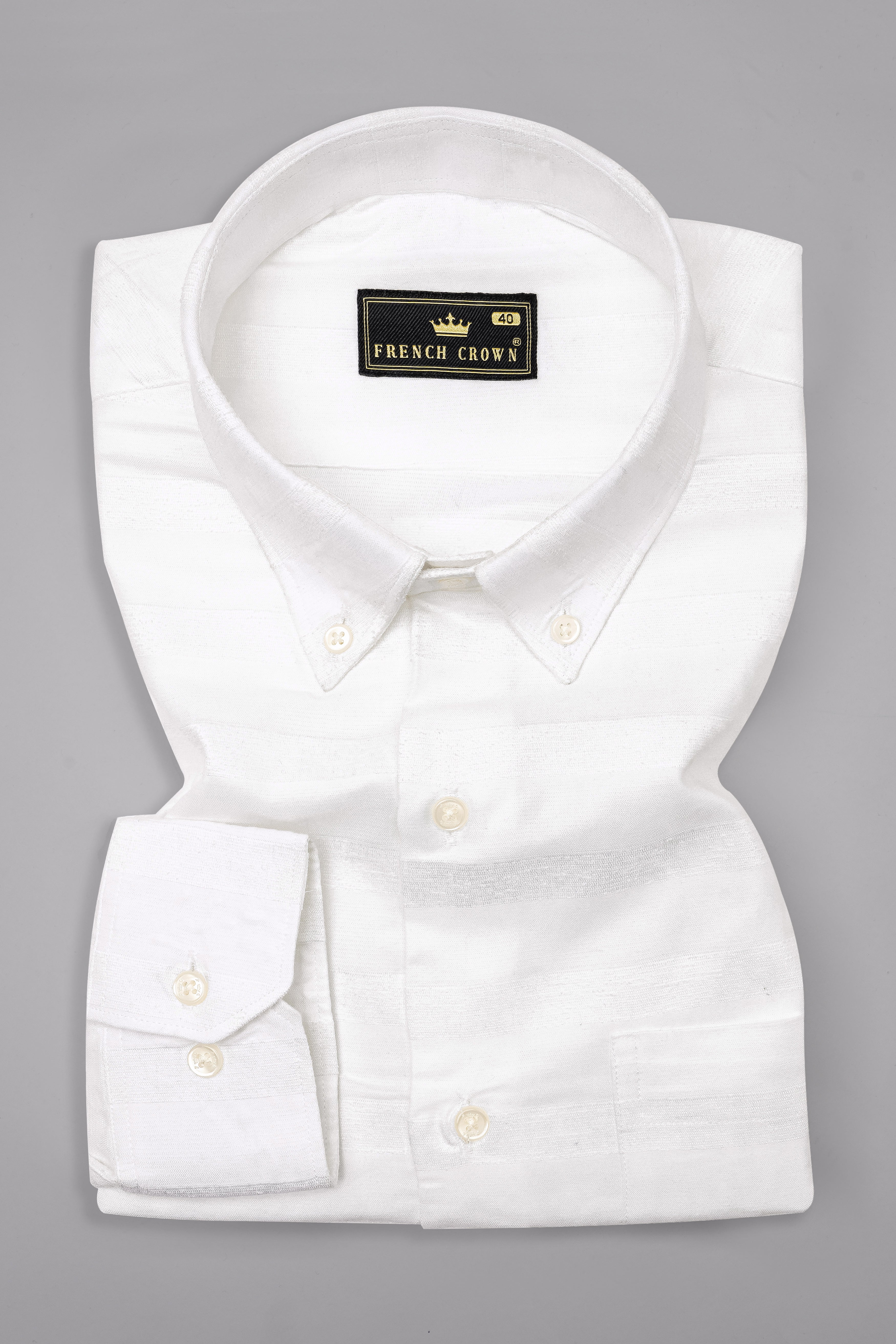 Bright White with Velvet Striped Textured Premium Cotton Shirt