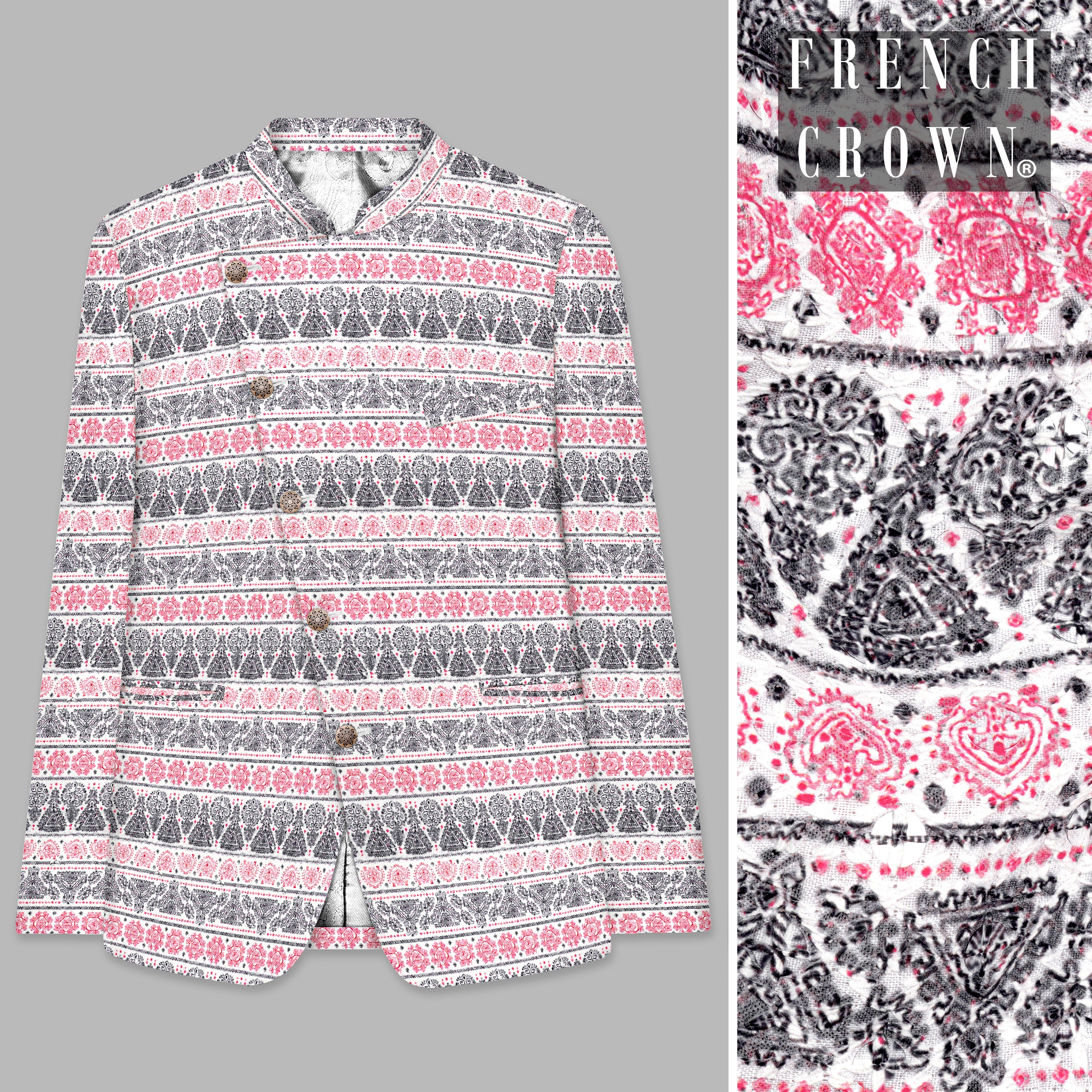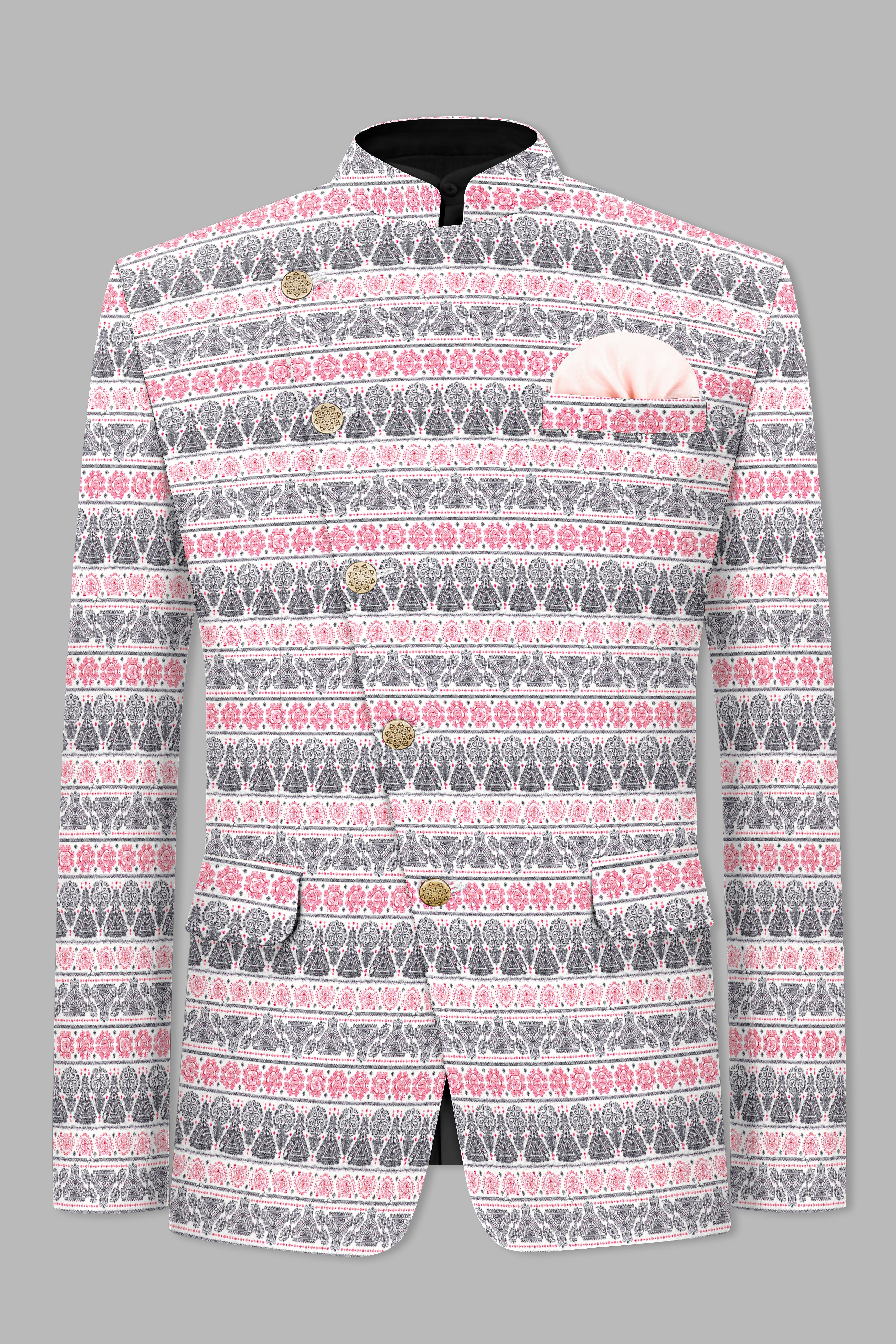 Brink Pink And jade Black Striped Designer Cross Placket Bandhgala Jodhpuri