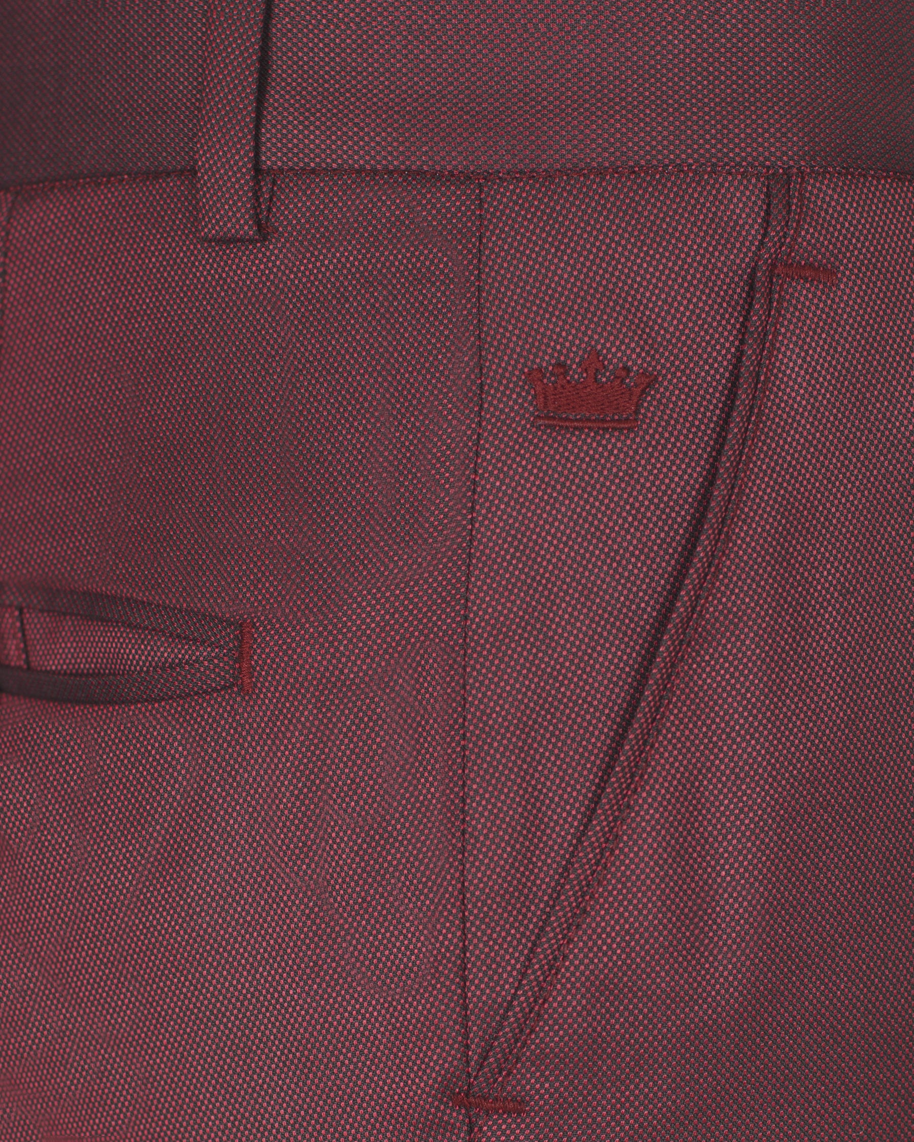 Merlot-Bistre Wine Maroon Solid Wool Rich Slight Stretch Waistband PantMerlot-Bistre Wine Maroon Solid Wool Rich Slight Stretch Waistband Pant