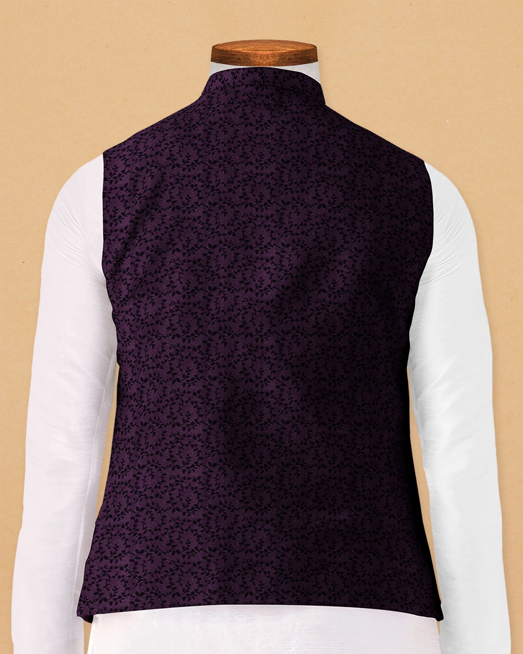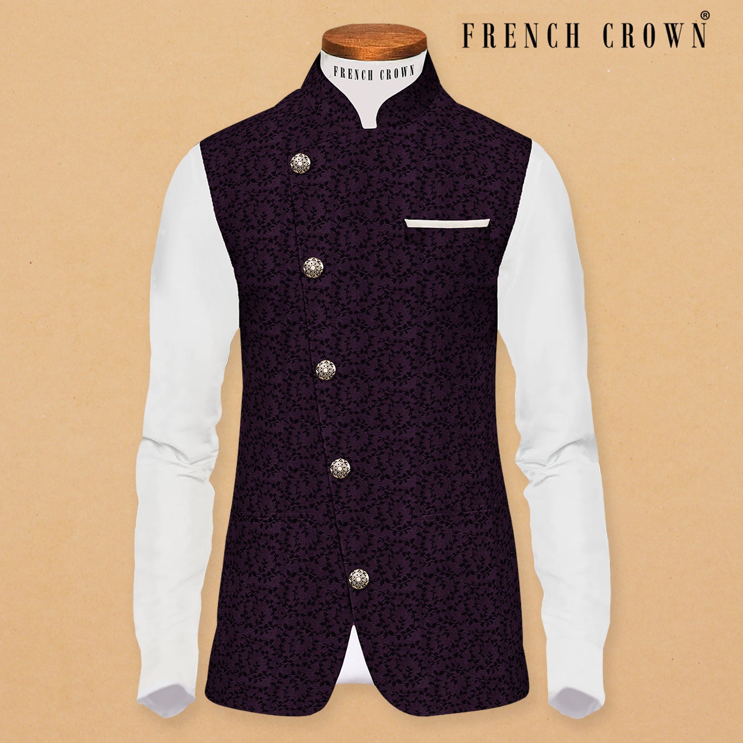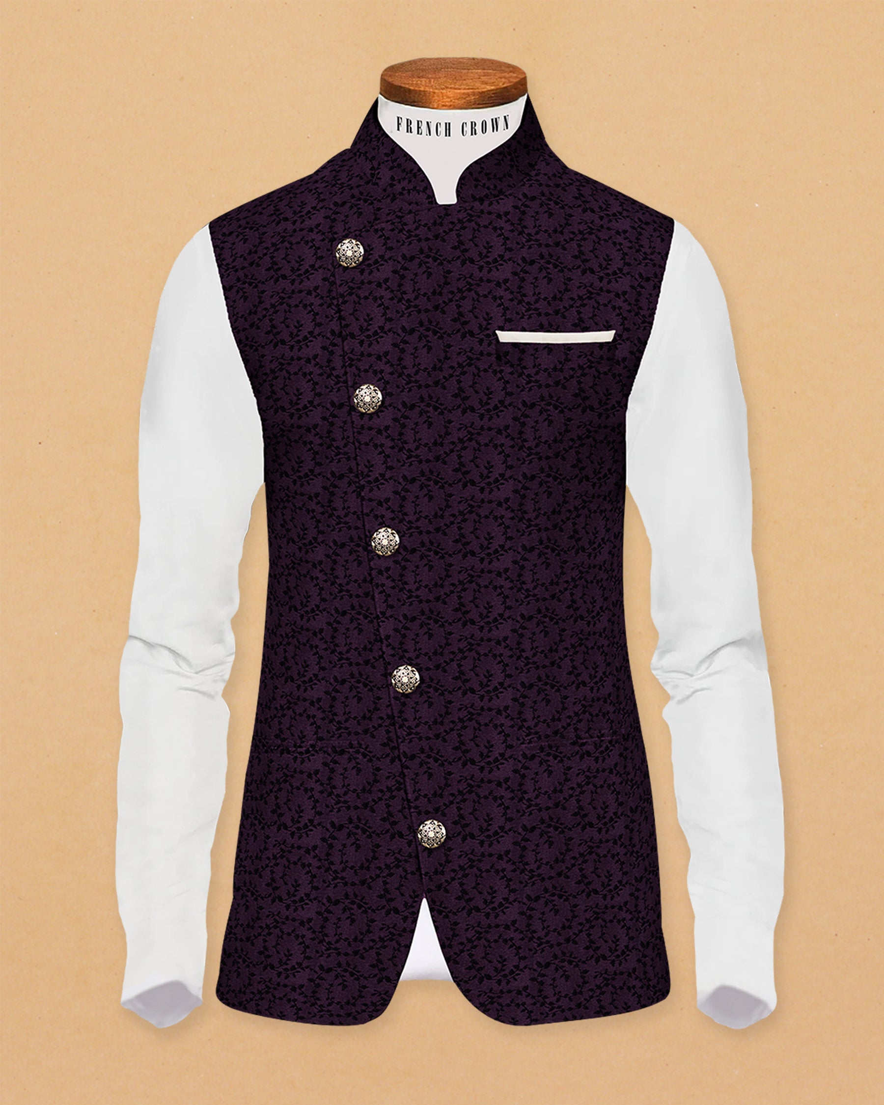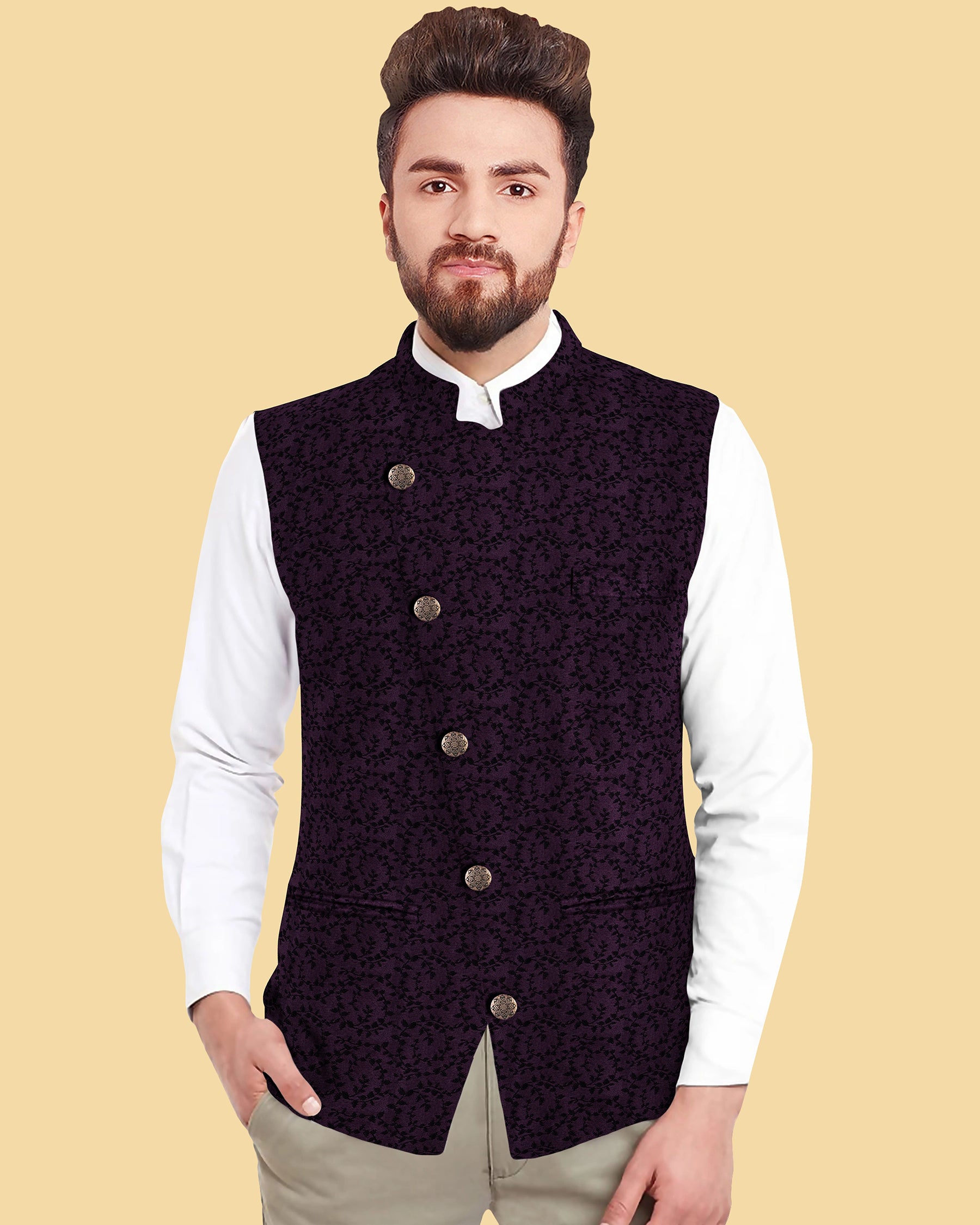 Burgundy Climber-Patterned Jacquard Premium Designer Nehru Jacket