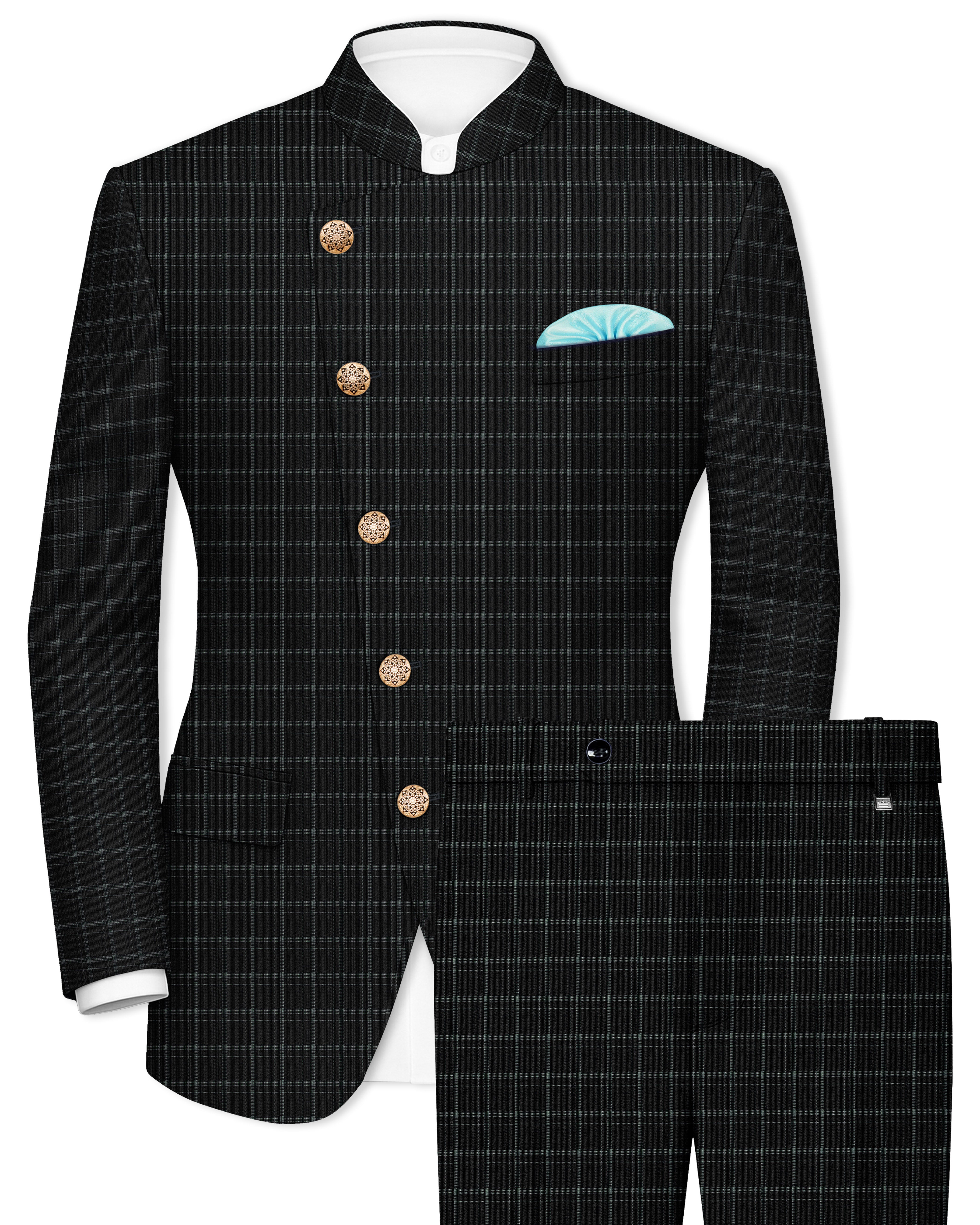 Cape God Gray windowpane Cross Bandhgala Suit