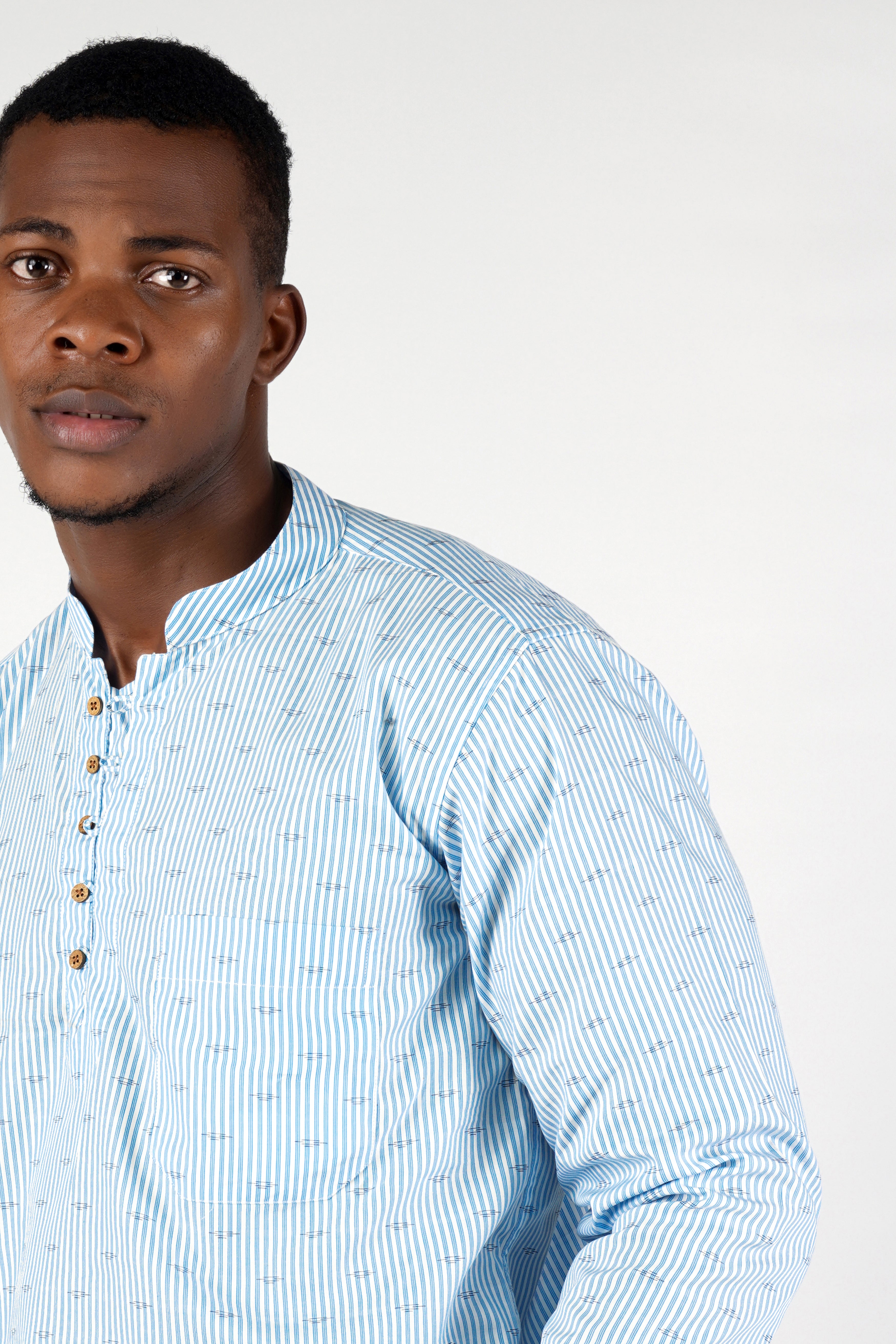 Carolina Sky Blue Striped Premium Cotton Kurta Shirt