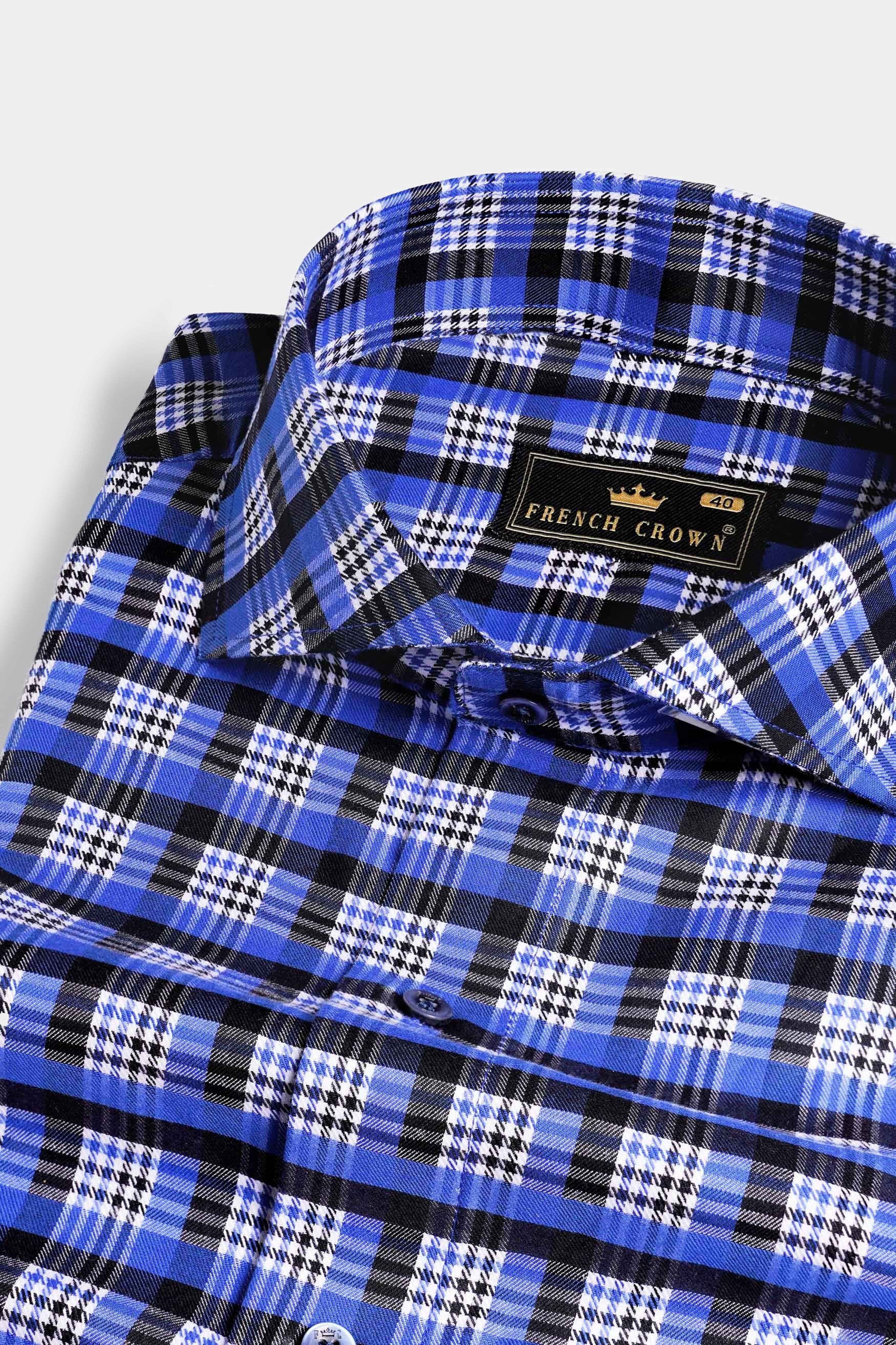 Azul Blue with White and Black Checkered Houndstooth ShirtAzul Blue with White and Black Checkered Houndstooth Shirt
