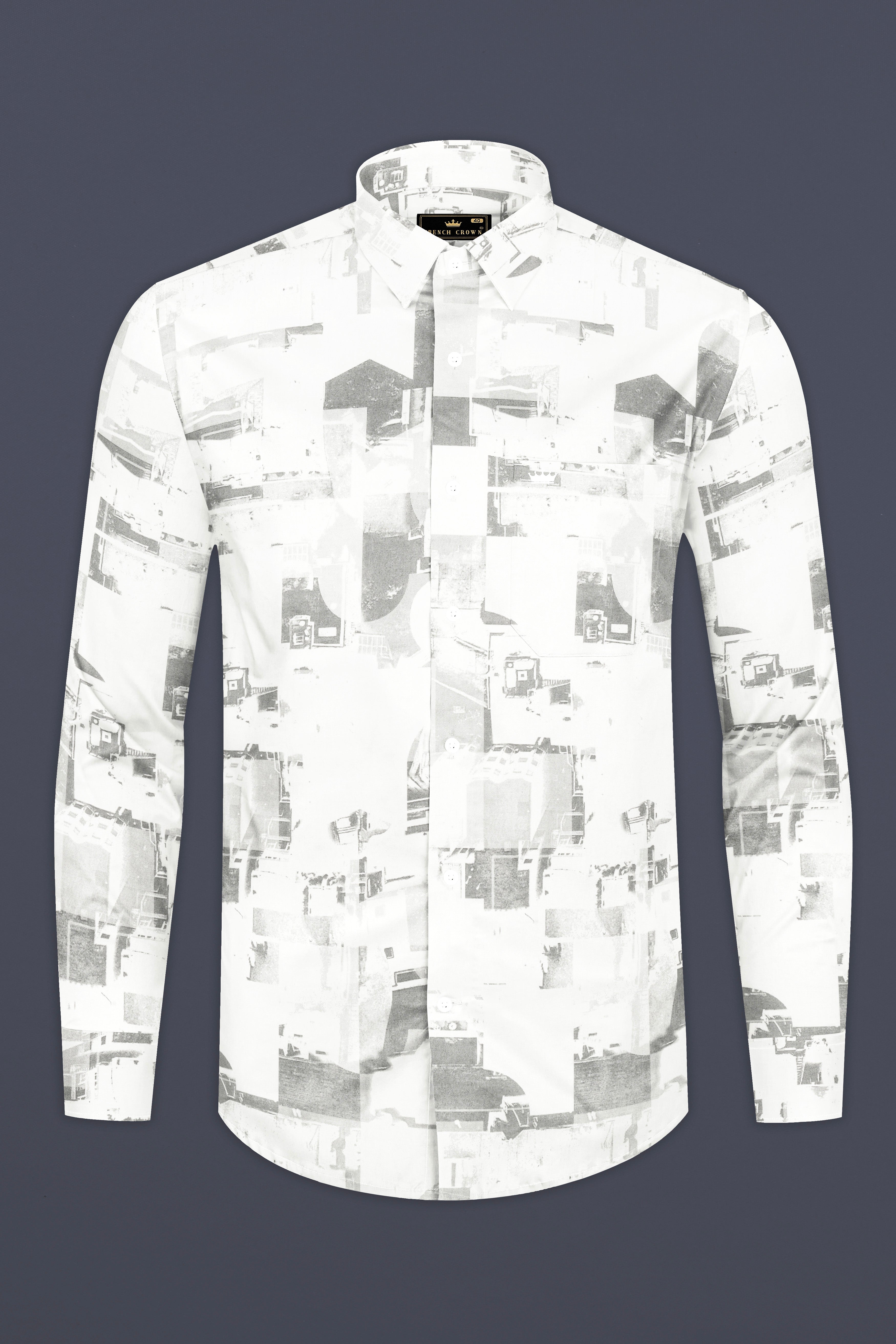 Bright White and Black Printed Super Soft Premium Cotton ShirtBright White and Black Printed Super Soft Premium Cotton Shirt
